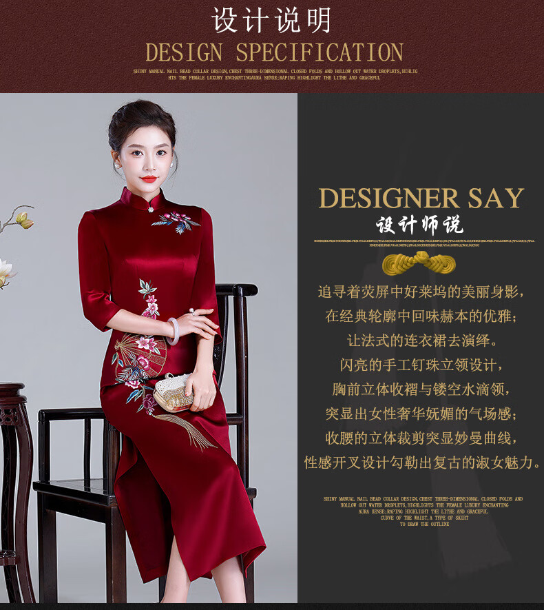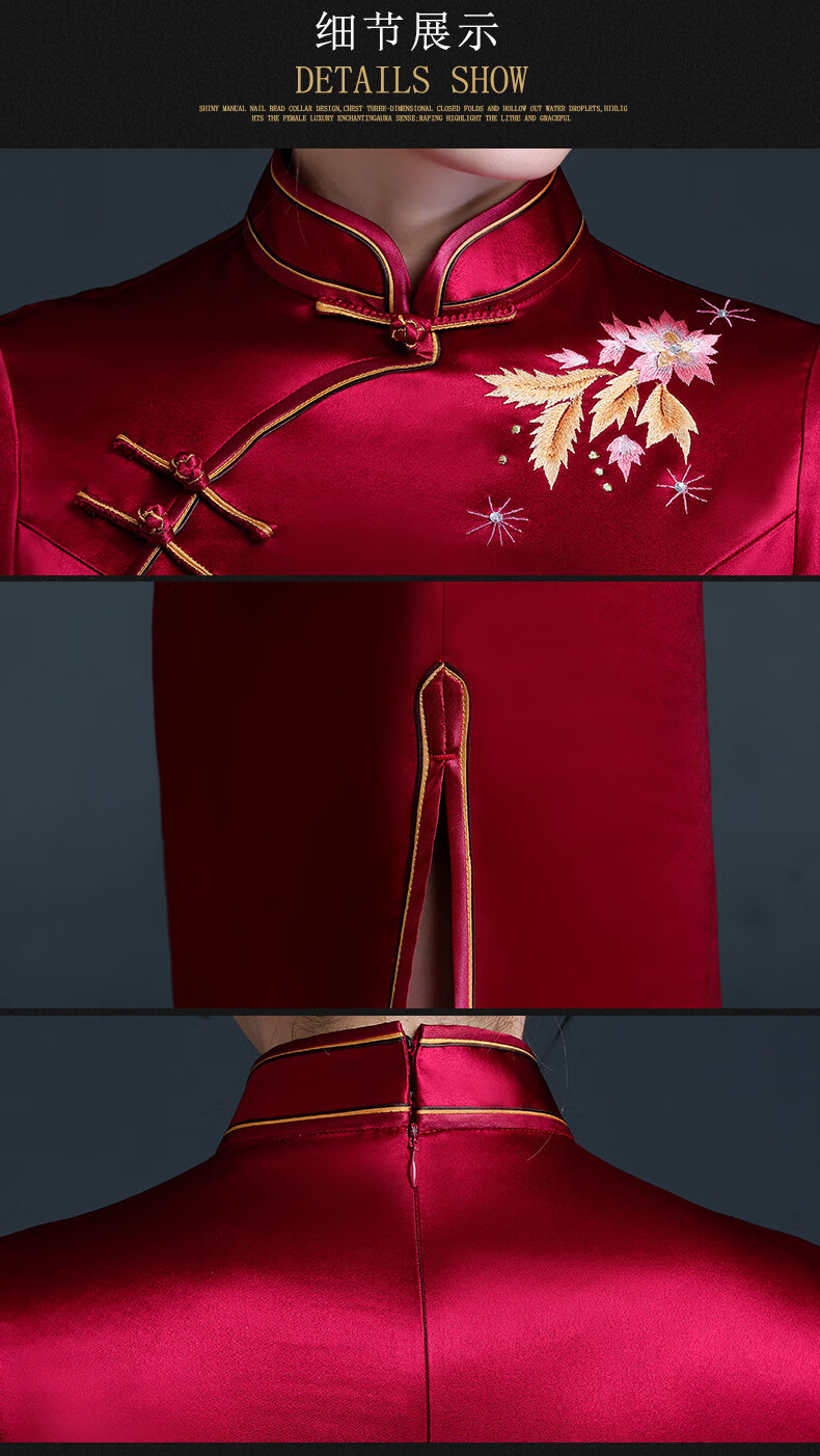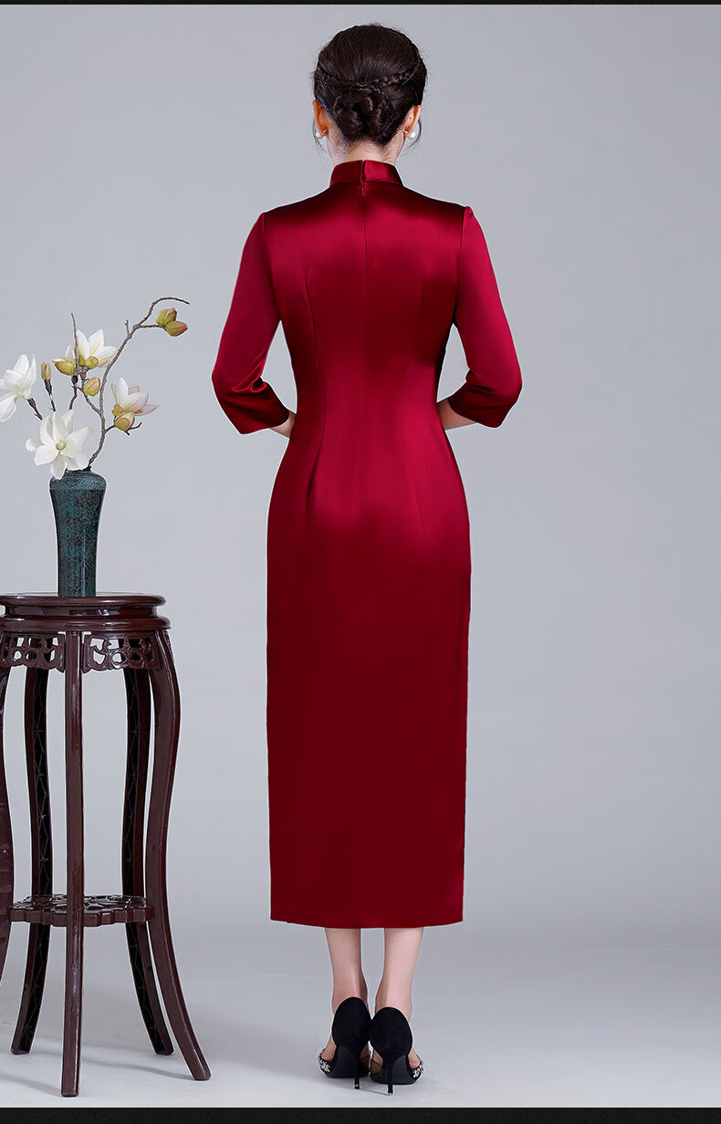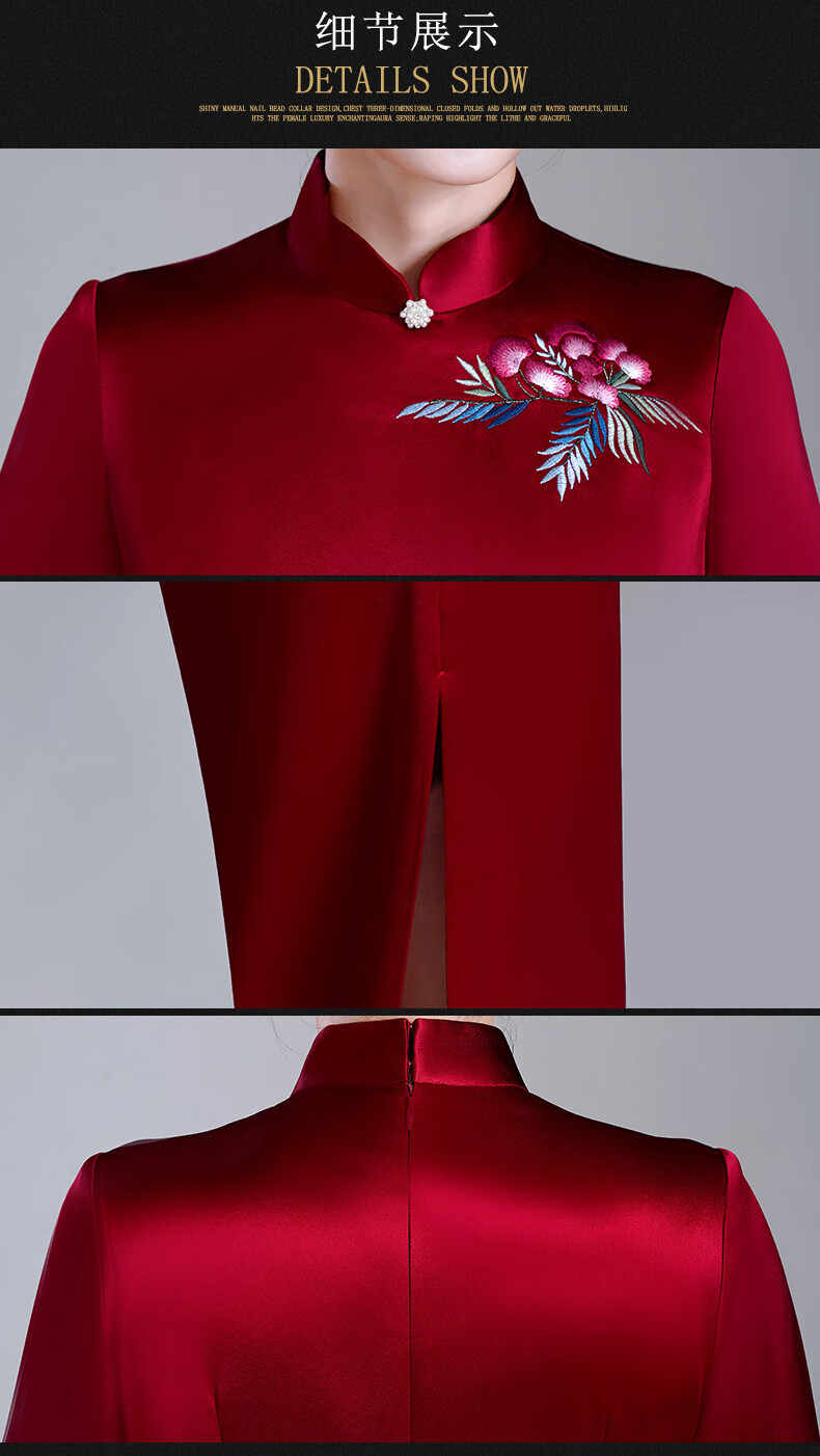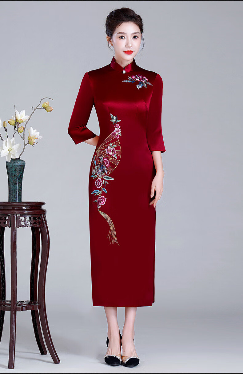 Meifuna cheongsam Chinese style autumn and winter new style high-end mother-in-law wedding banquet embroidered cheongsam wedding mother dress for women burgundy 2XL