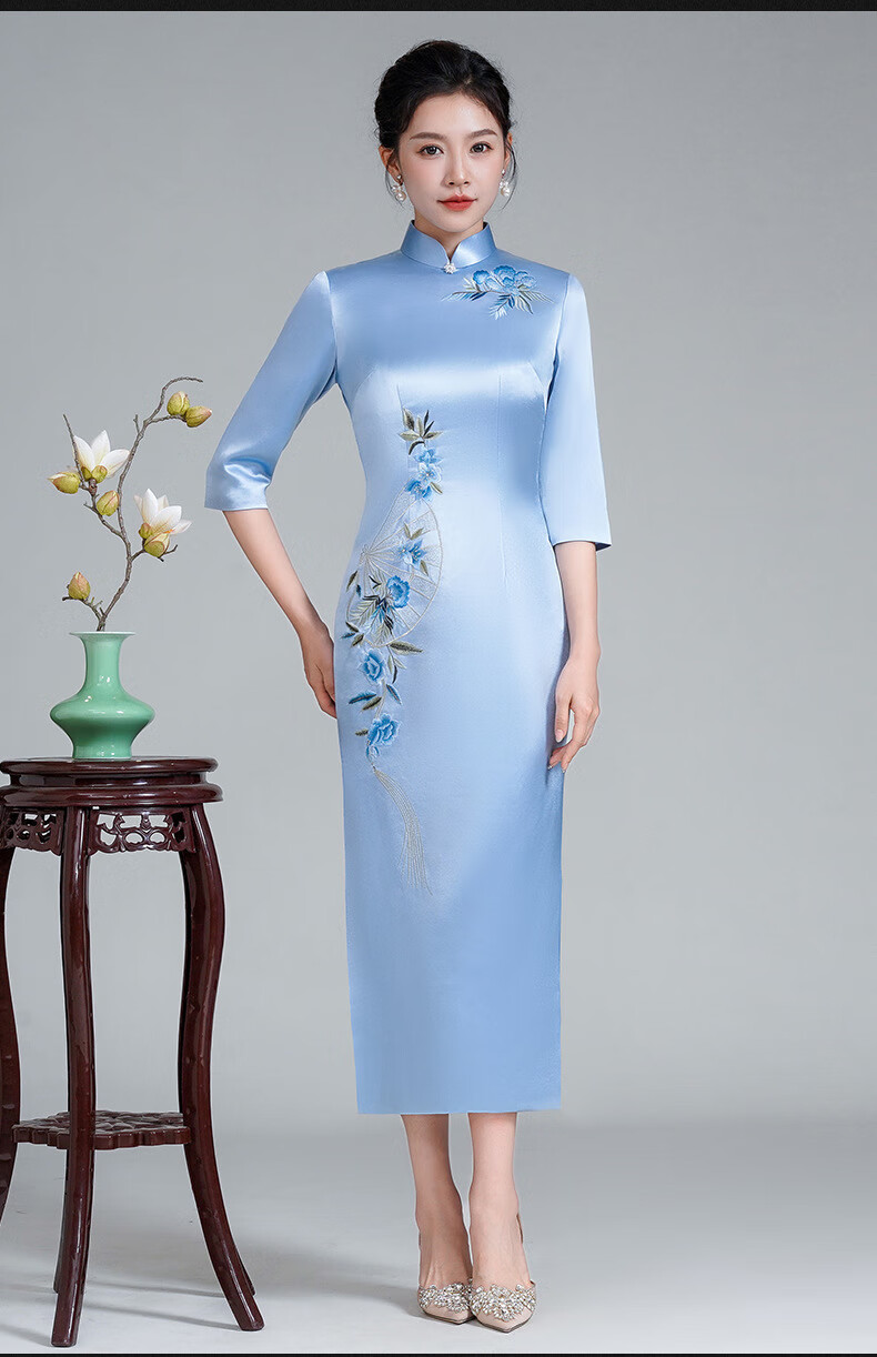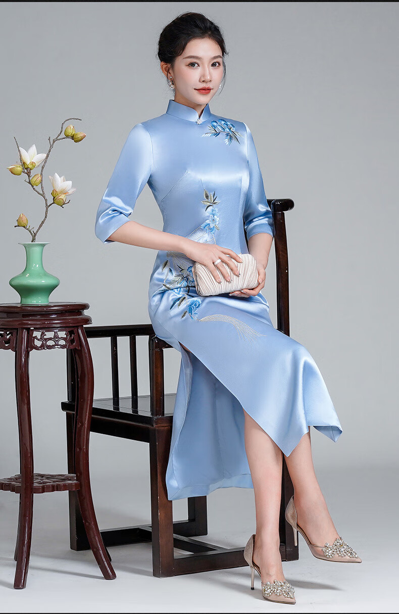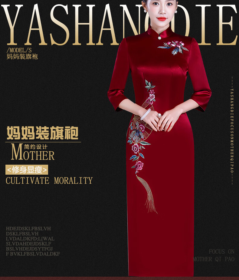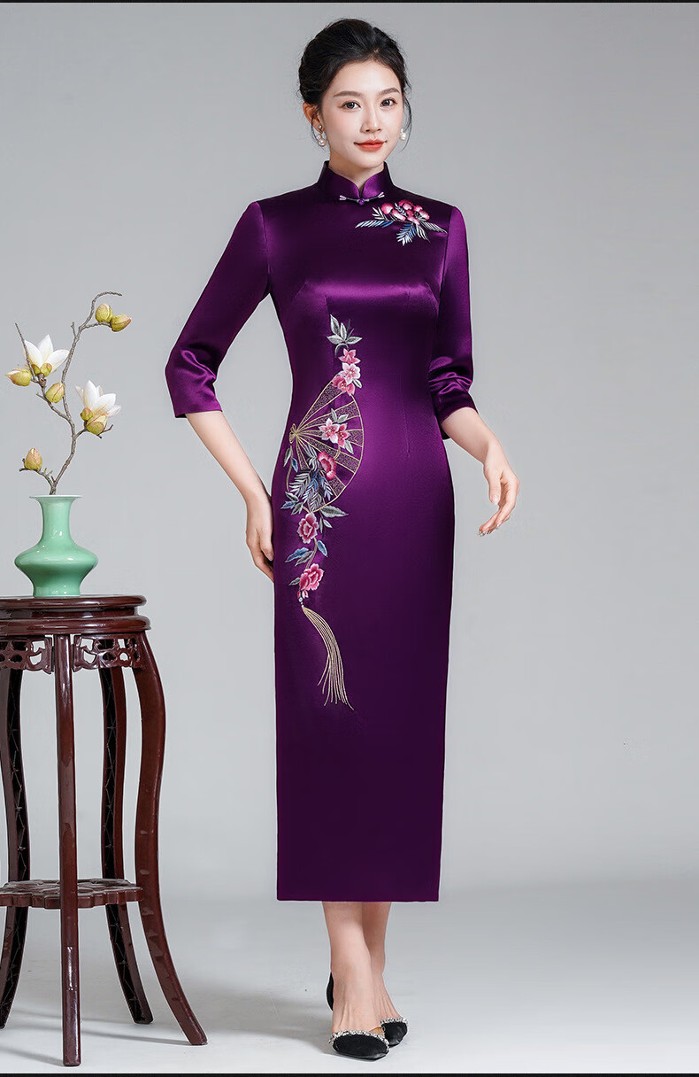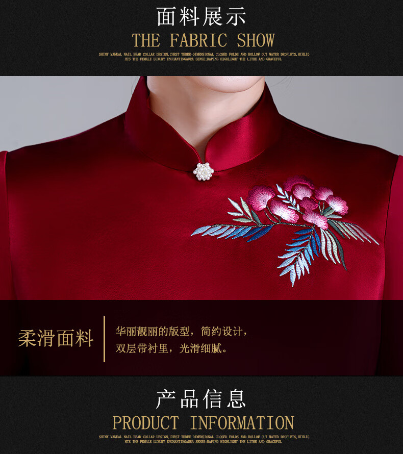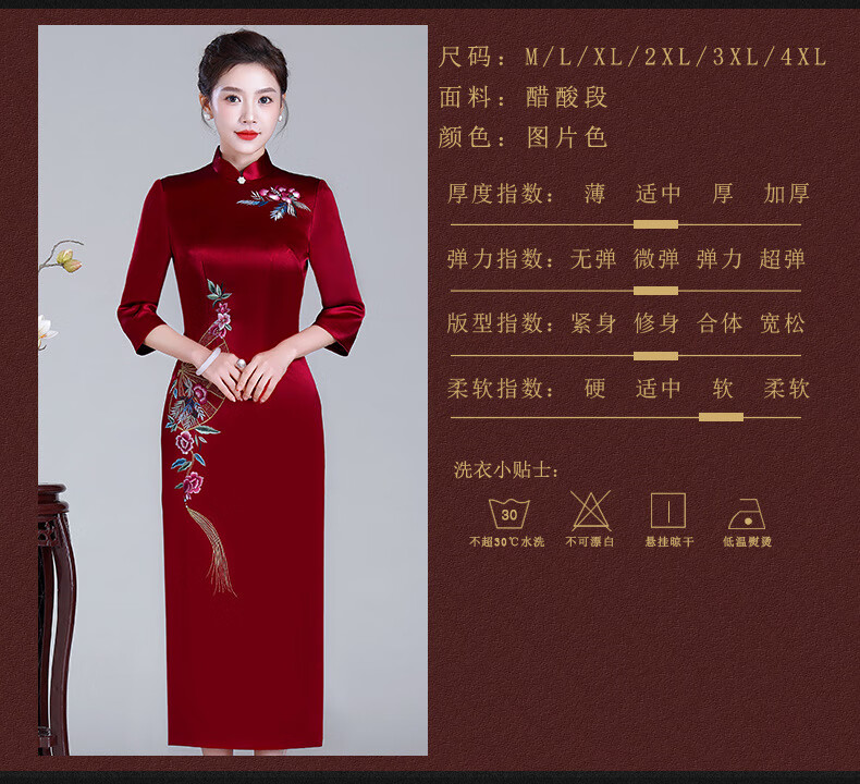 Meifuna cheongsam Chinese style autumn and winter new style high-end mother-in-law wedding banquet embroidered cheongsam wedding mother dress for women burgundy 2XL
