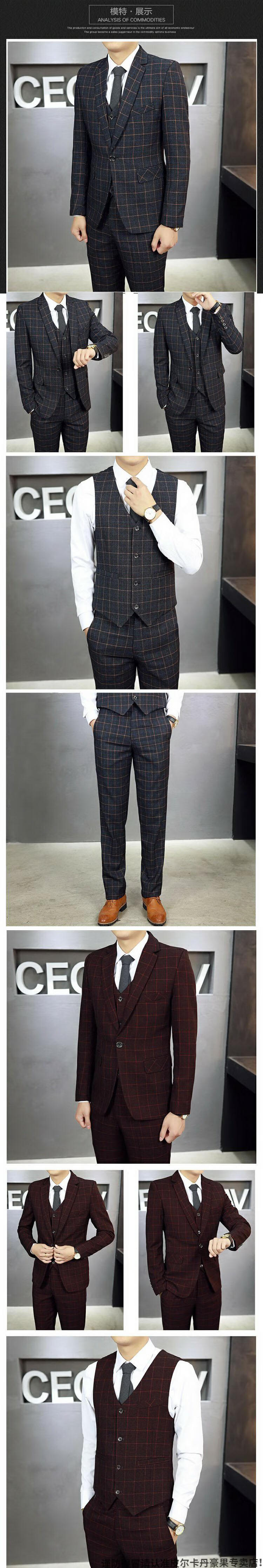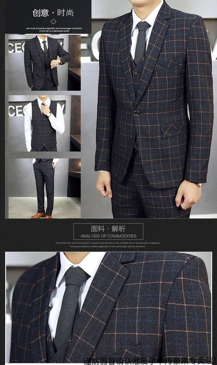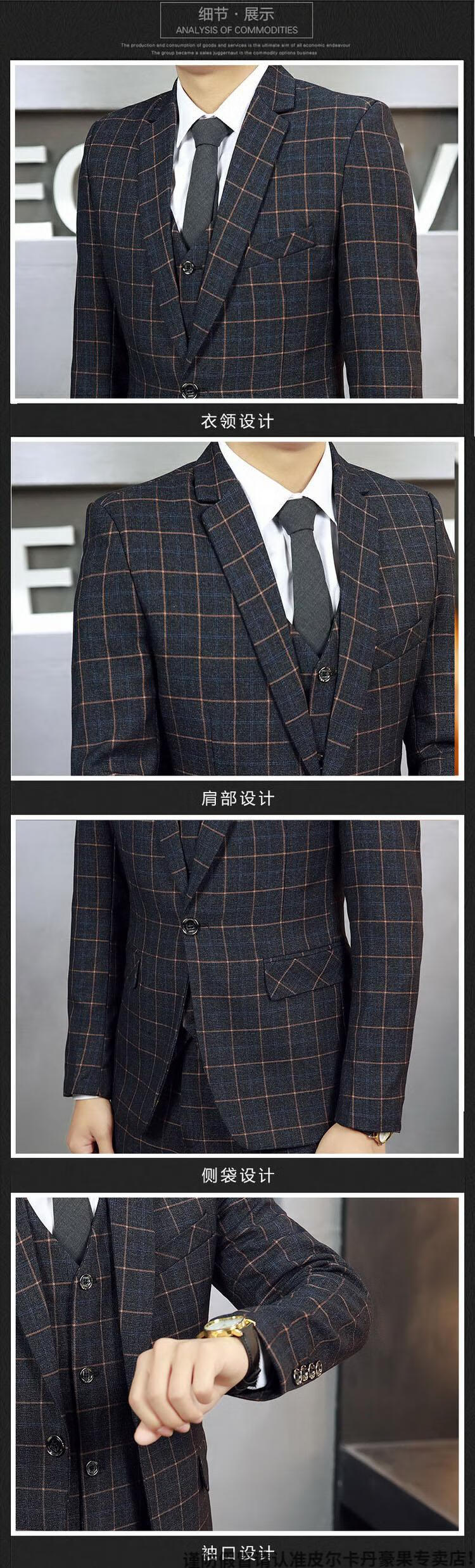 Pierre Cardin Men's Korean Slim Suit Three-piece Groom Wedding Dress Formal Casual Plaid Small Suit Plaid Blue Two-piece Set (Top and Pants) Free Belt 4XL 35 (155-162Jin Jin is equal to 0.5kg)