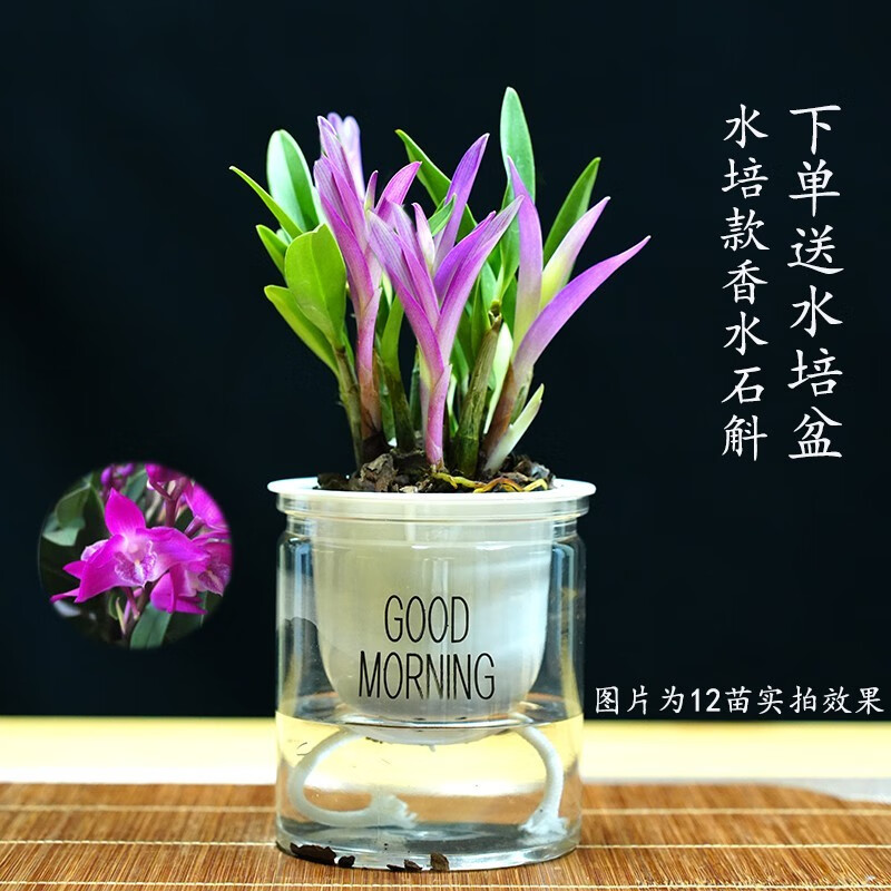 Liu Ge Orchid Colorful Perfume Dendrobium Orchid with buds in winter is good for growing green plants. Strong-scented Dendrobium flower potted green plants repel mosquitoes. 10 conjoined seedlings of colorful Dendrobium bloom in the current year with hydroponic pots.
