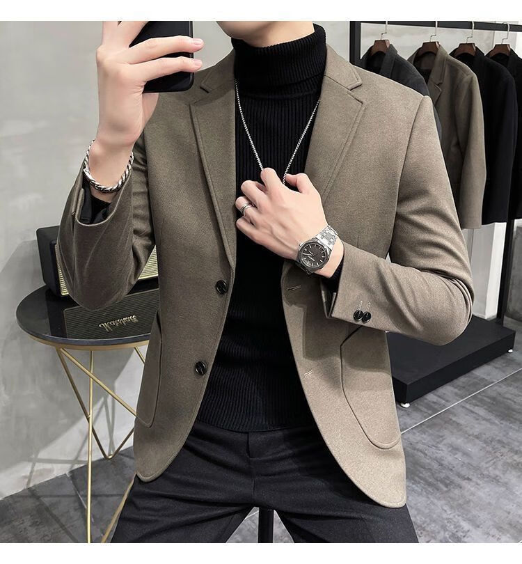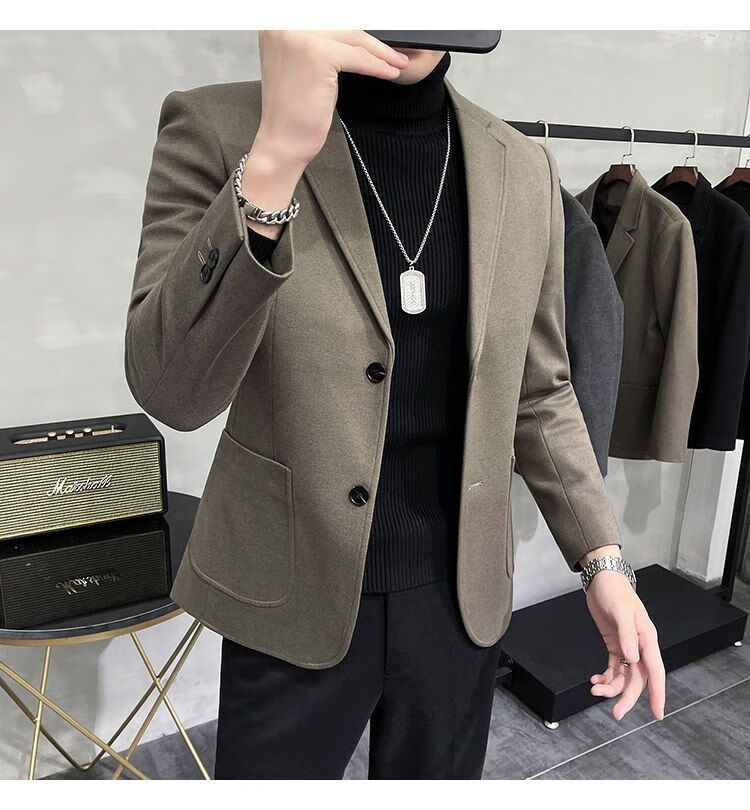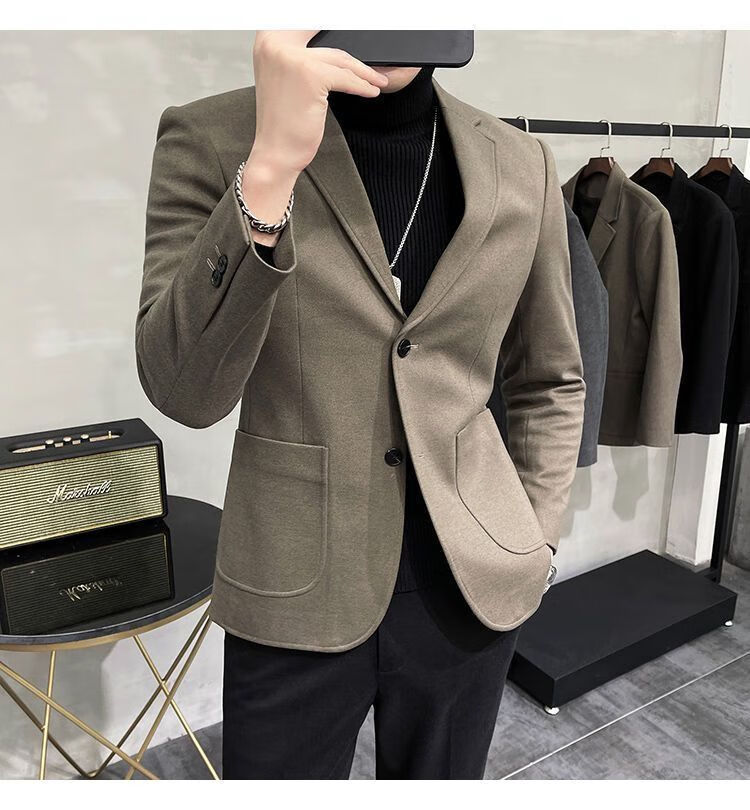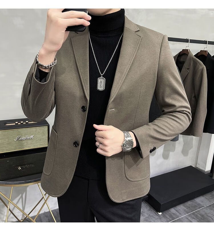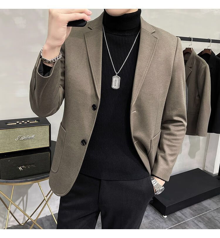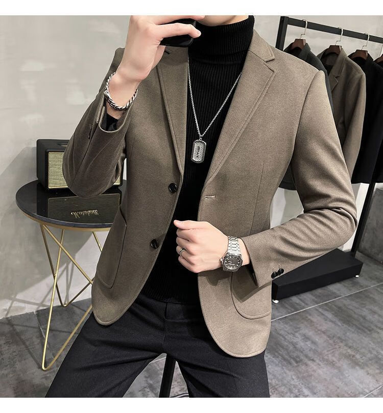 Pierre Cardin woolen casual small suit jacket spring and autumn Korean style single suit top business men's high-end handsome men's suit khaki color L recommended 110-130Jin Jin equals 0.5 kg