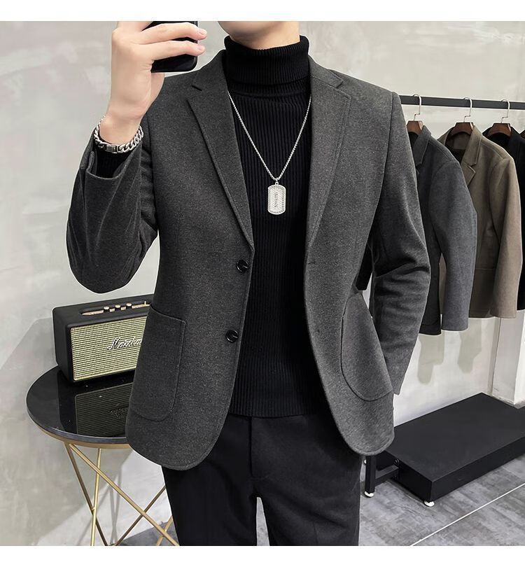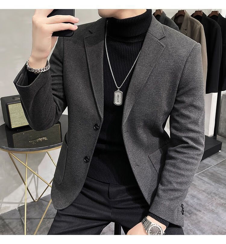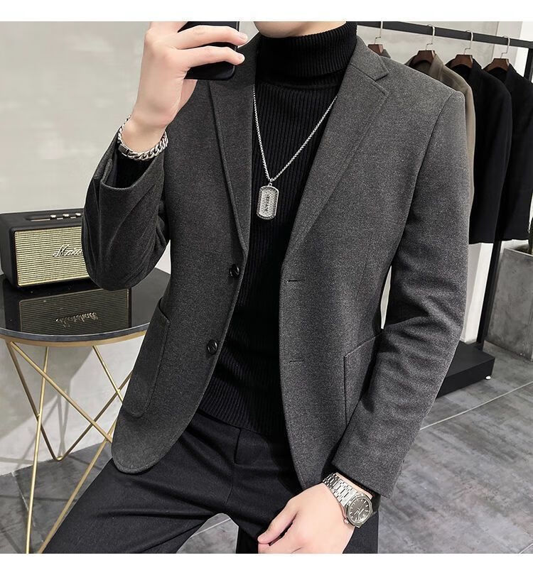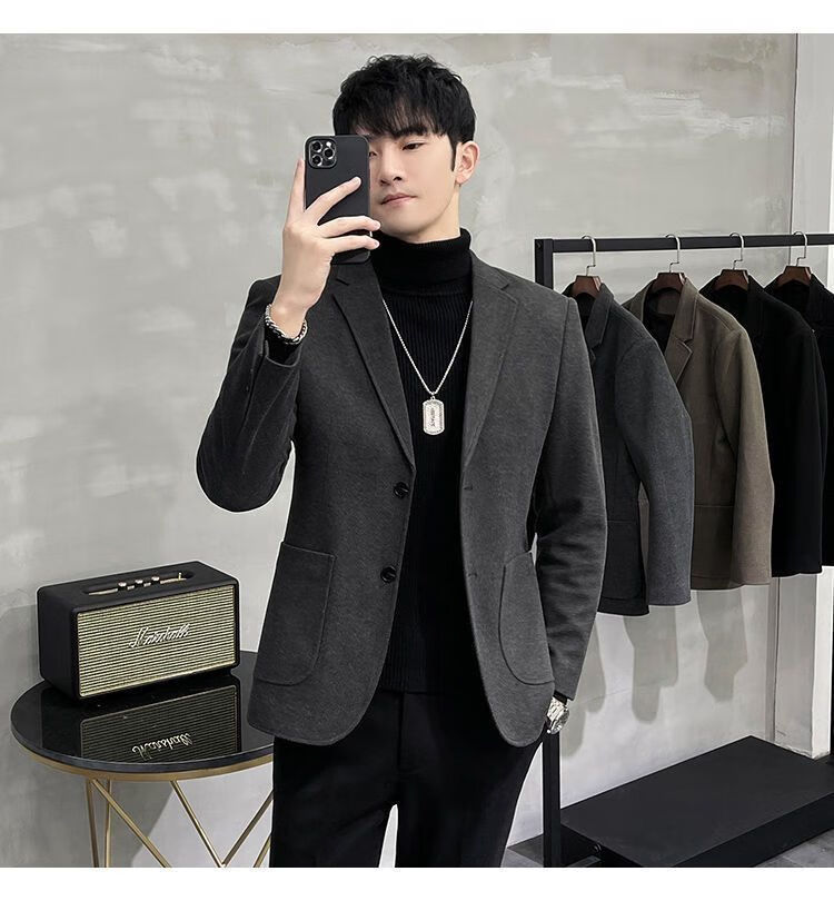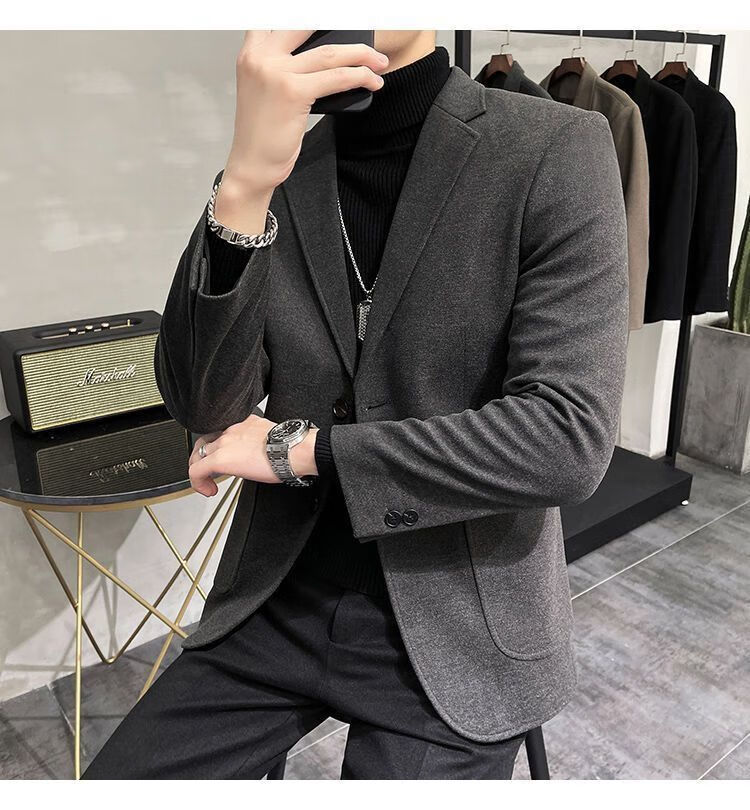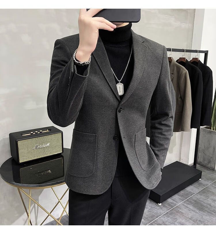 Pierre Cardin woolen casual small suit jacket spring and autumn Korean style single suit top business men's high-end handsome men's suit khaki color L recommended 110-130Jin Jin equals 0.5 kg