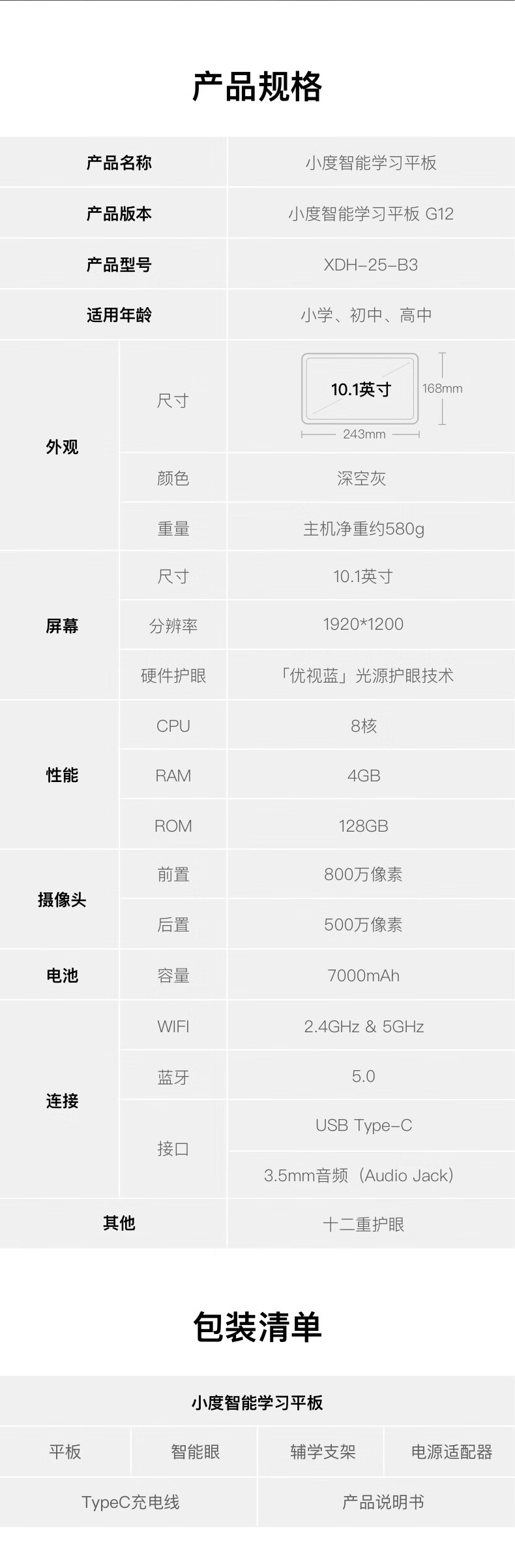Xiaodu Learning Tablet G12 Smart Home Student Tutoring Machine Eye Protection Screen Toddler Elementary School Junior High School High School Textbook Course Synchronous Learning Machine Early Education Machine Online Class Rereading Artifact G12 (4+128GB) Order Upgrade to S20pro