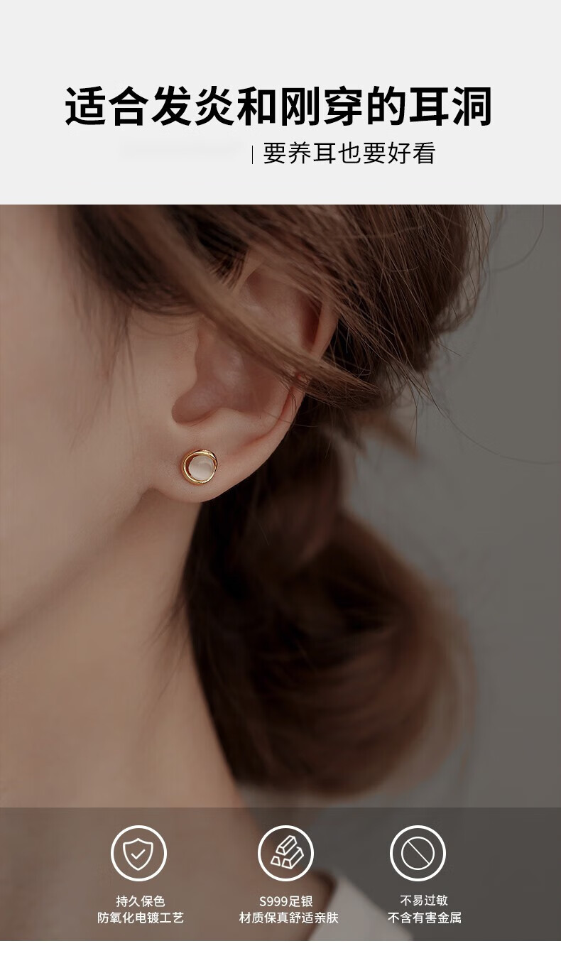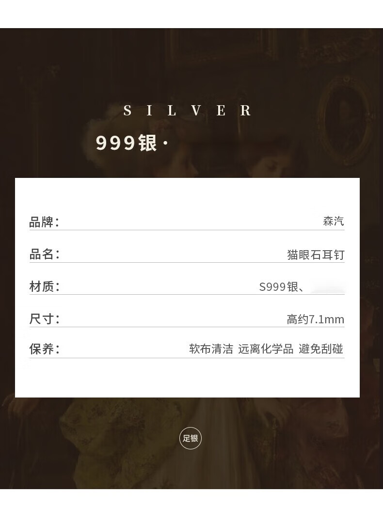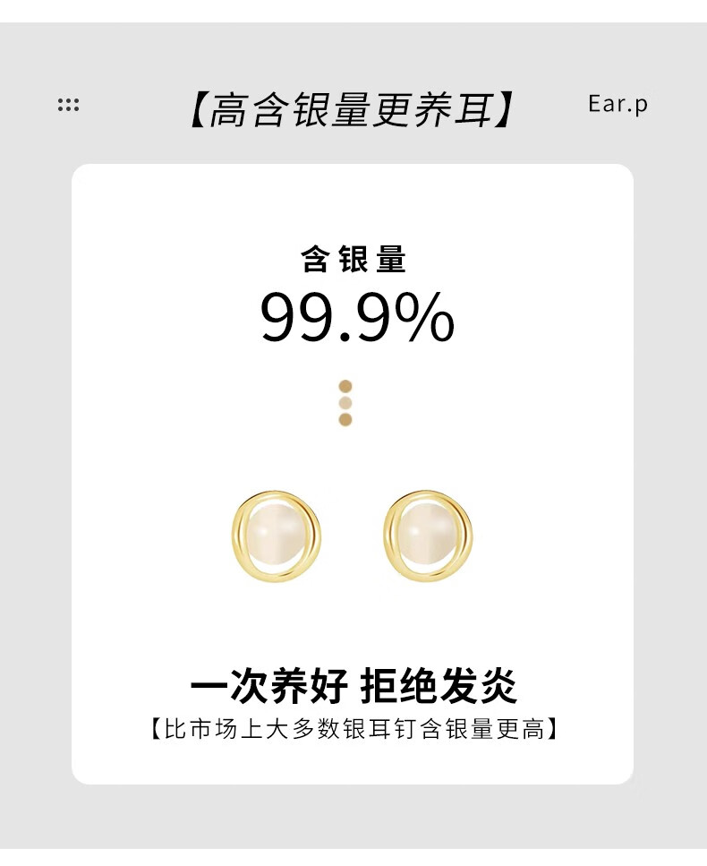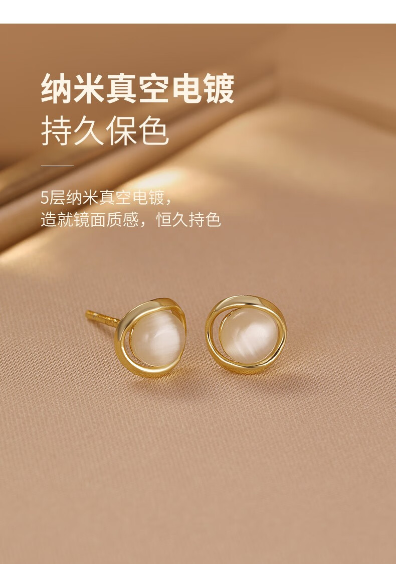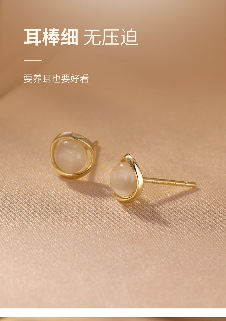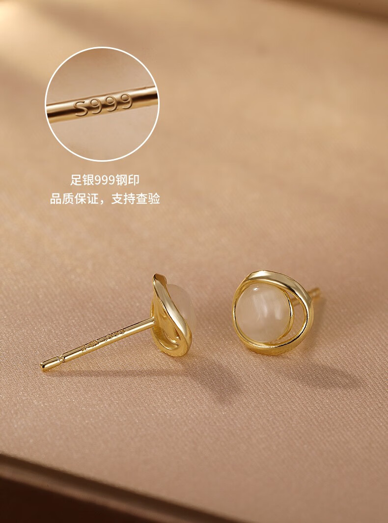 Senqi 999 Pure Silver Earrings Women's Niche Design Light Luxurious High-Grade Synthetic Cat's Eye Earrings Earrings Silver Fashion Accessories E3116 999 Pure Silver Earrings