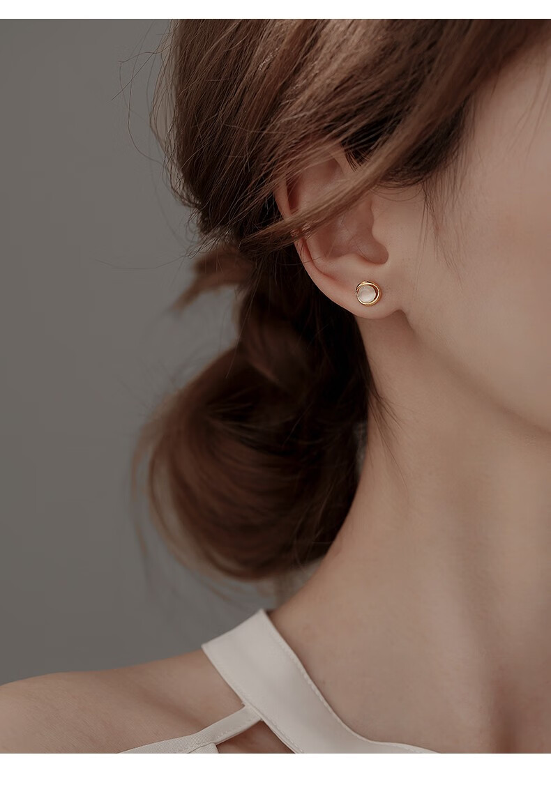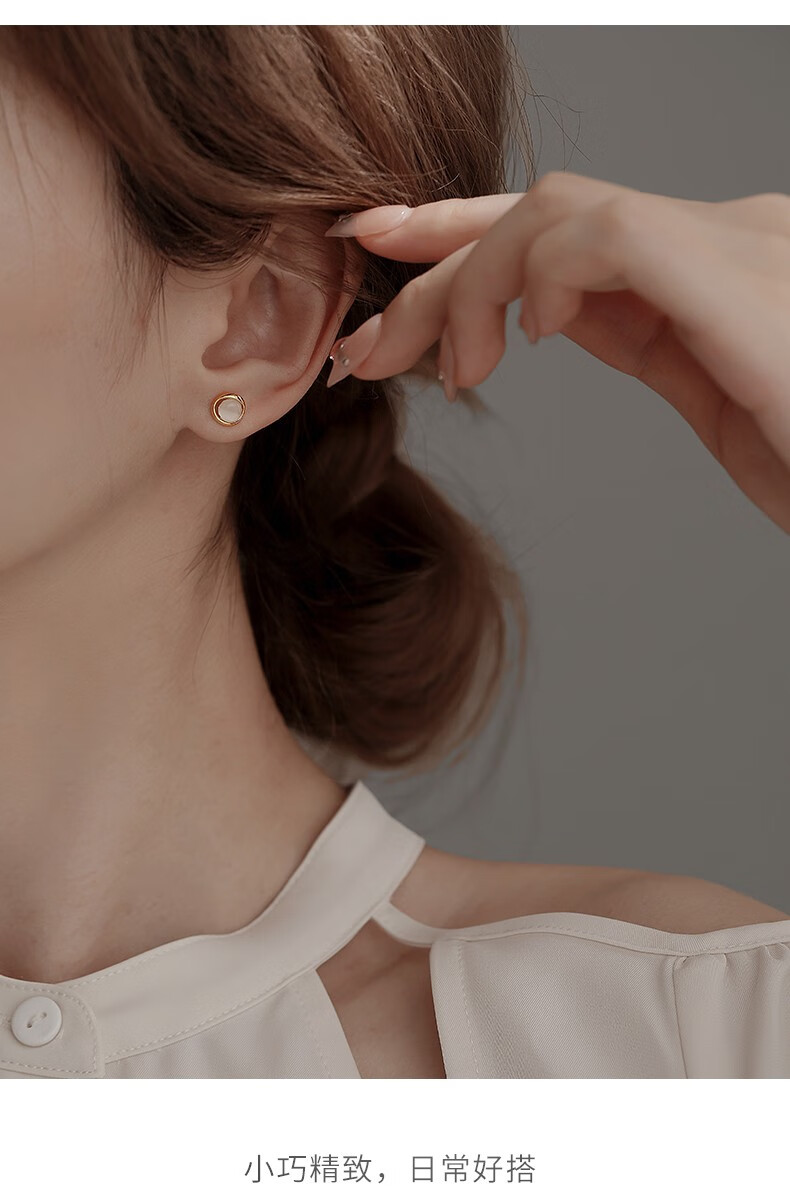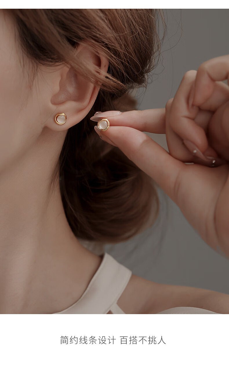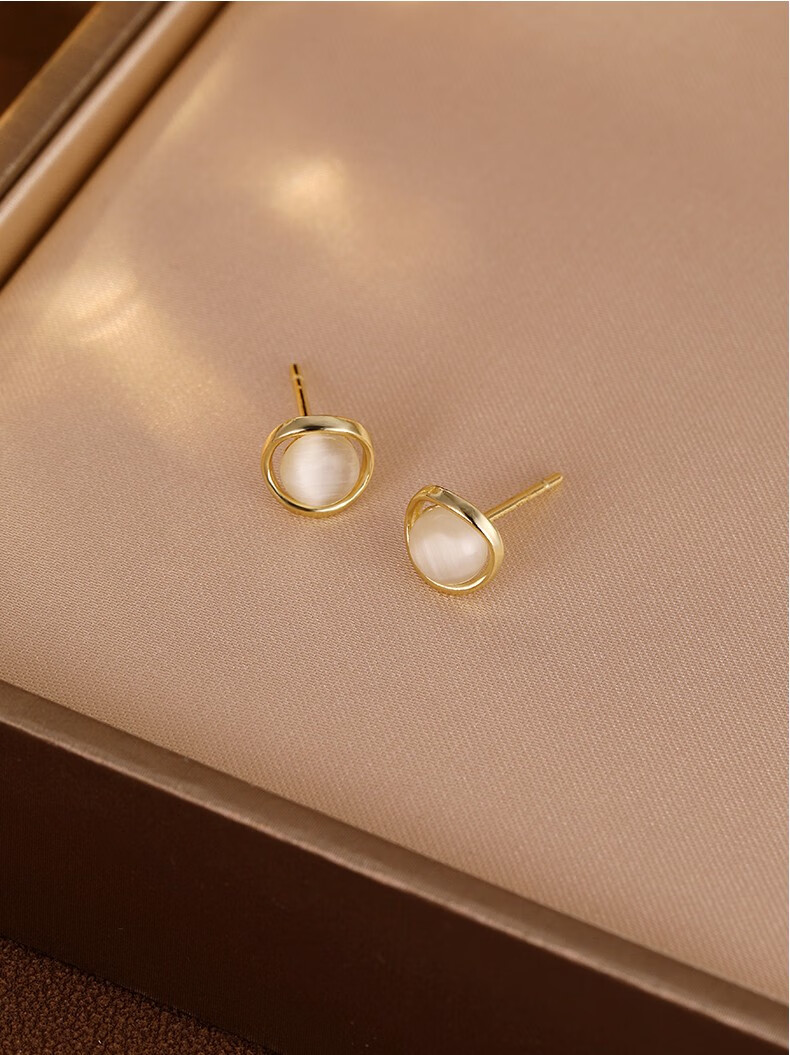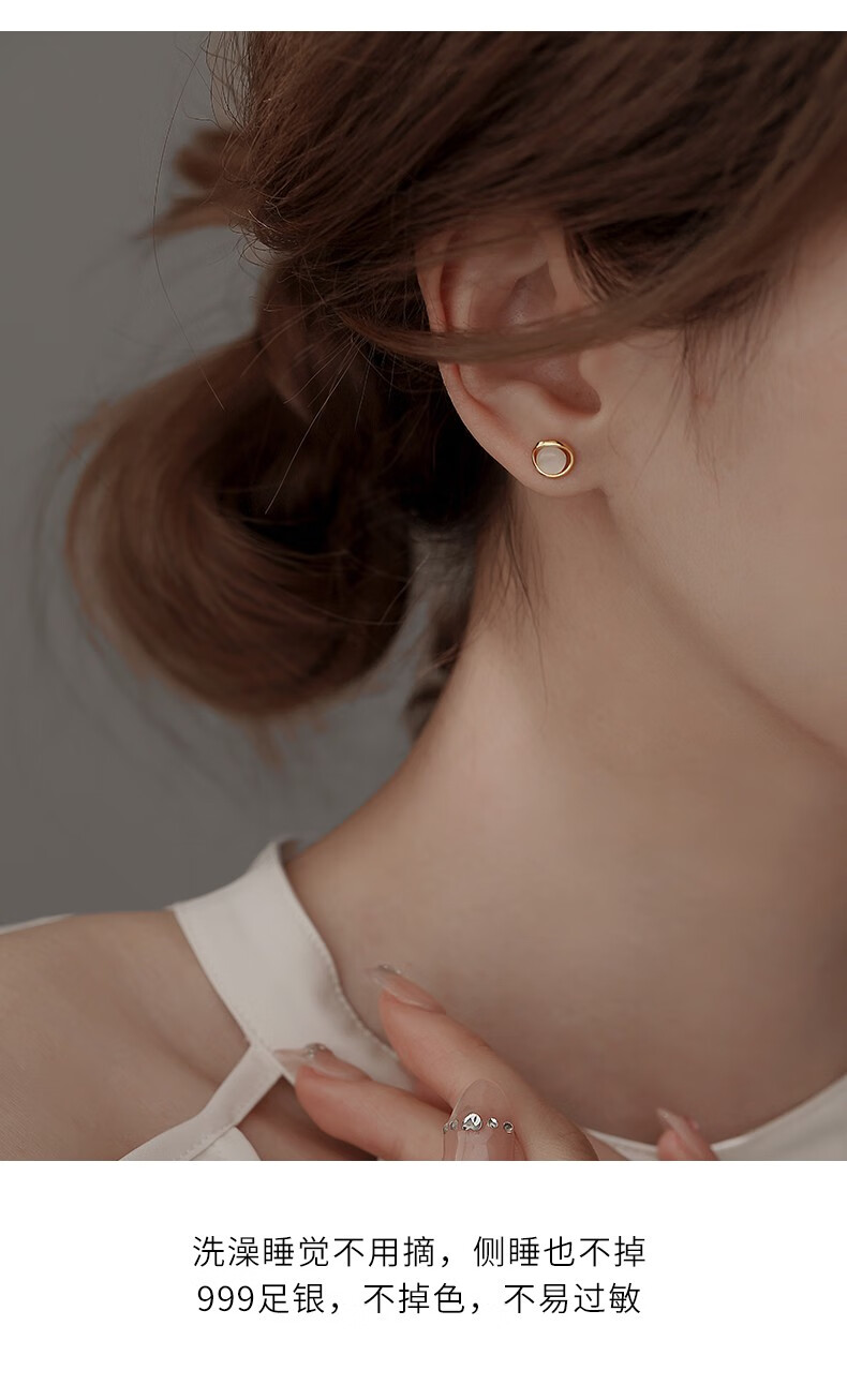 Senqi 999 Pure Silver Earrings Women's Niche Design Light Luxurious High-Grade Synthetic Cat's Eye Earrings Earrings Silver Fashion Accessories E3116 999 Pure Silver Earrings
