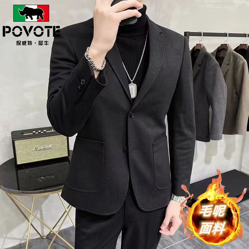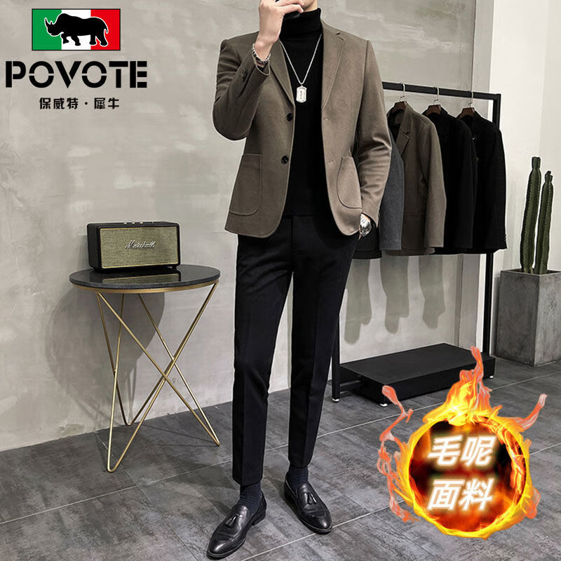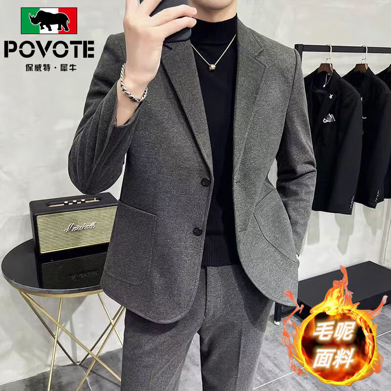 Pierre Cardin autumn and winter woolen casual suit men's suit thickened warm slim versatile British woolen suit two-piece dark gray woolen suit L 115-135Jin Jin equals 0.5 kg