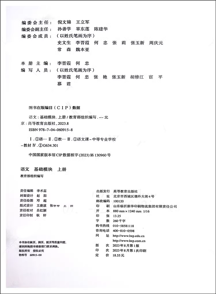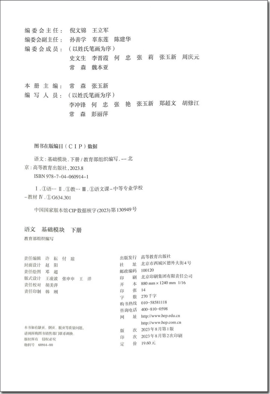 2023 New Edition Chinese Basic Module Volume 1 + Volume 2 Higher Education Edition Secondary Vocational School Textbook Compiled Edition Edited by Ni Wenjin and Wang Lijun Secondary Vocational School Textbook 2025 Secondary Vocational Education Curriculum Higher Education Press Textbook Chinese Basic Module Volume 1 + Volume 2
