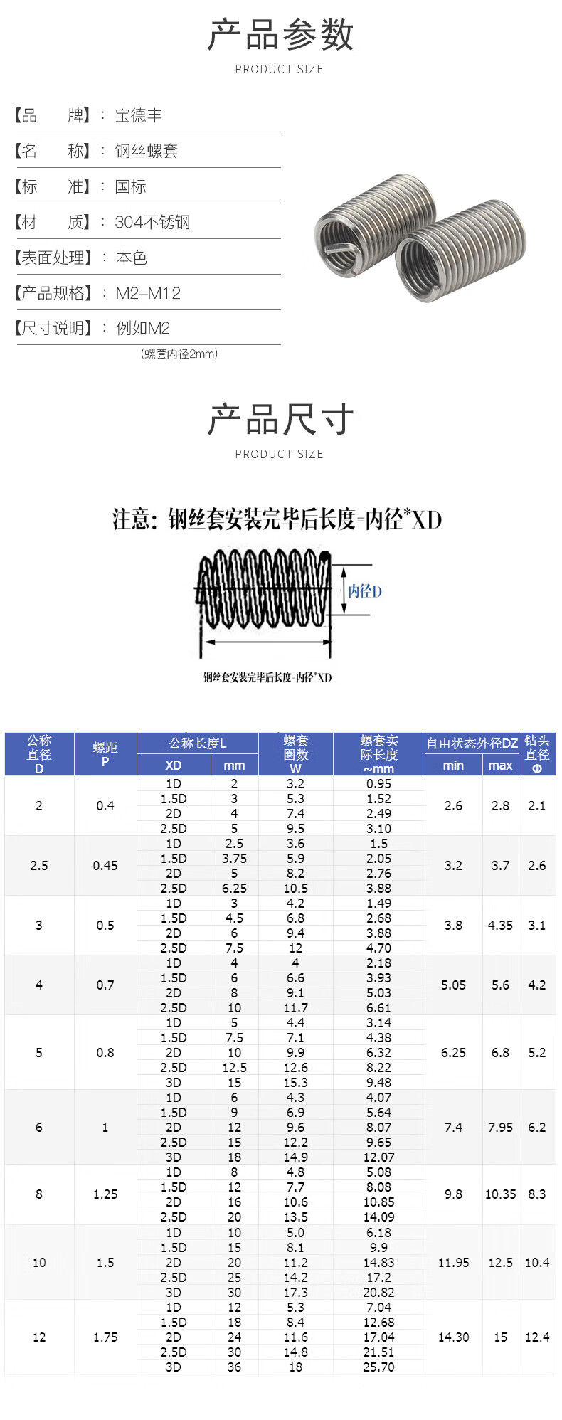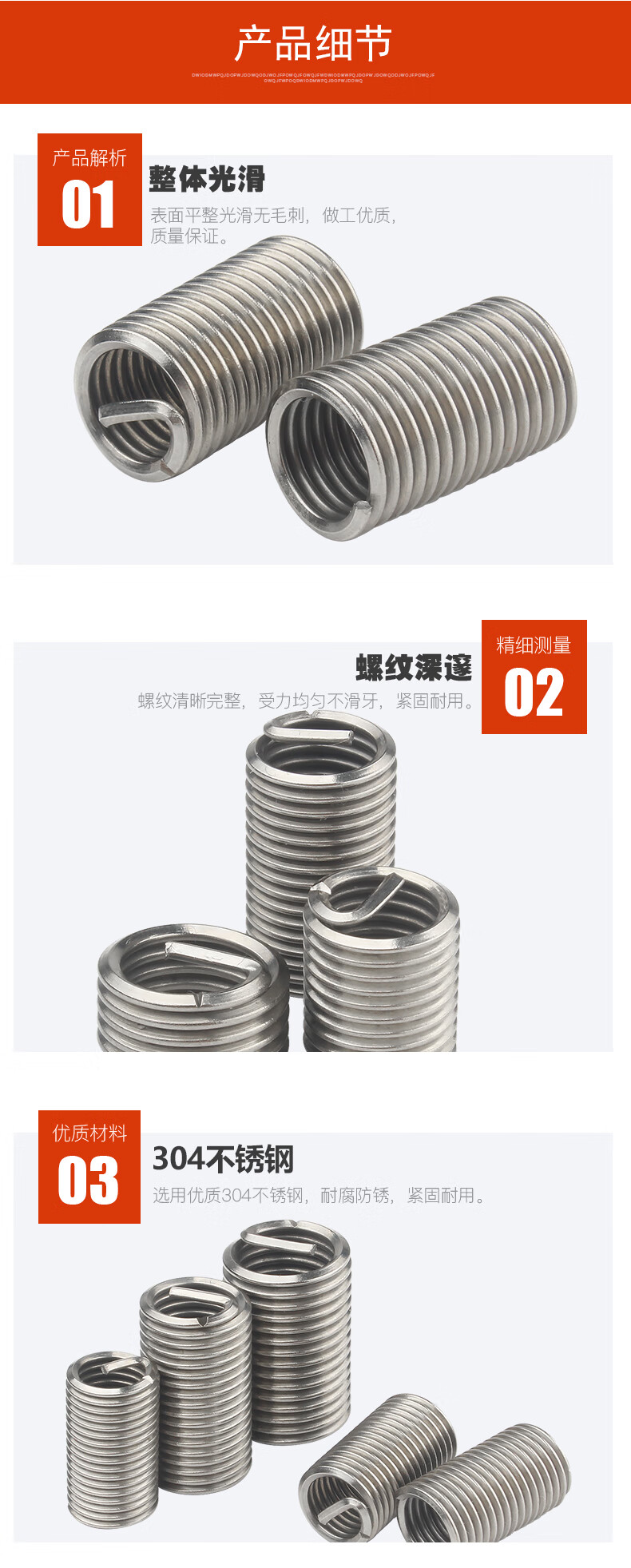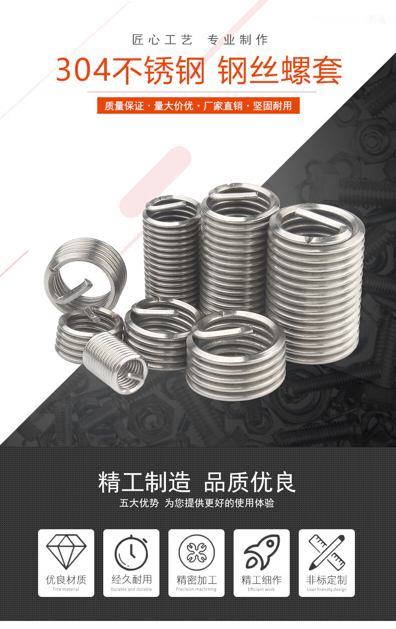 Baodefeng 304 stainless steel wire braces/wire screw sleeves/thread protective sleeves/repair screw sleeves national standard accessories M5*0.8*1D (50 pieces/5mm after installation)