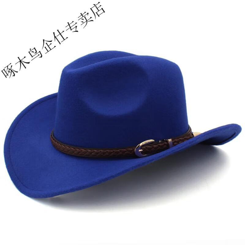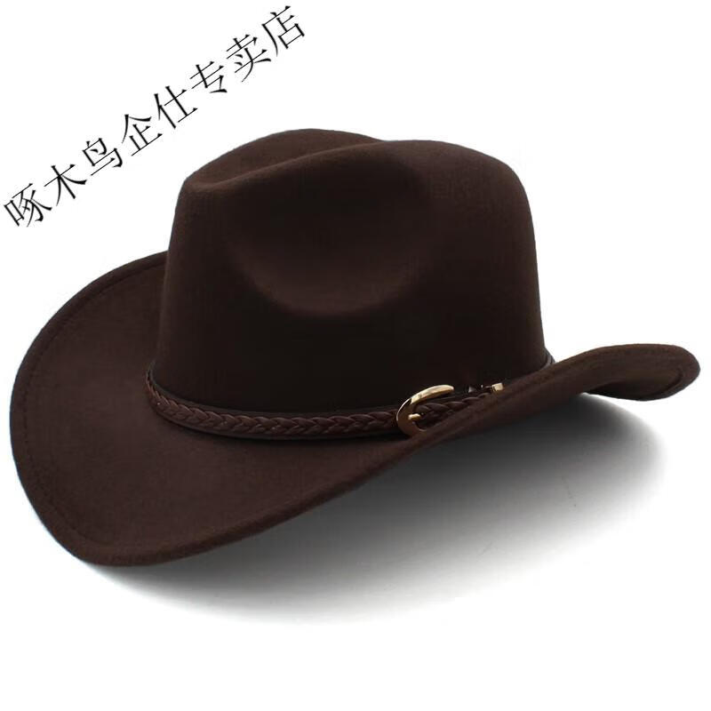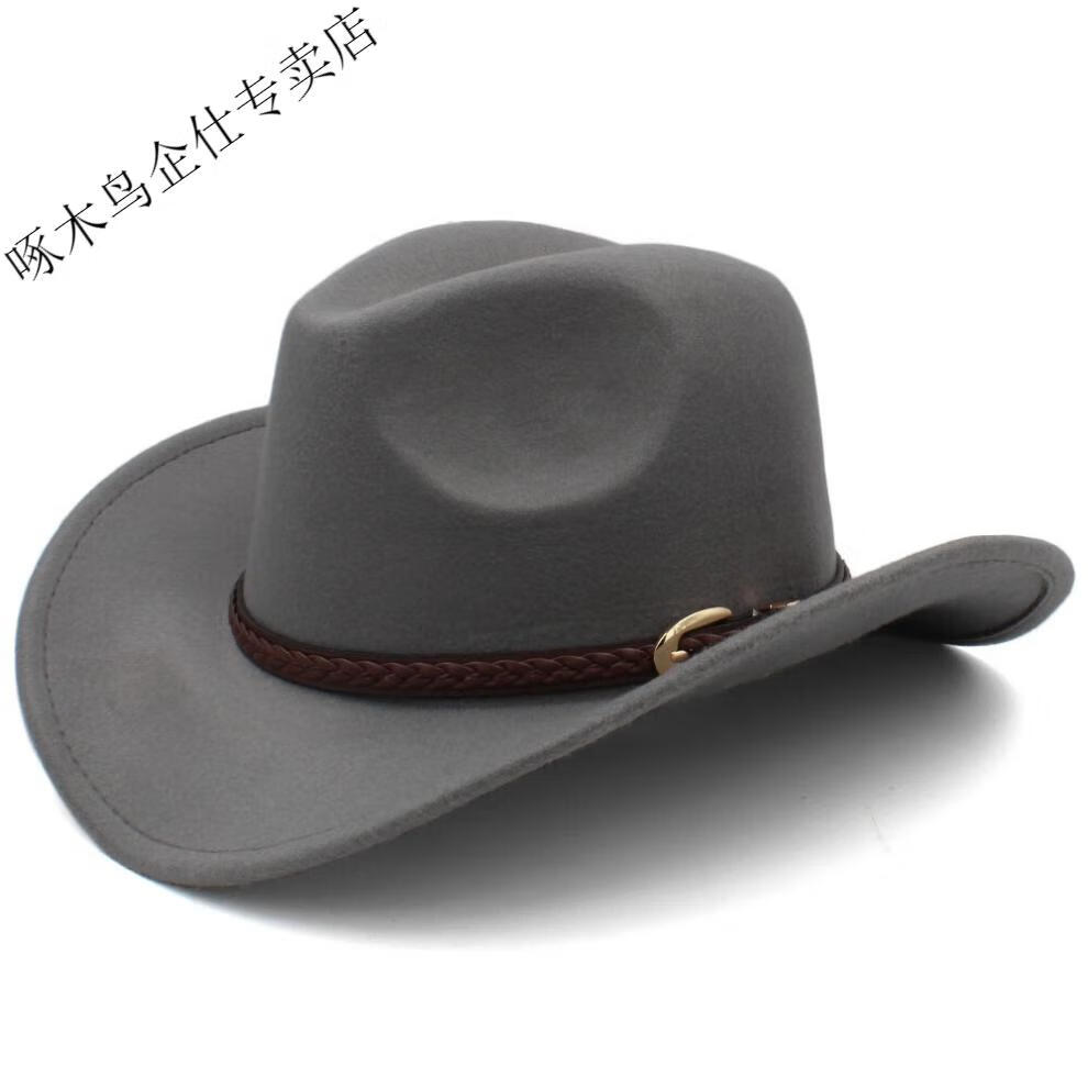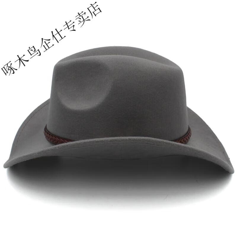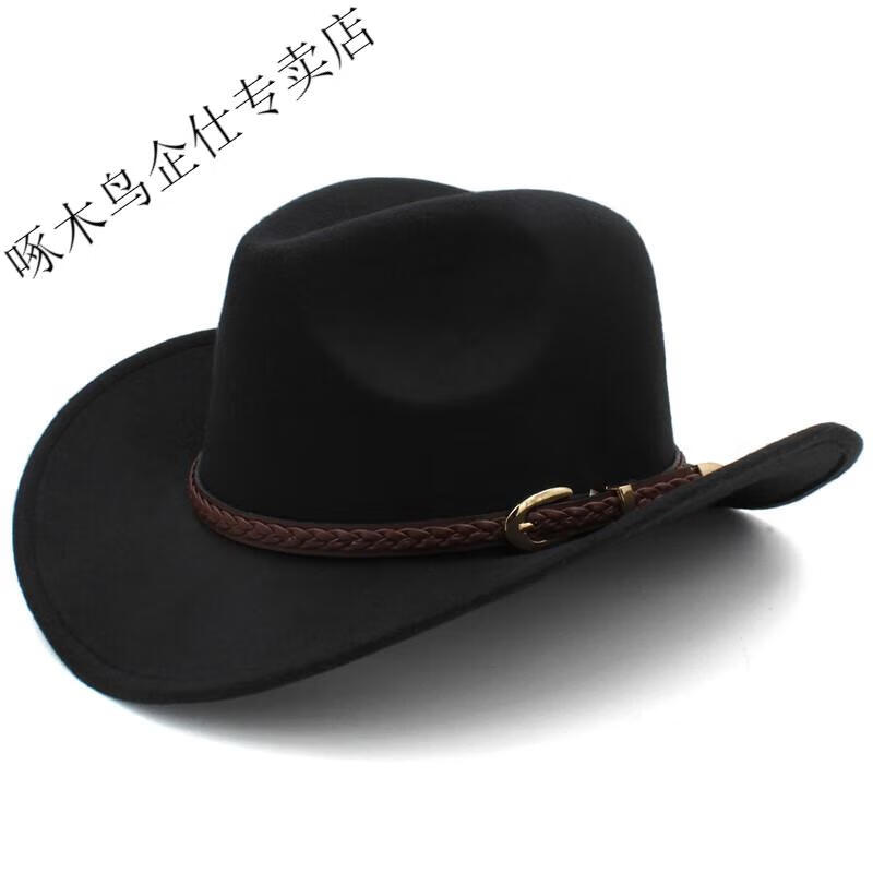 Woodpecker 3 sizes large head circumference adjustable spring, autumn and winter men's and women's woolen horse riding western cowboy hat black (no windproof rope) large head circumference 60-61CM