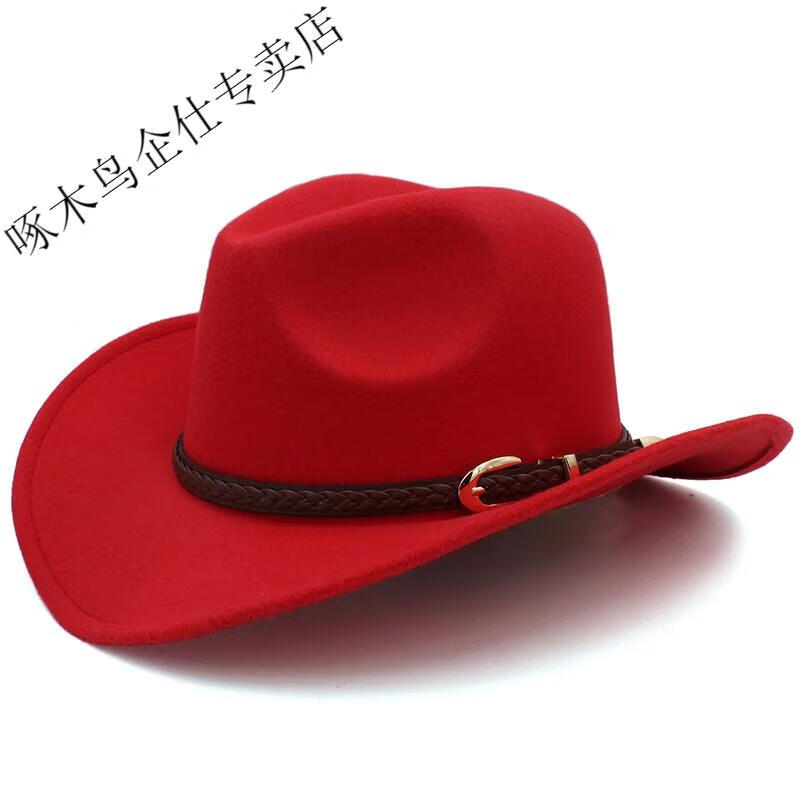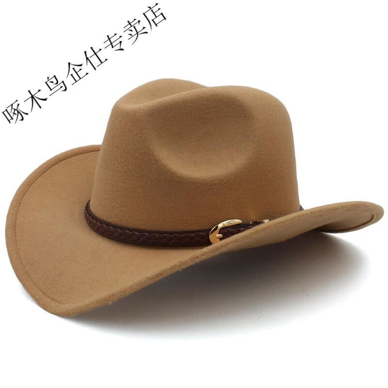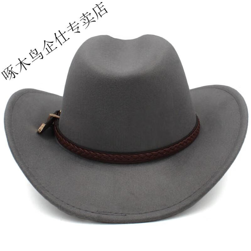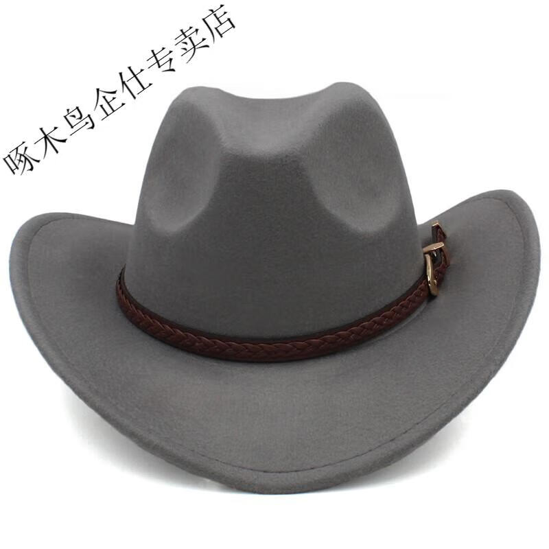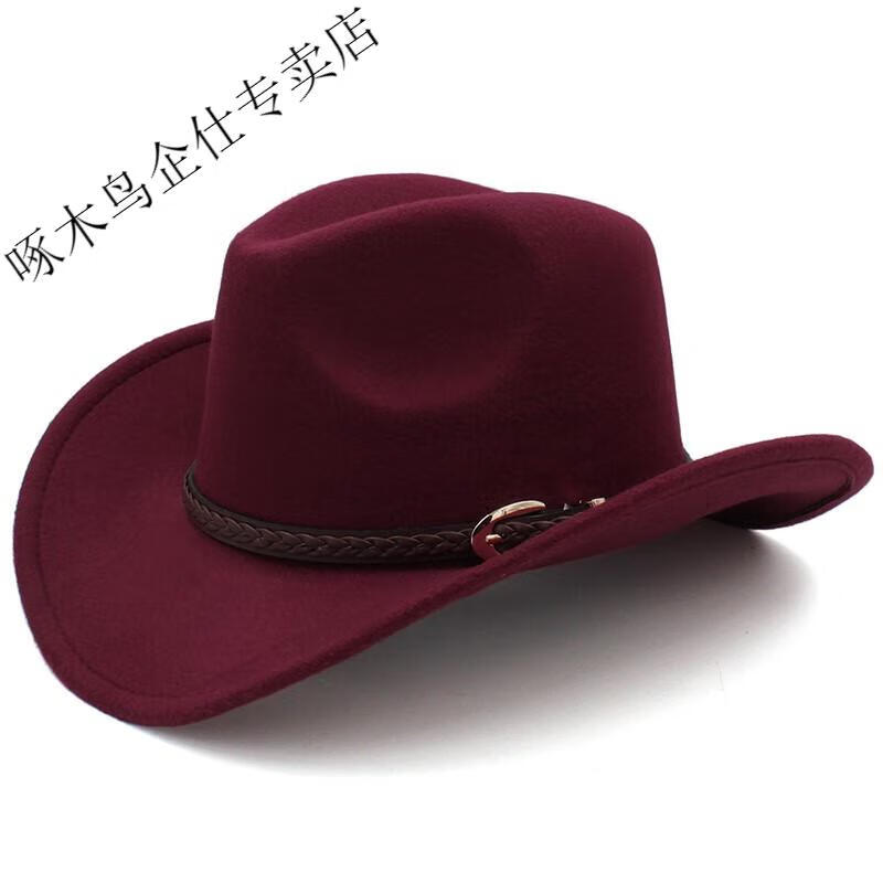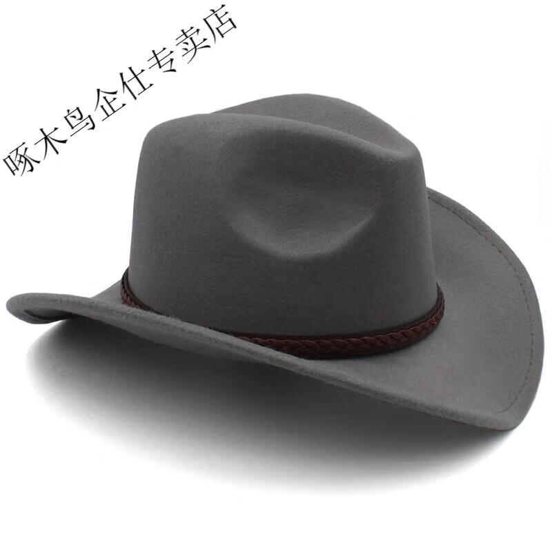 Woodpecker 3 sizes large head circumference adjustable spring, autumn and winter men's and women's woolen horse riding western cowboy hat black (no windproof rope) large head circumference 60-61CM