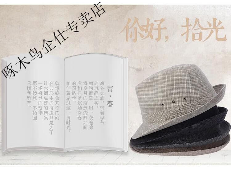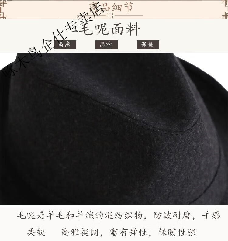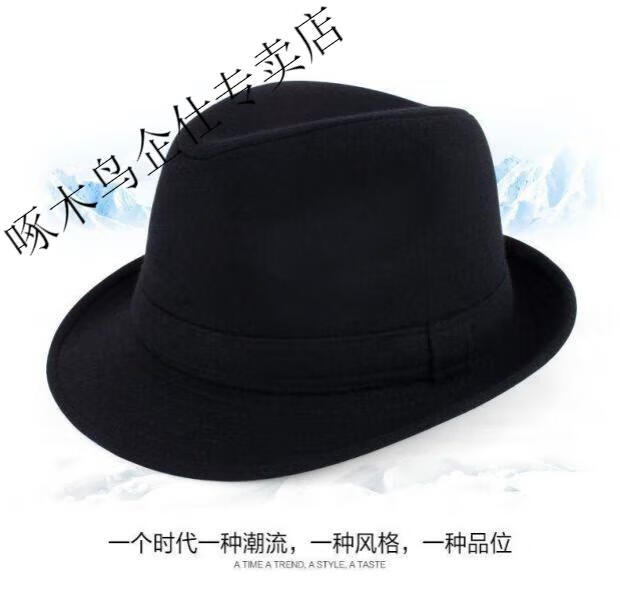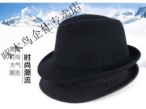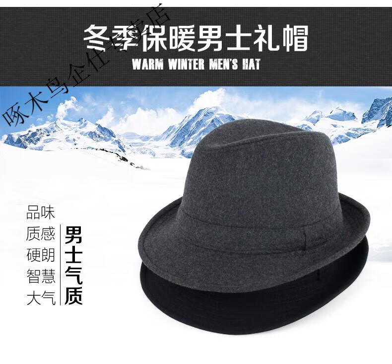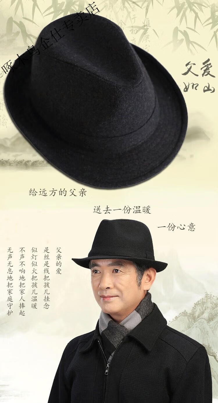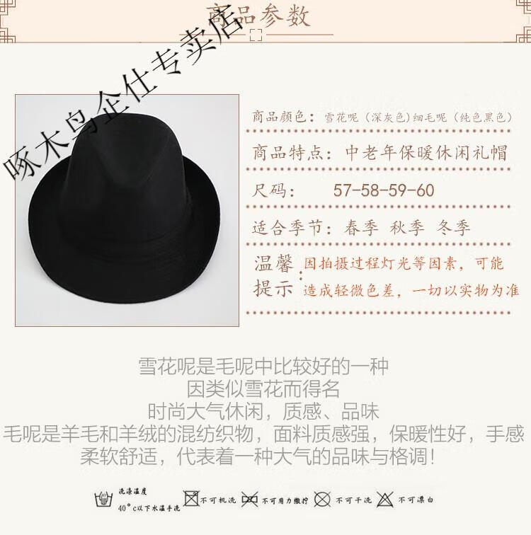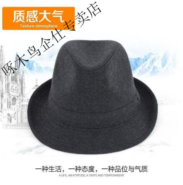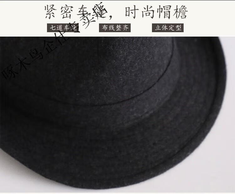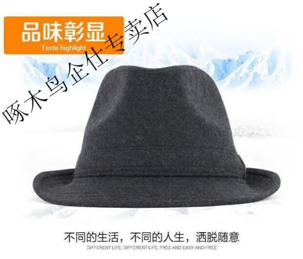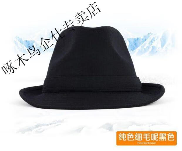 Woodpecker Hat Men's Winter Woolen Top Hat Thickened Autumn and Winter Middle-aged and Elderly Dad Jazz Hat Men's Winter Old Man Hat Black Woolen (One) 58CM