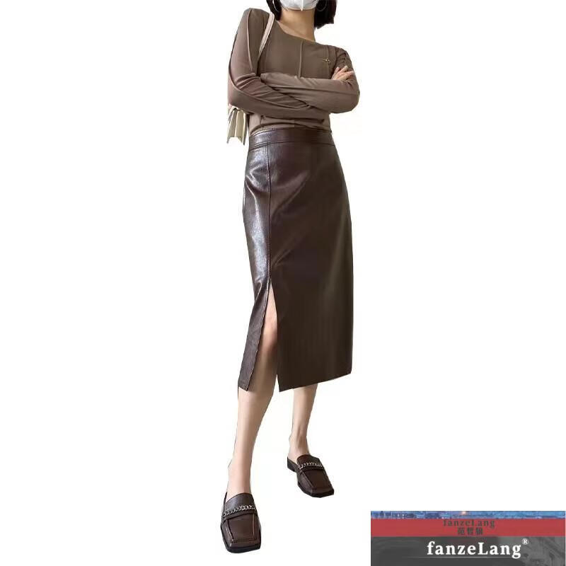 Fan Zhelang (FANZELANG) autumn and winter ins new sheepskin leather skirt skirt women's A-line skirt high waist mid-length skirt hip skirt black S
