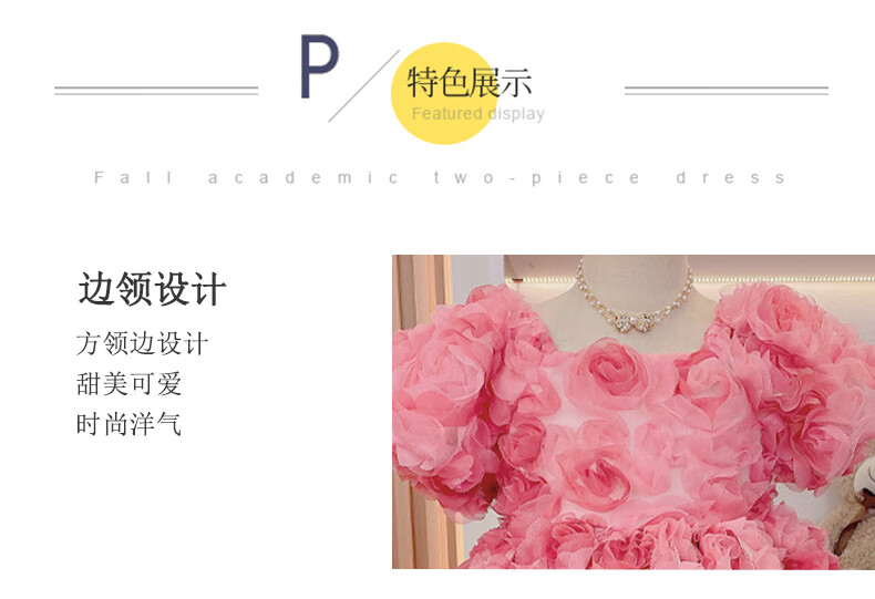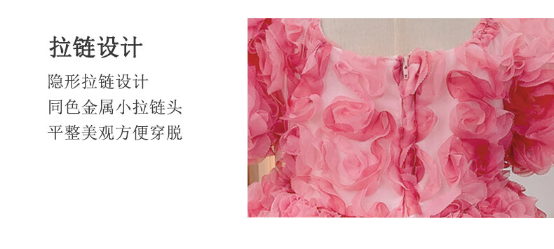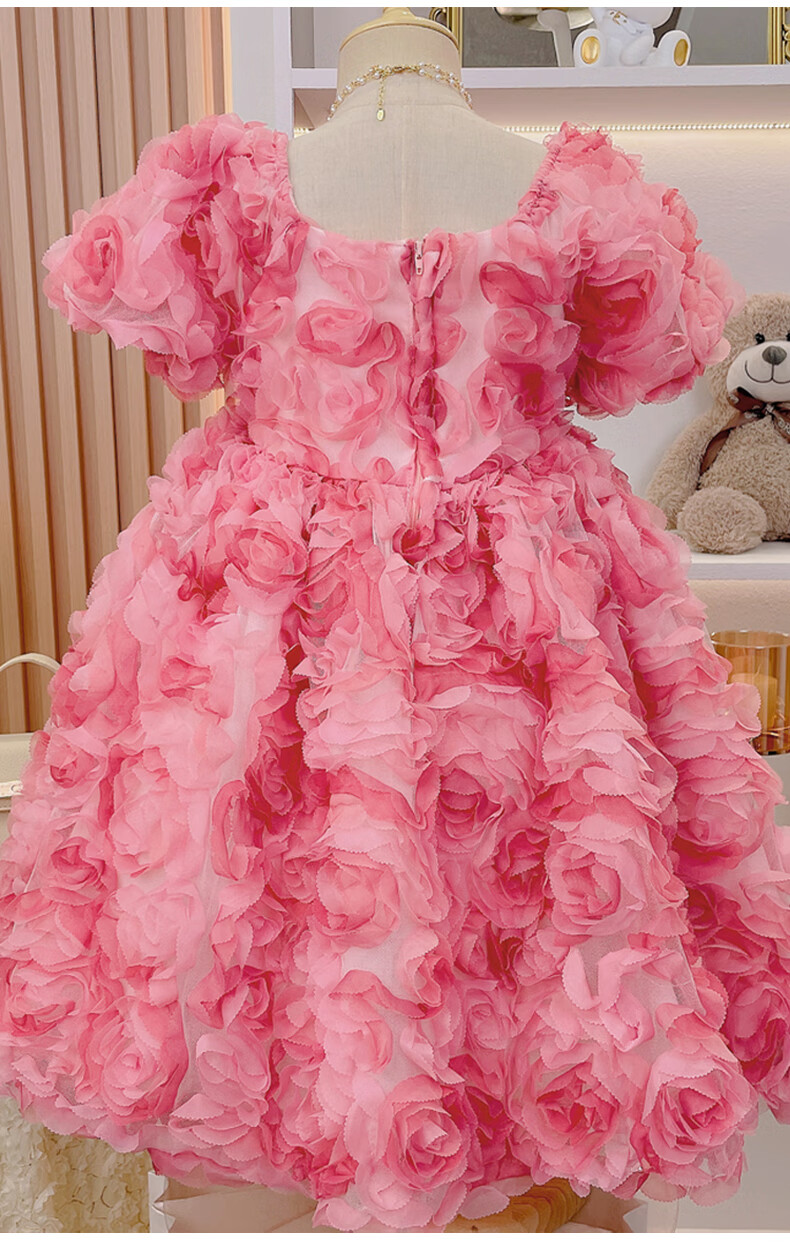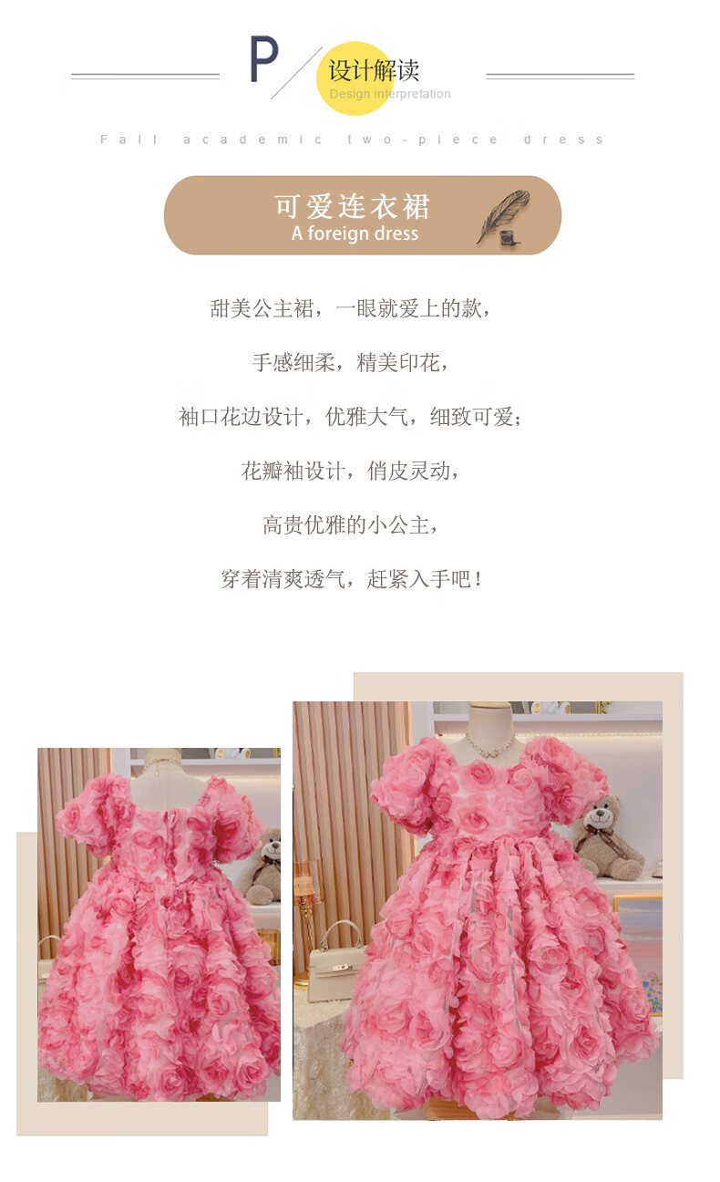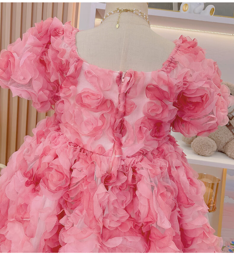 Anne Youer Girls Dress Summer 2025 New Children's Internet Celebrity Three-dimensional Flower French Princess Dress Girls Summer Dress Pink 110