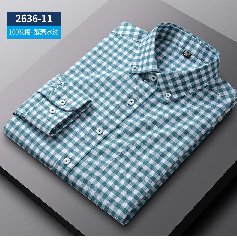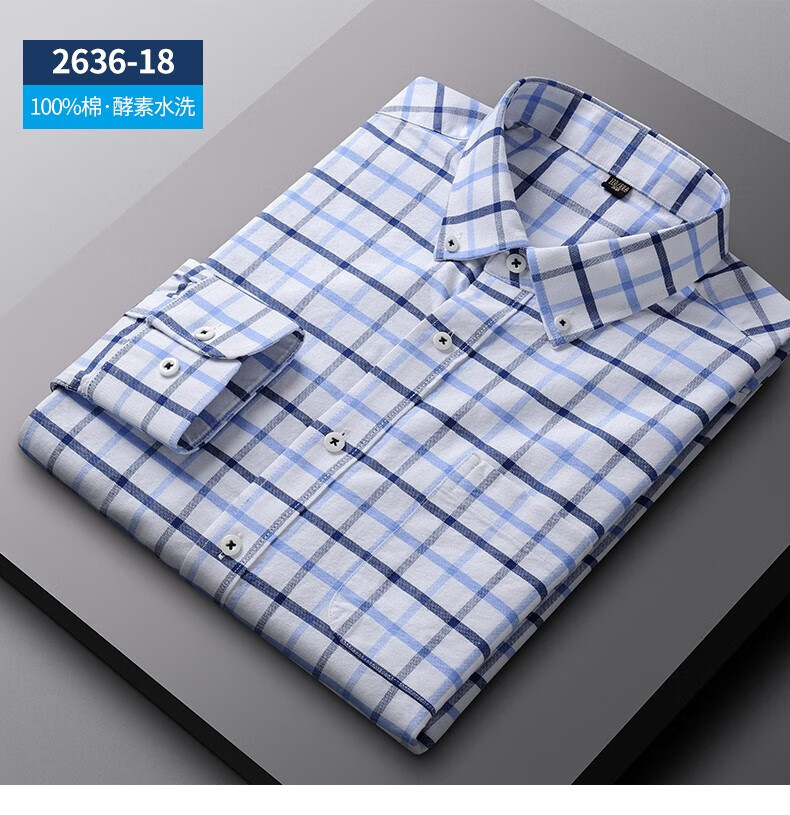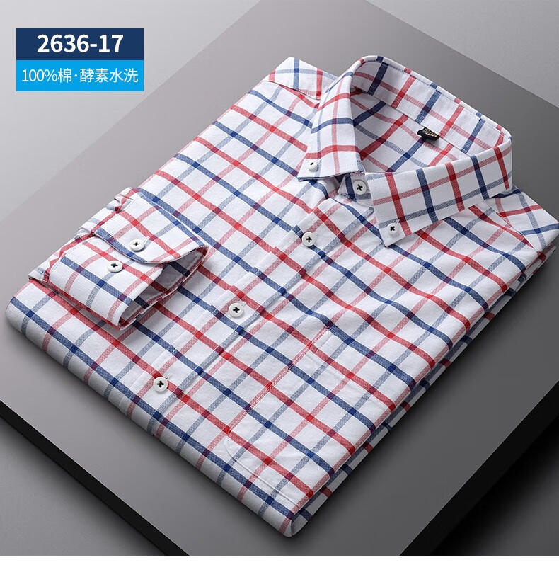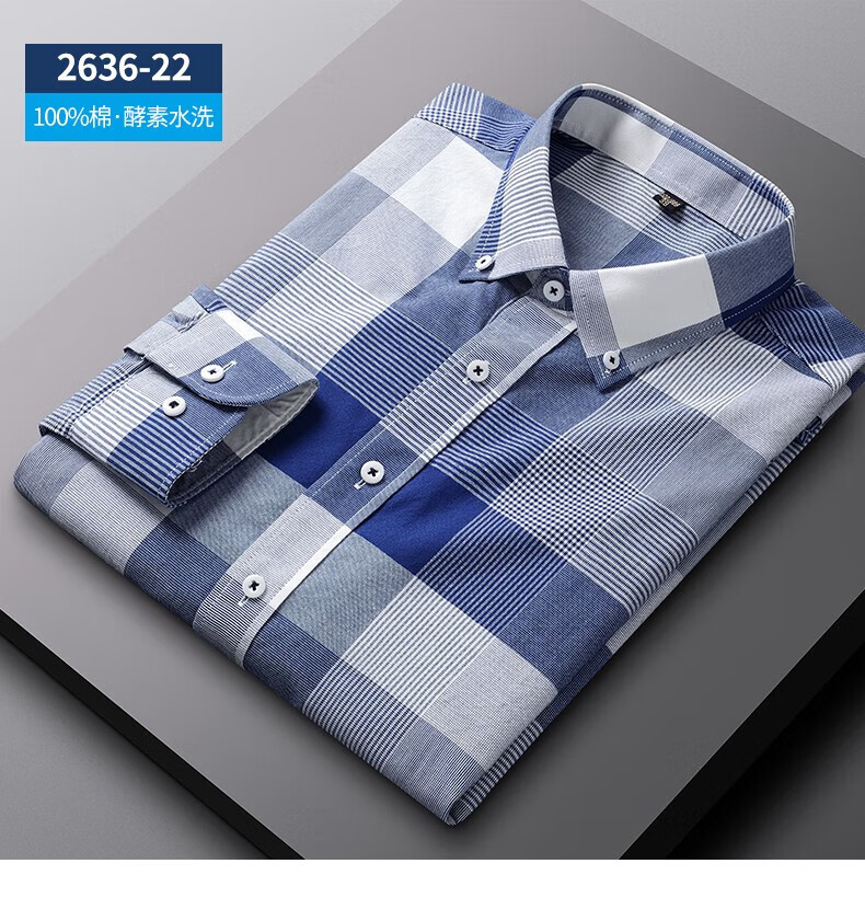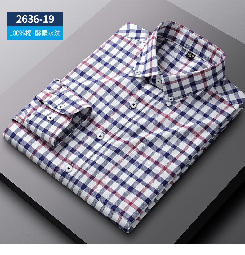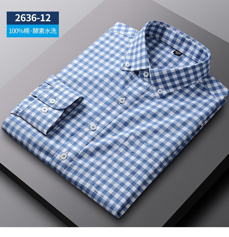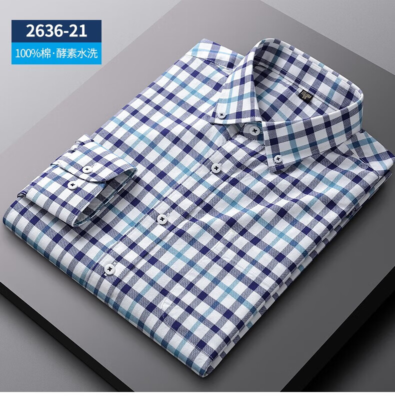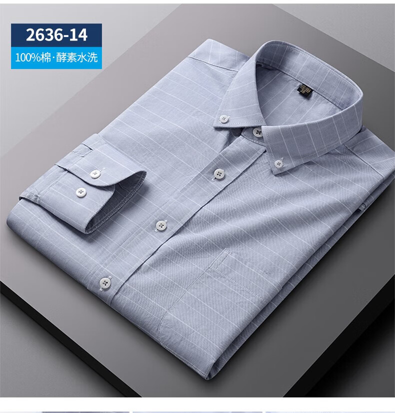 ROMON long-sleeved shirt men's pure cotton plaid Oxford spinning spring and autumn new anti-wrinkle business casual large size cotton shirt 2636-12 Blue grid 40 140 Jin Jin equals 0.5 kg -150 Jin Jin equals 0.5 kg
