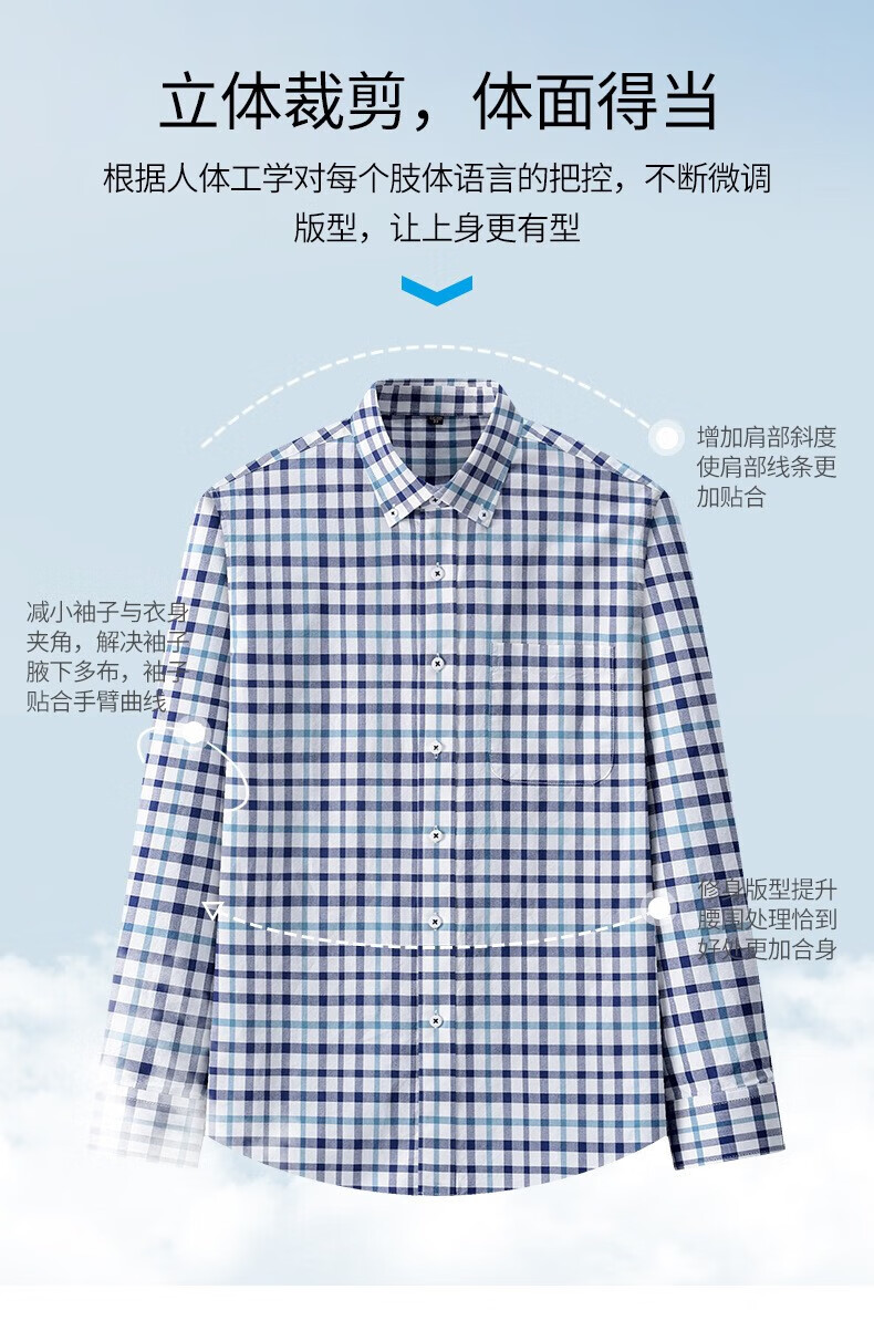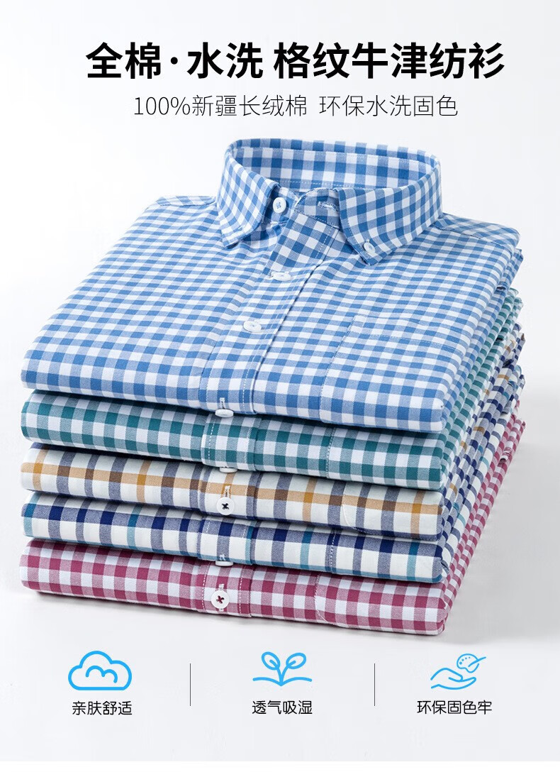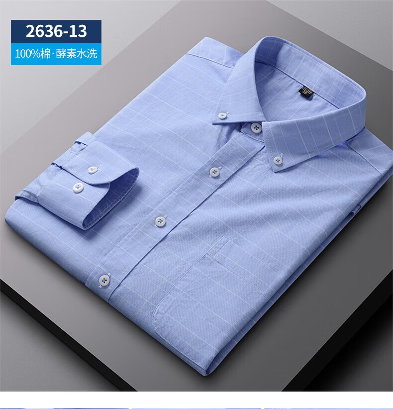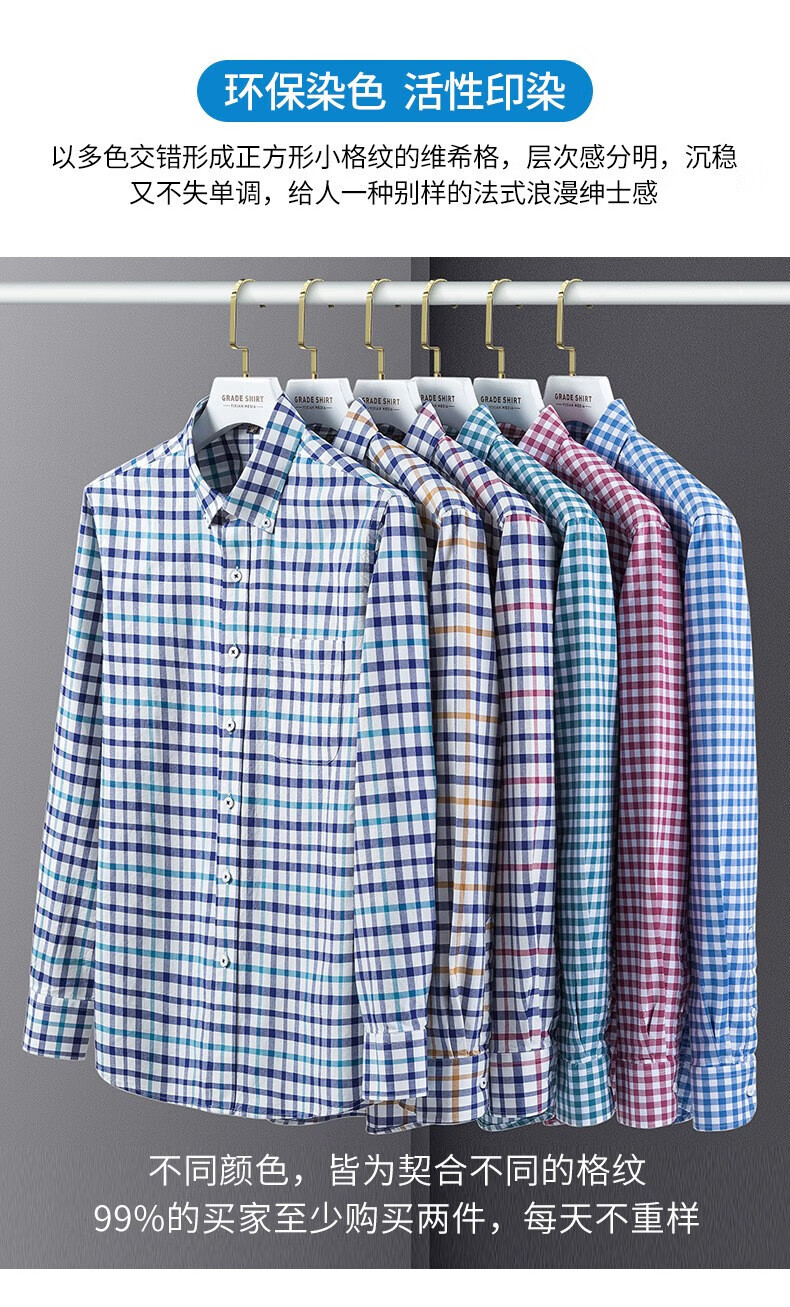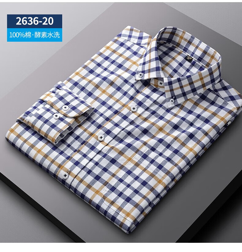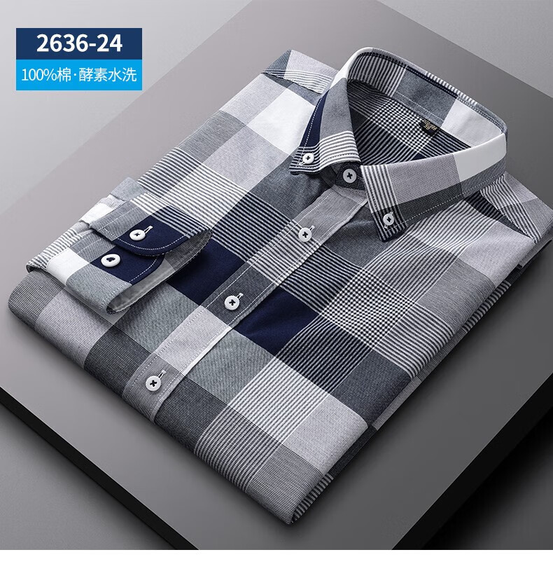 ROMON long-sleeved shirt men's pure cotton plaid Oxford spinning spring and autumn new anti-wrinkle business casual large size cotton shirt 2636-12 Blue grid 40 140 Jin Jin equals 0.5 kg -150 Jin Jin equals 0.5 kg