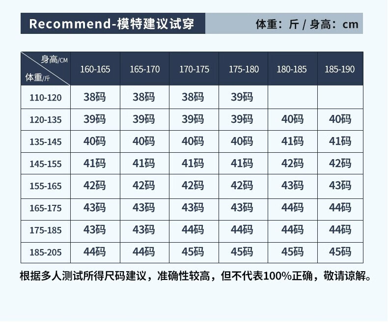 China (cm) 165 / 88-90 170 / 96-98 175 / 108-110 180 / 118-122 185 / 126-130