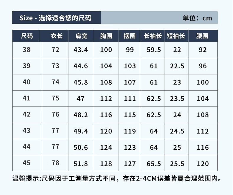 Size (cm) 42 44 46 48 50