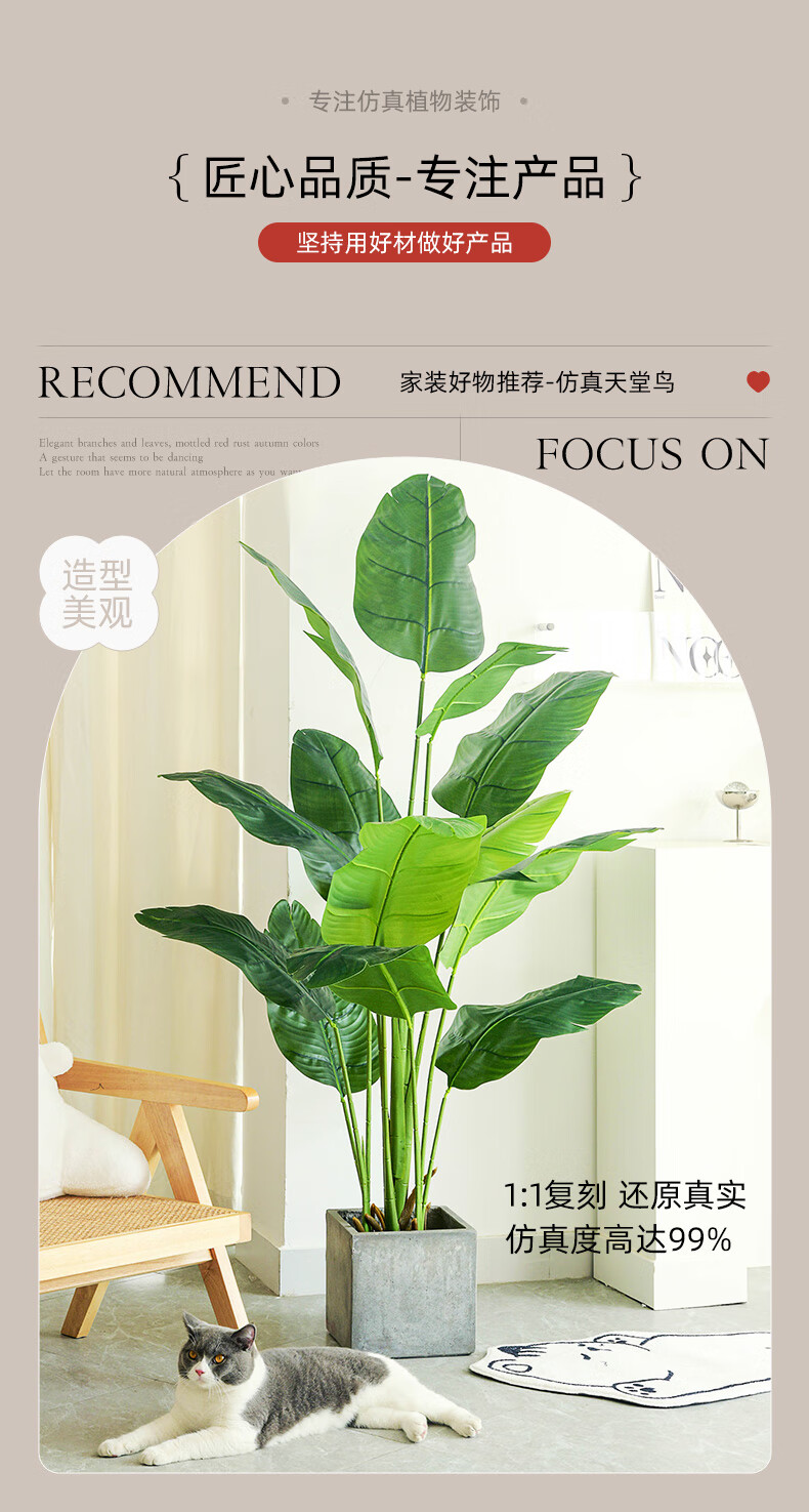 Weiou simulated green plants, high-end light luxury living room, fake plants, indoor potted plants, large decorative ornaments, bird of paradise simulated flowers, 1.4 meters bird of paradise<+white round bottom flowerpot&g
