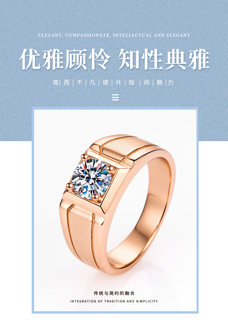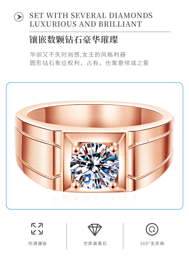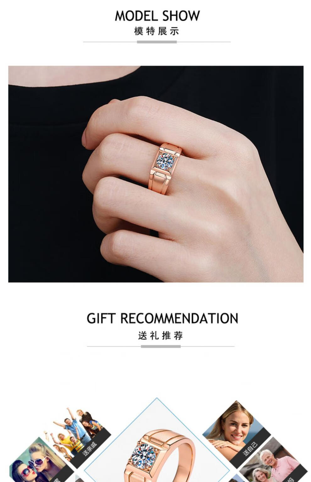 DL 199818k rose gold ring men's moissanite diamond 50 points one carat color rose gold 50 points frosted men's ring
