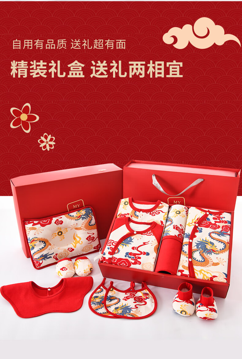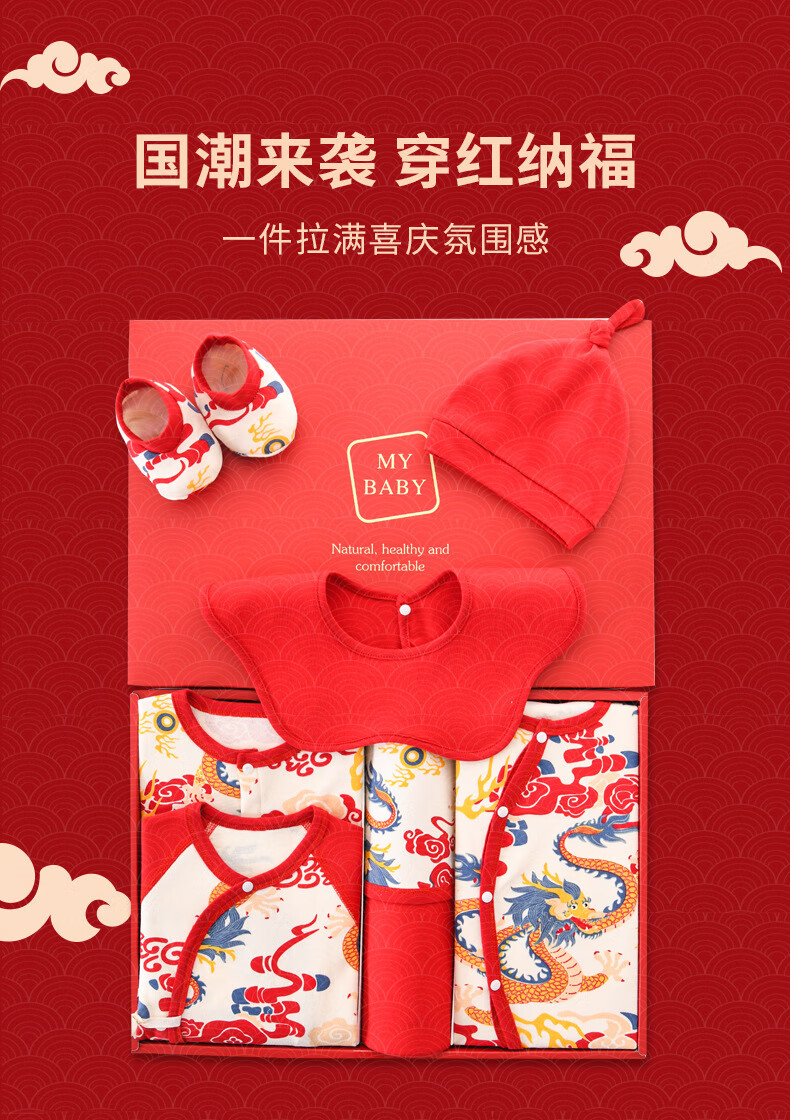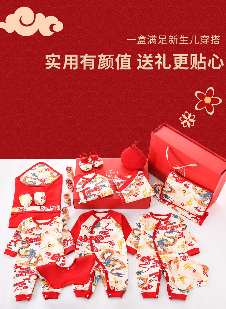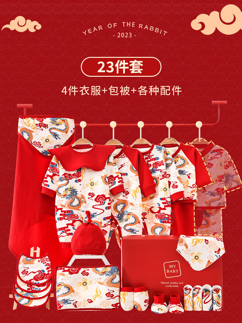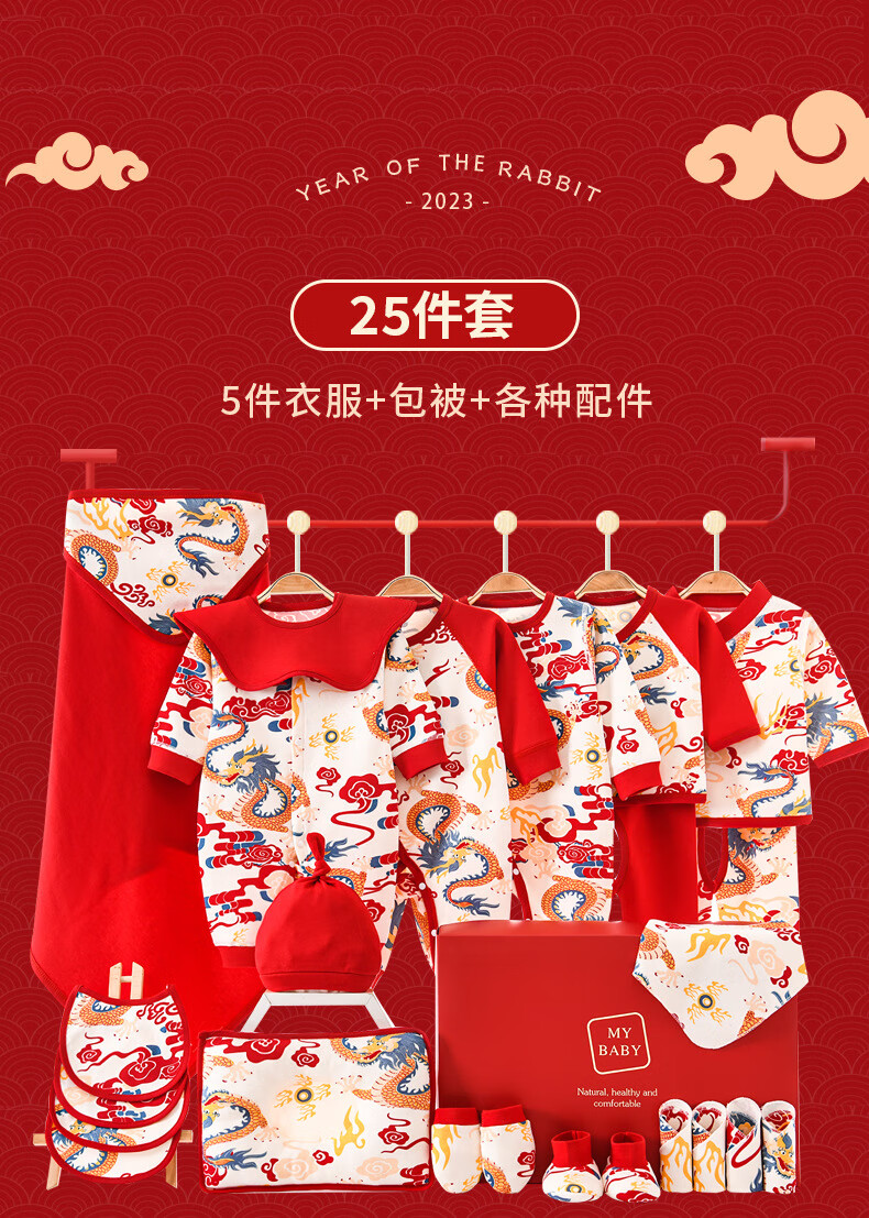 G.duck Year of the Dragon Baby Clothes 2025 New Dragon Baby Newborn Newborn Baby Full Moon Gift Box Set National Style 25-piece Set-Warm Style 66cm