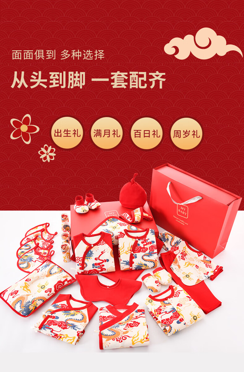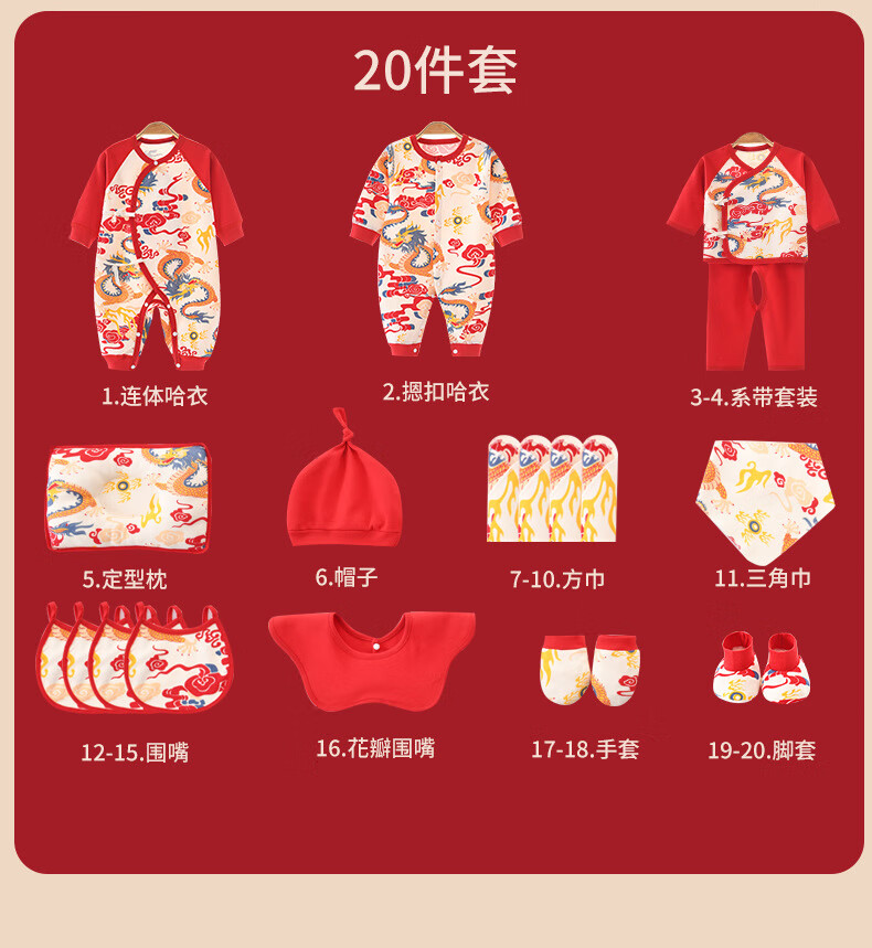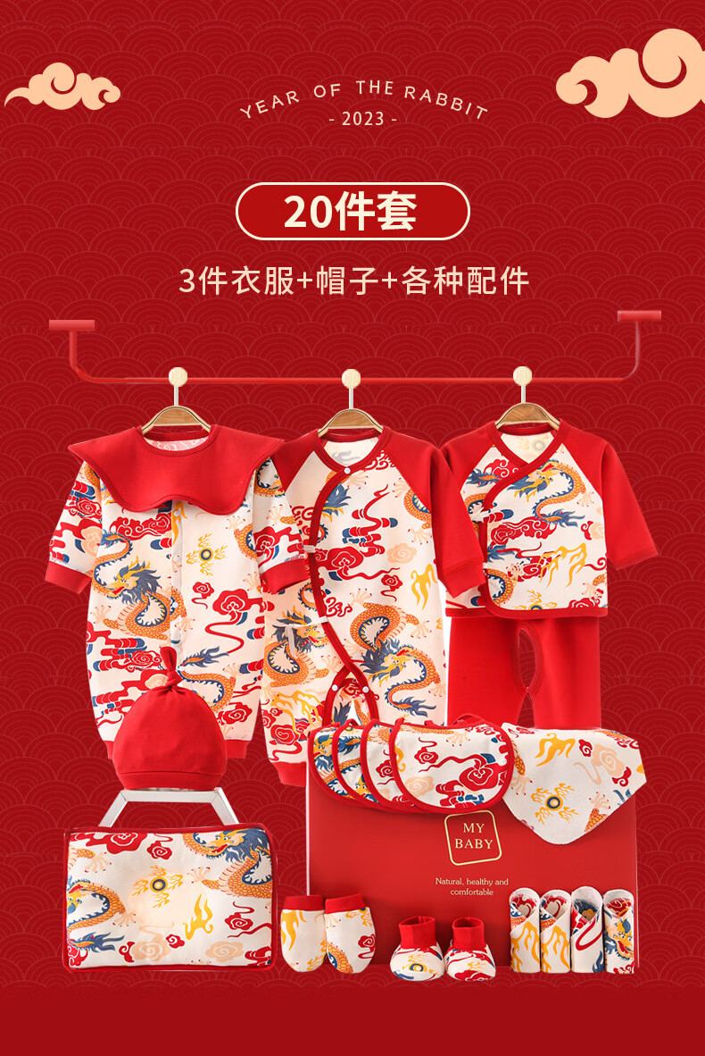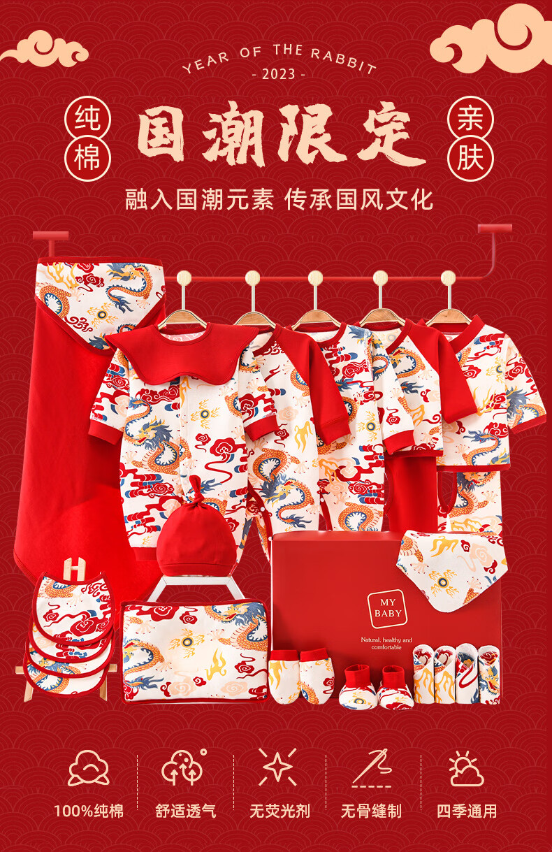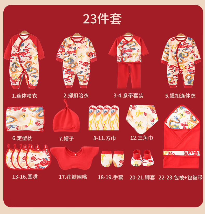 G.duck Year of the Dragon Baby Clothes 2025 New Dragon Baby Newborn Newborn Baby Full Moon Gift Box Set National Style 25-piece Set-Warm Style 66cm