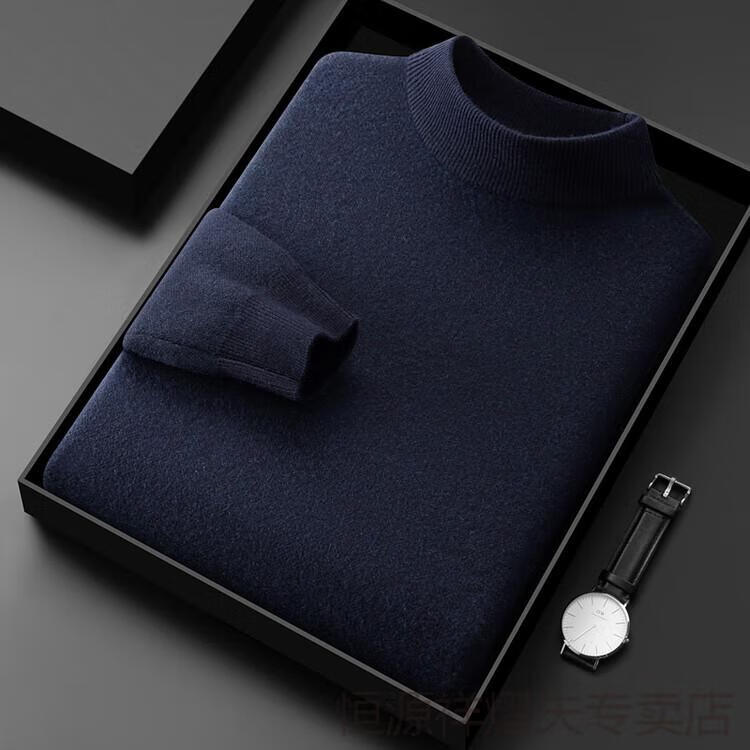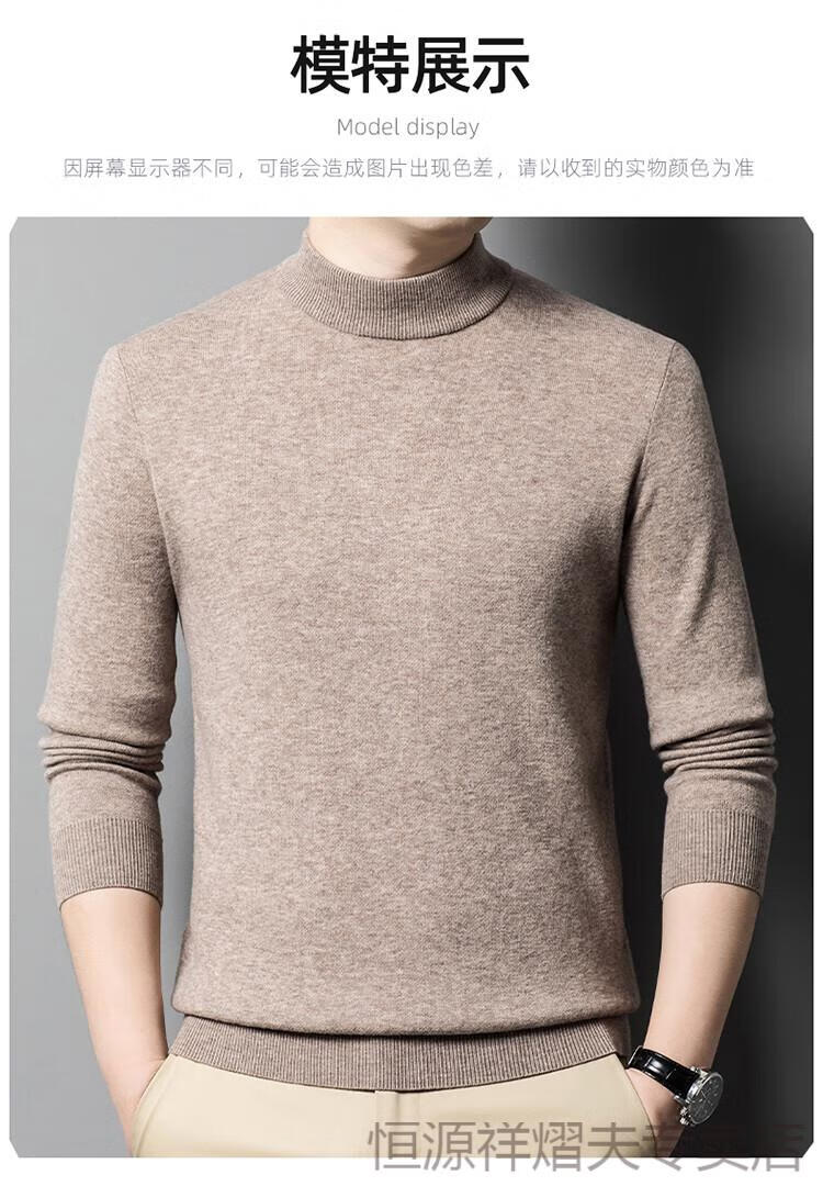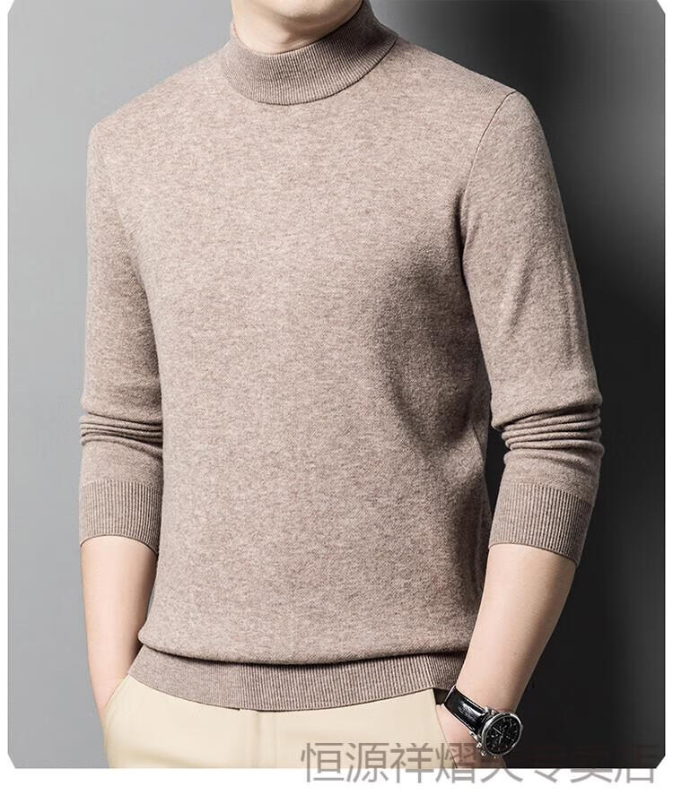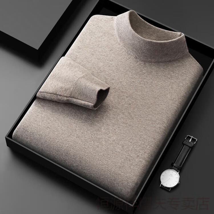 Hengyuanxiang premium cashmere sweater for men 100% pure cashmere half turtleneck solid color casual thickened warm middle-aged knitted bottoming sweater camel gift box packaging