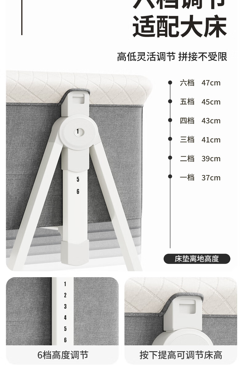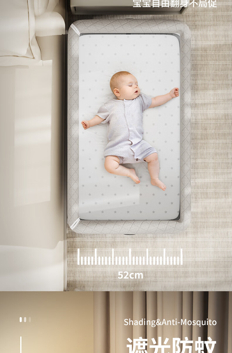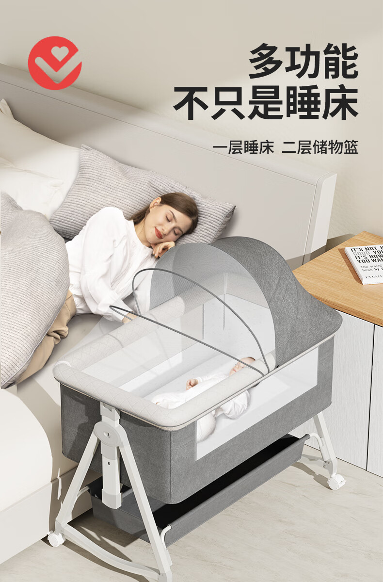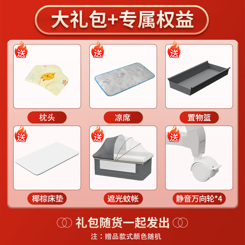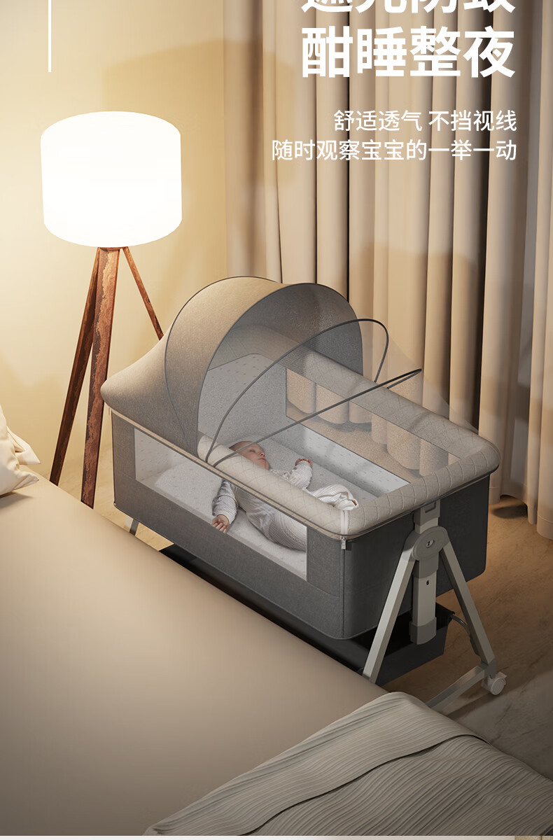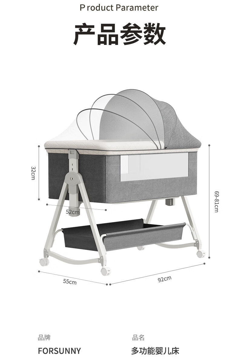 Fuxingle FORSUNNY baby crib foldable mobile splicing cradle baby multi-functional portable small-sized newborn cradle cradle six-level lift + coconut palm mattress + mosquito net + universal wheel + mat headrest baby supplies to sleep artifact mother and baby must-have