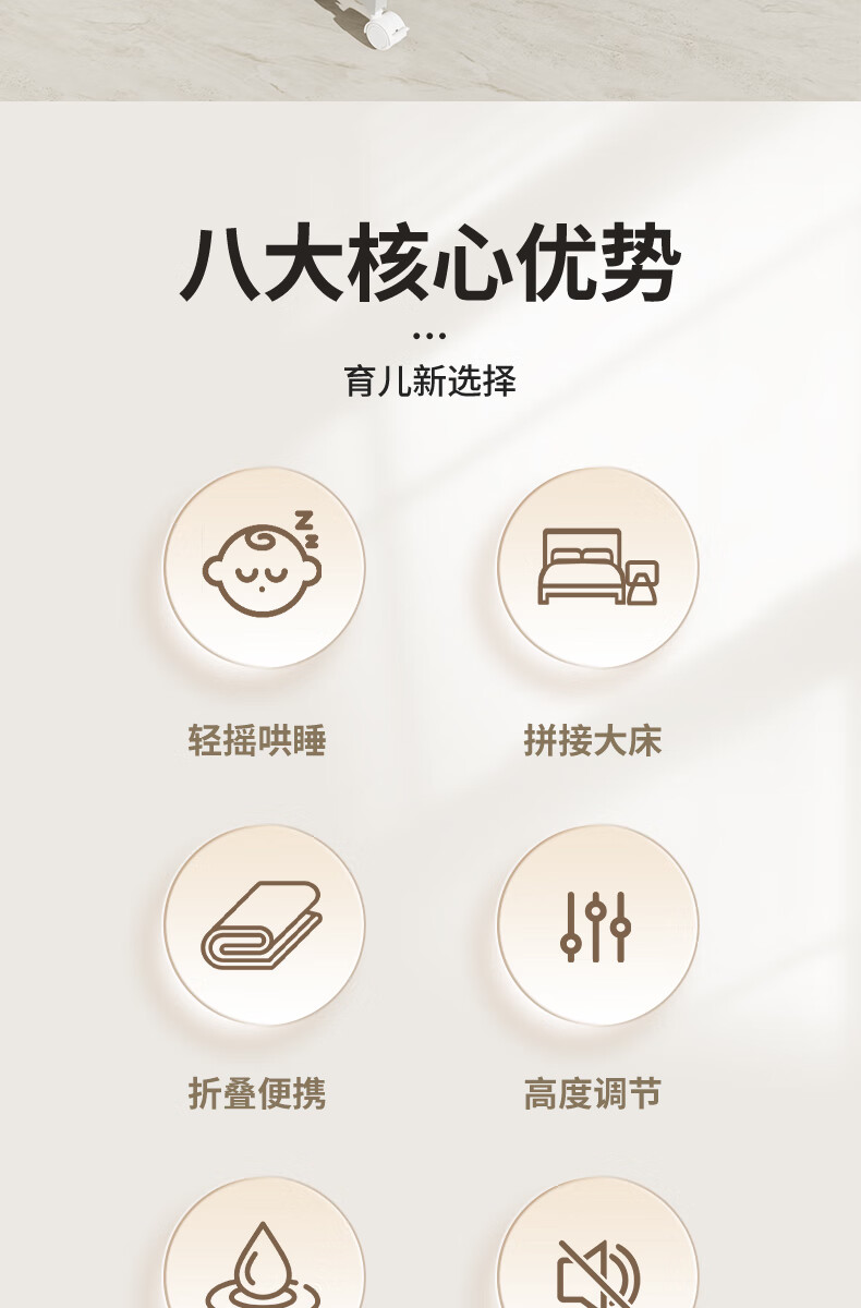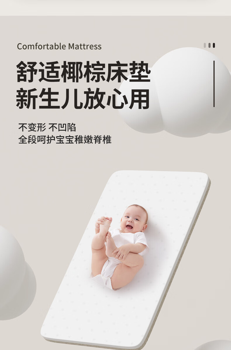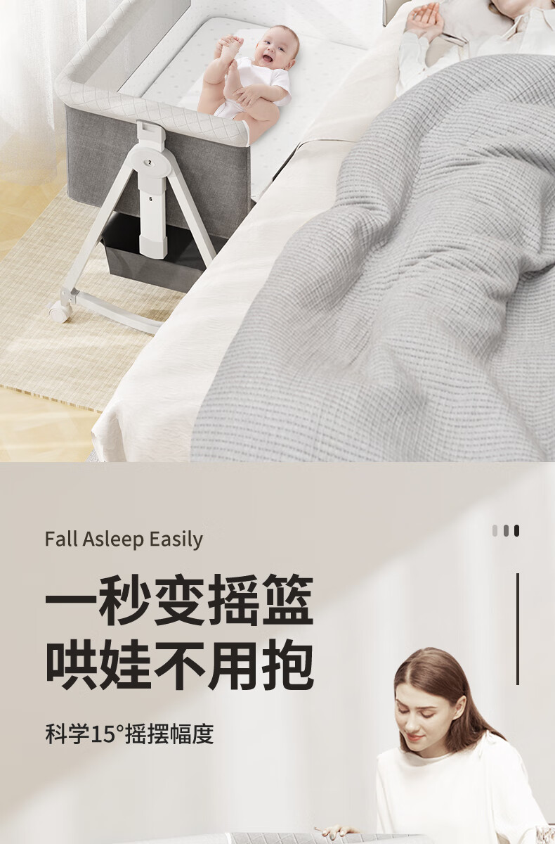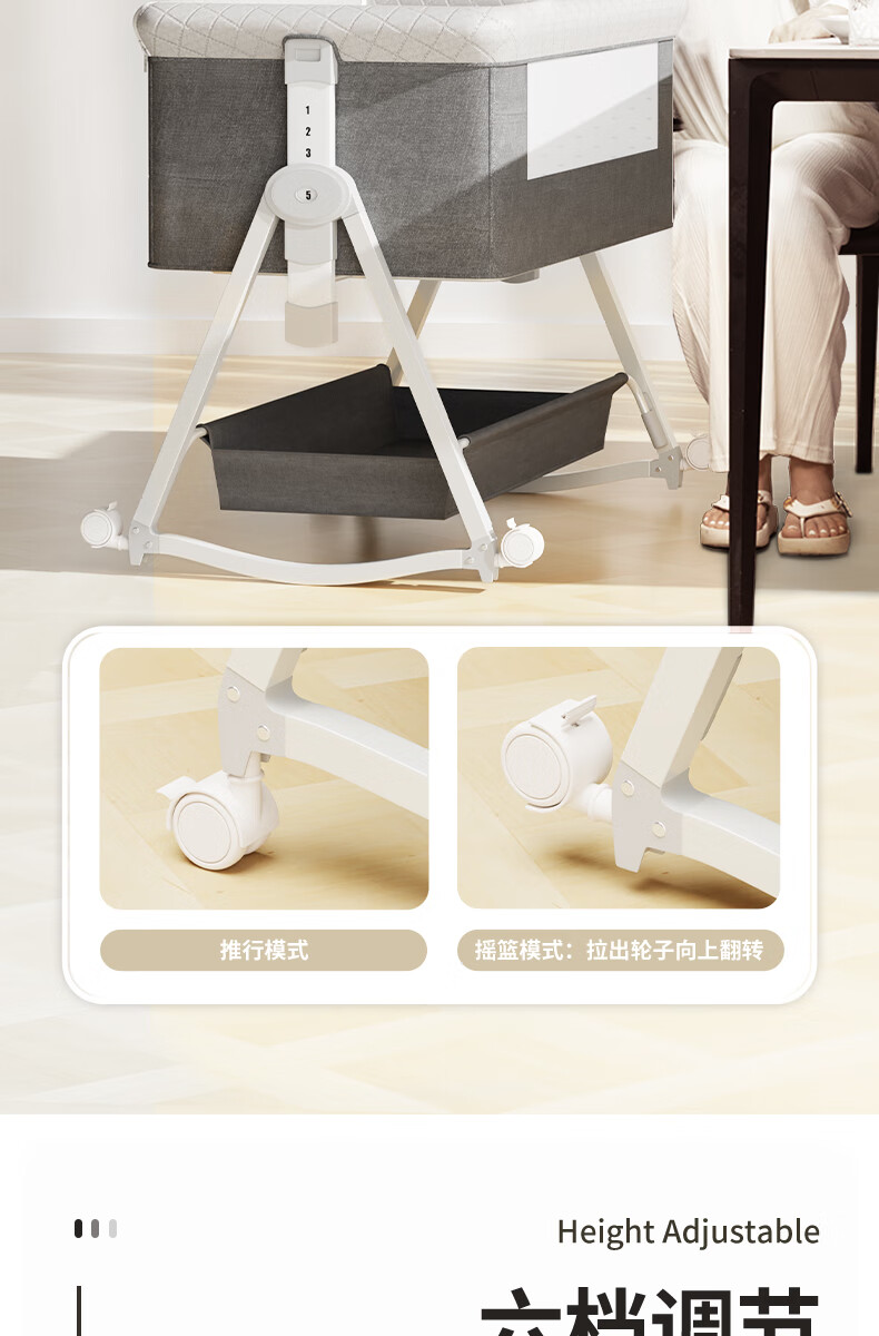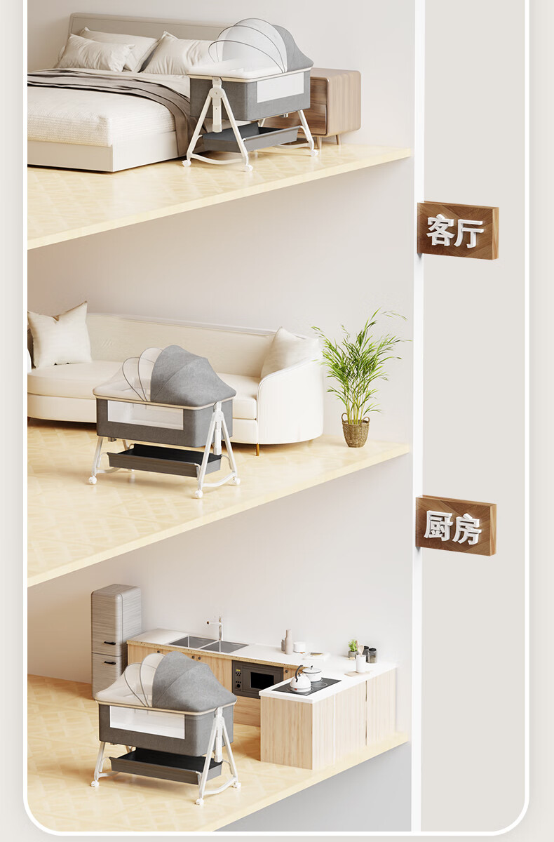 Fuxingle FORSUNNY baby crib foldable mobile splicing cradle baby multi-functional portable small-sized newborn cradle cradle six-level lift + coconut palm mattress + mosquito net + universal wheel + mat headrest baby supplies to sleep artifact mother and baby must-have