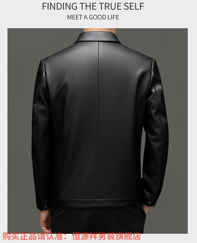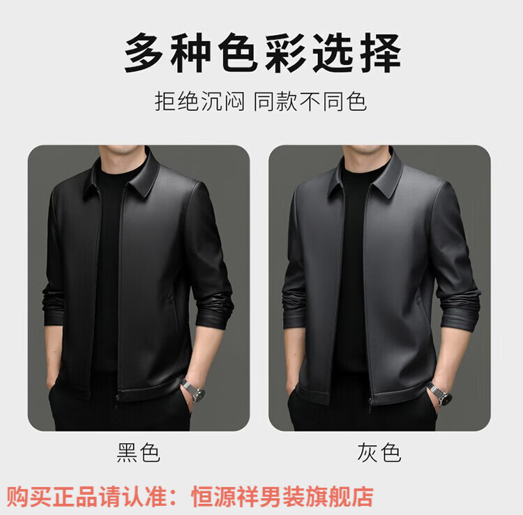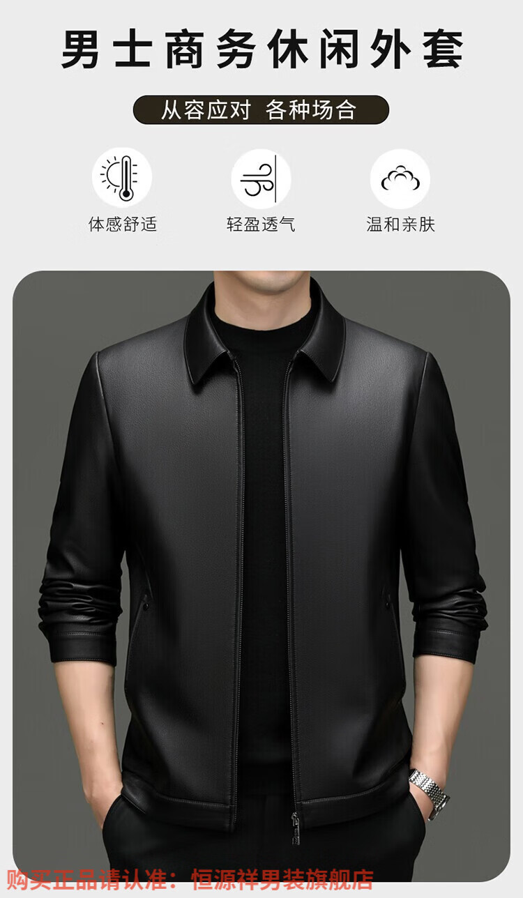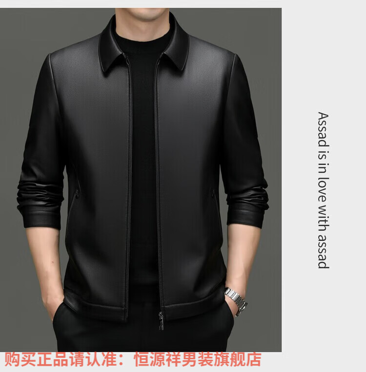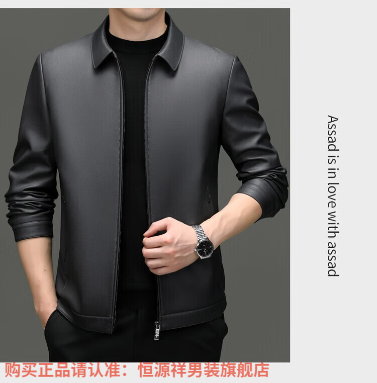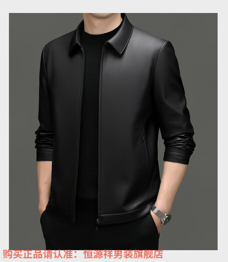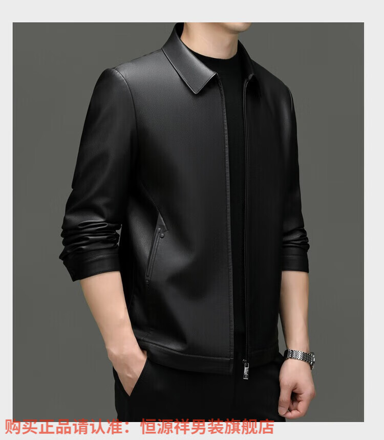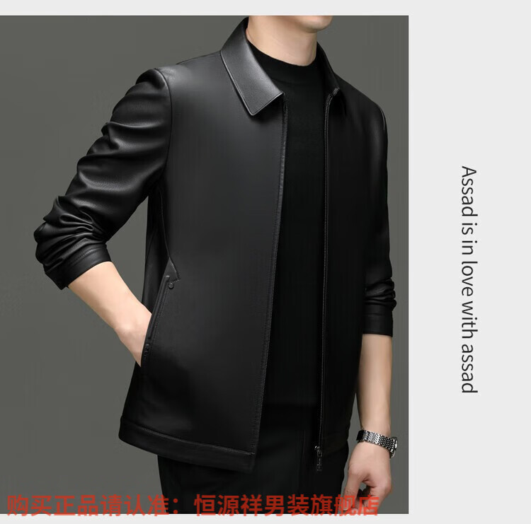 Hengyuanxiang Men's Leather Jacket Autumn and Winter Young and Middle-aged Lapel Matte Soft Leather Men's Motorcycle PU Casual Handsome Leather Jacket Black XL 175