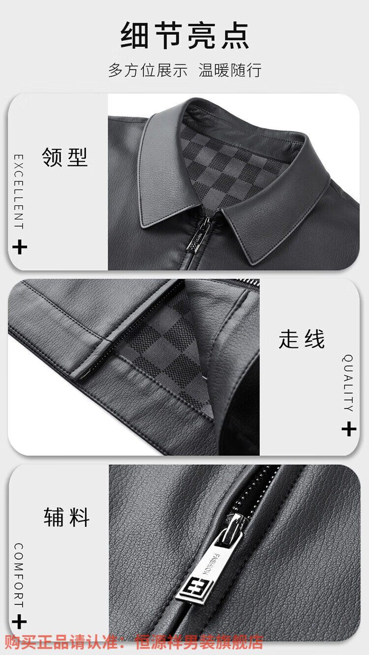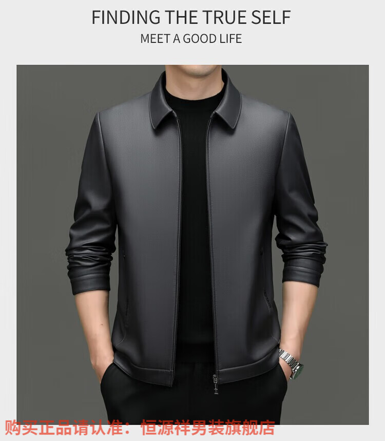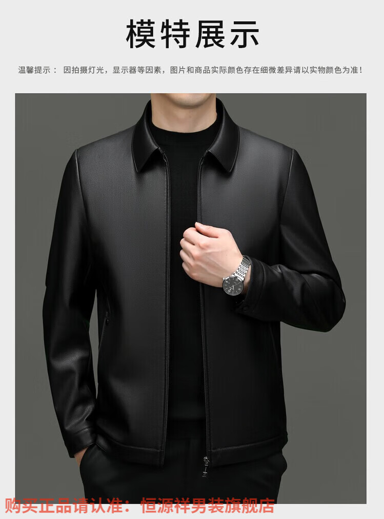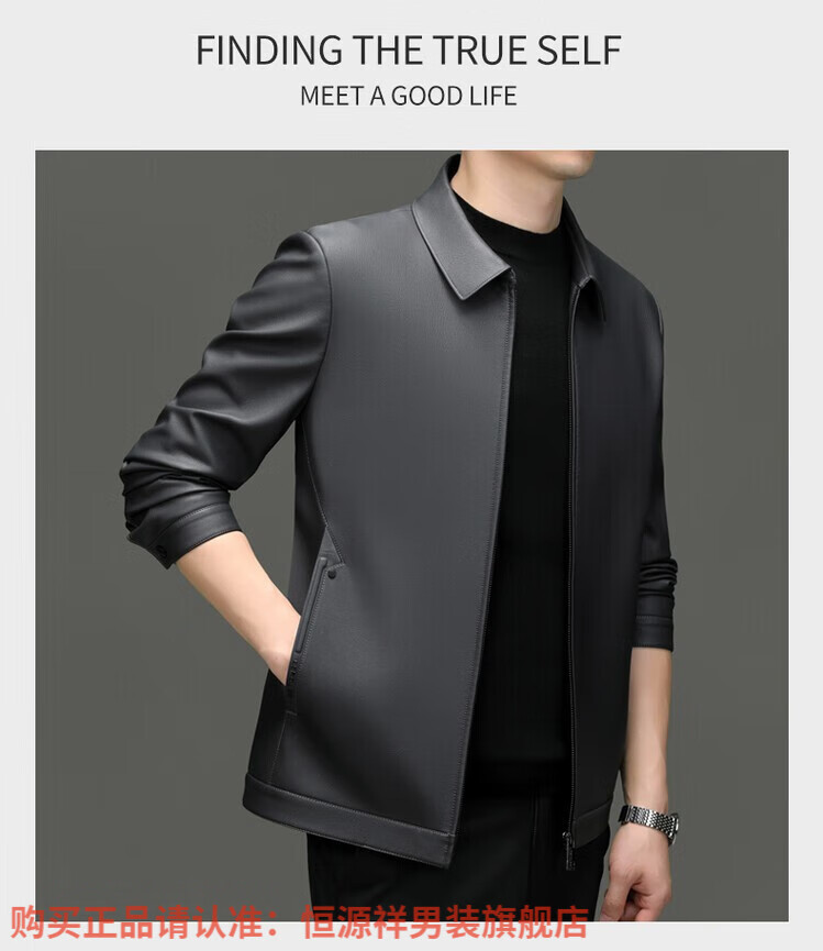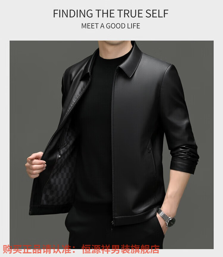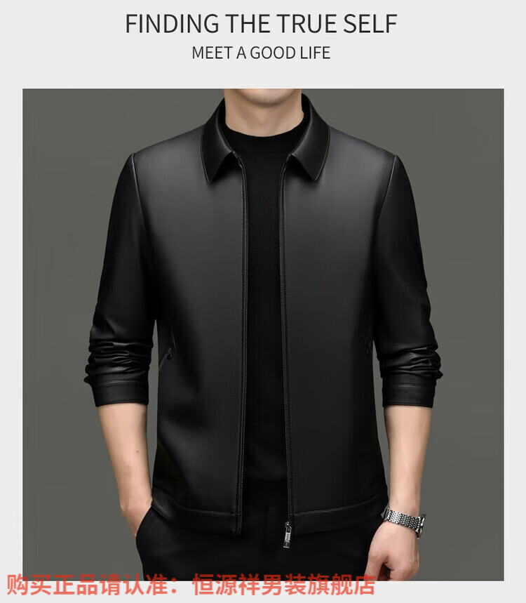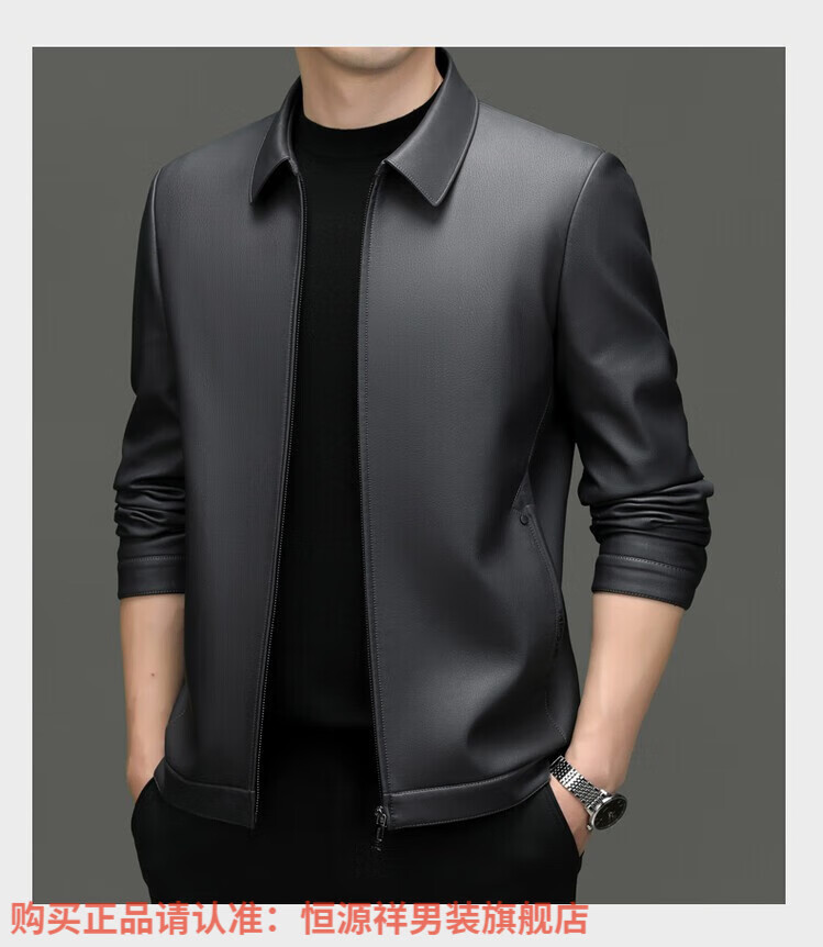 Hengyuanxiang Men's Leather Jacket Autumn and Winter Young and Middle-aged Lapel Matte Soft Leather Men's Motorcycle PU Casual Handsome Leather Jacket Black XL 175