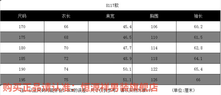 China (cm) 165 / 88-90 170 / 96-98 175 / 108-110 180 / 118-122 185 / 126-130