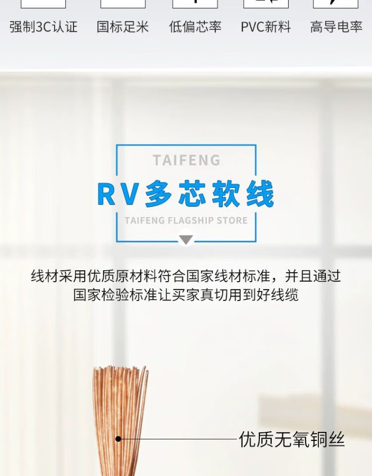 RV soft wire copper core wire 0.75/1/1.5/4/6 square wire multi-stranded copper wire BVR wire connection line