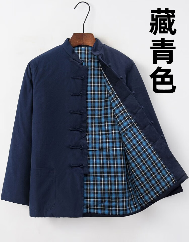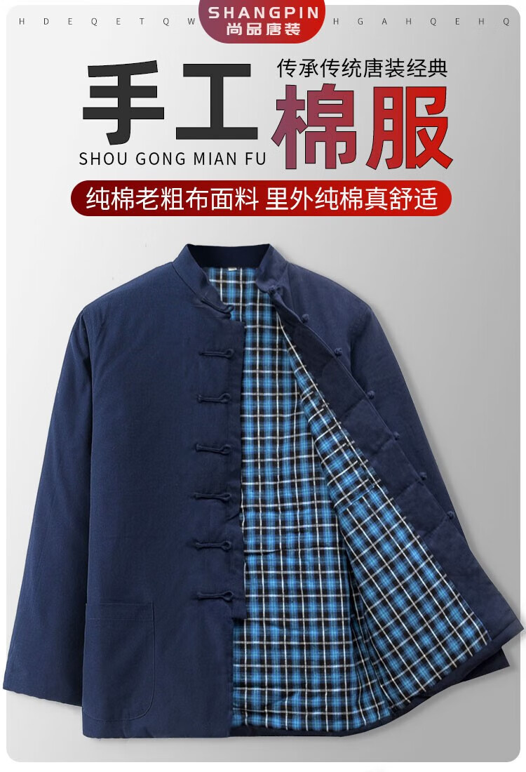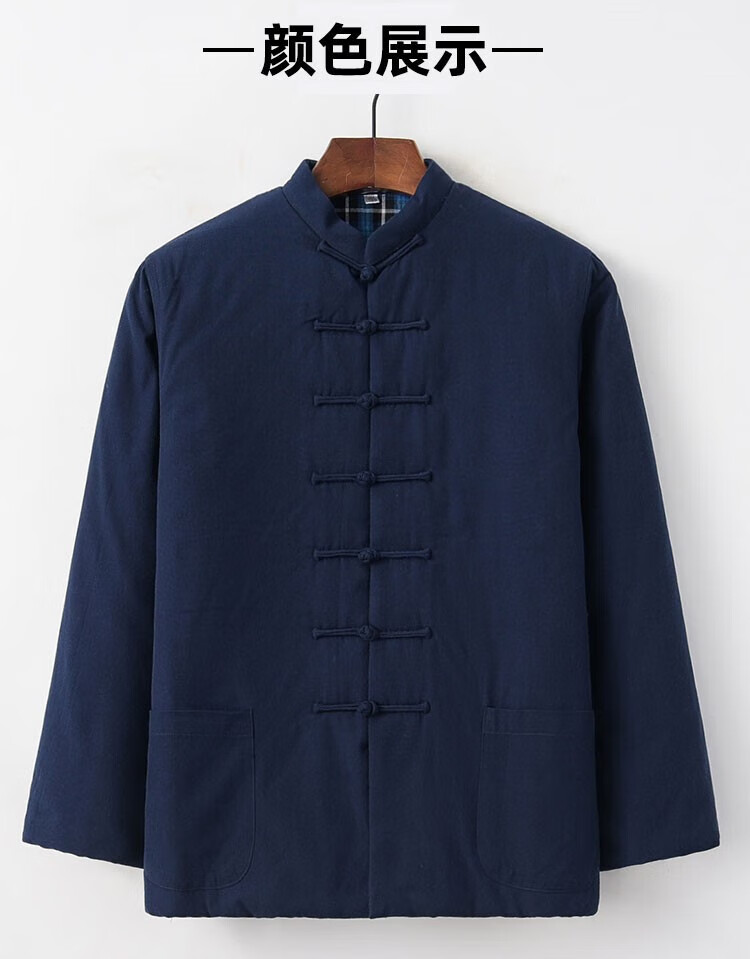 ROMON Tang Suit Men's Middle-aged and Elderly Winter Thickened Dad's Cotton-padded Jacket Chinese-style Cotton Padded Jacket Grandpa's Outfit Navy Blue 180/2XL145160Jin Jin equals 0.5 kg