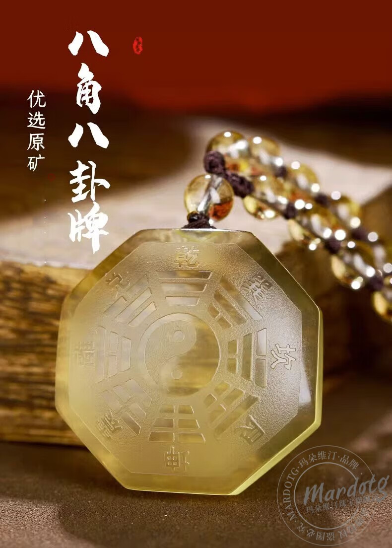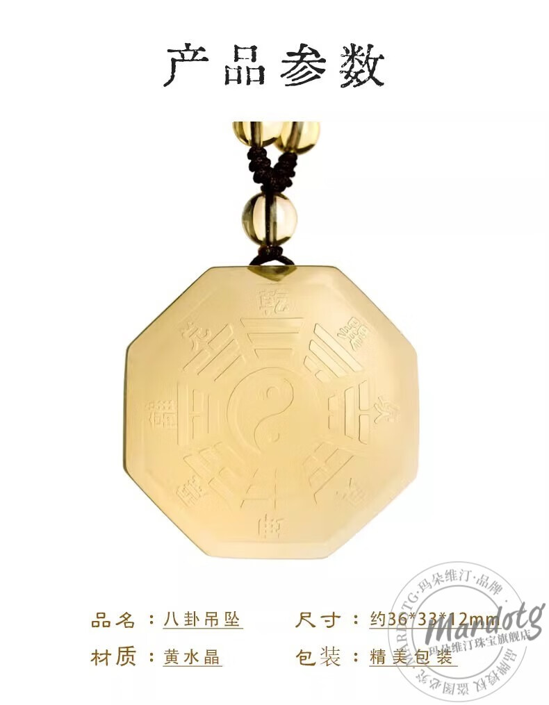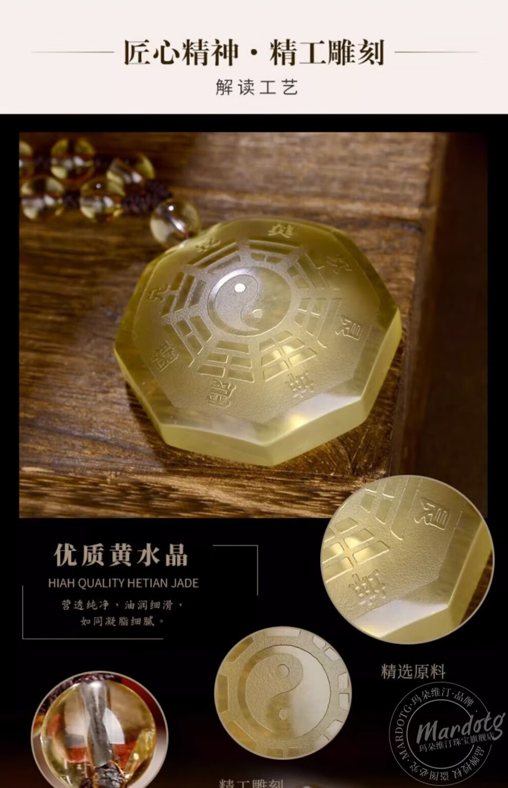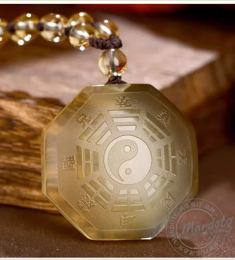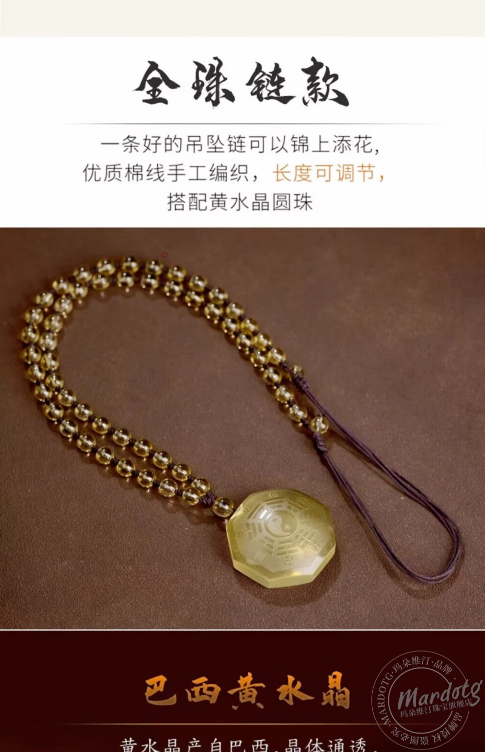 MARDOTG Citrine Yin Yang Five Elements Bagua Blessing Pendant Bagua Brand Pendant Taoist Jewelry Amulet Necklace for Men and Women Bagua Pendant (With Bead Chain)