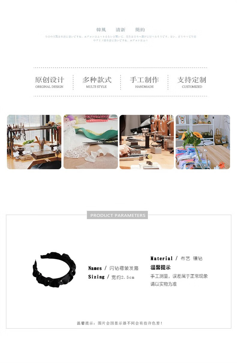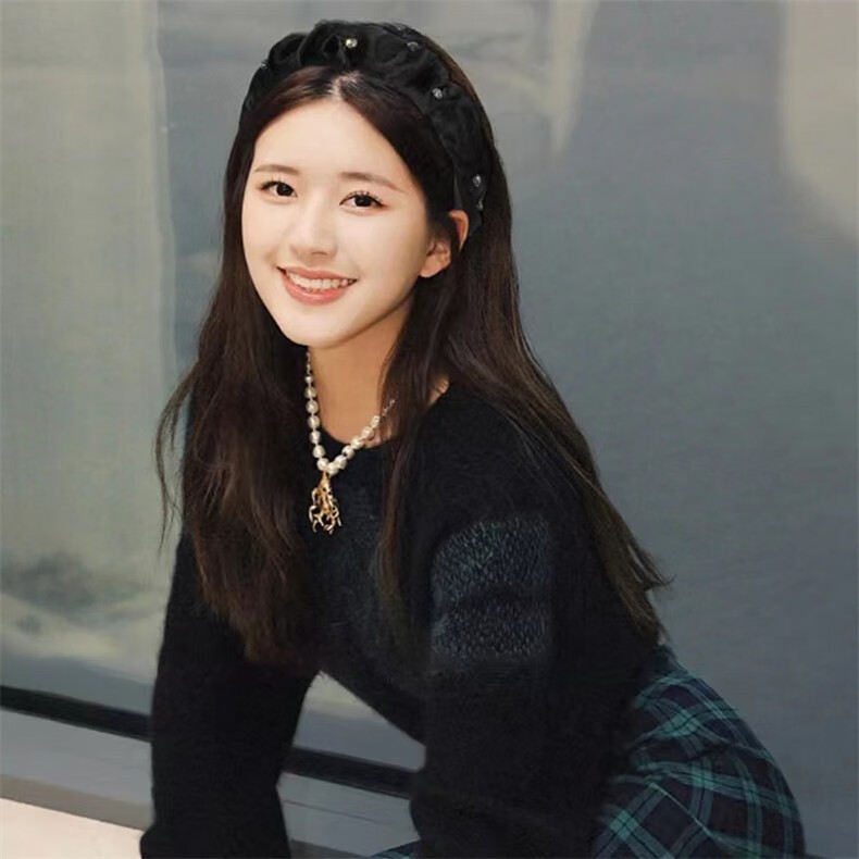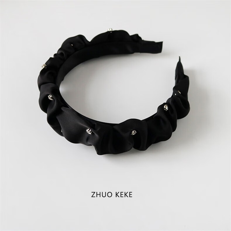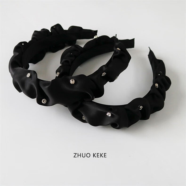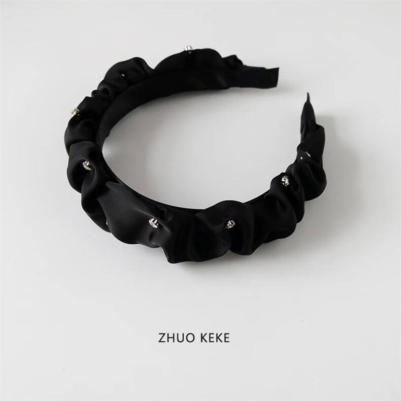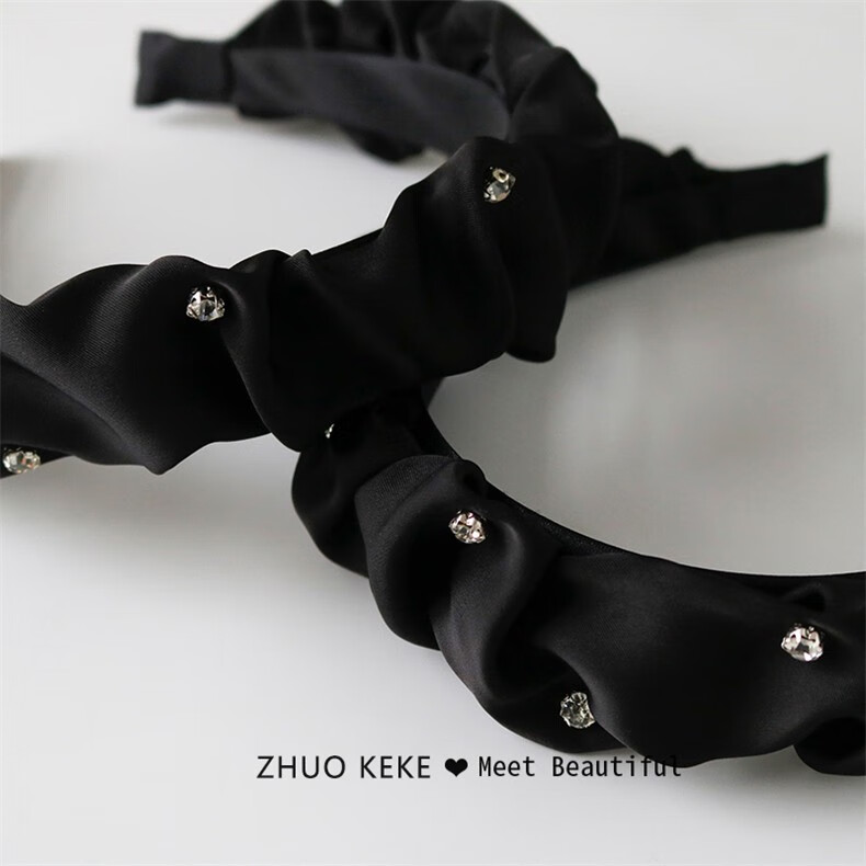 Zhuo Keke black headband pleated high skull sparkling diamond French Zhao Lusi same style hair bundle retro face wash headband internet celebrity hairpin black rhinestone pleated headband