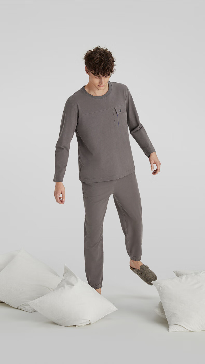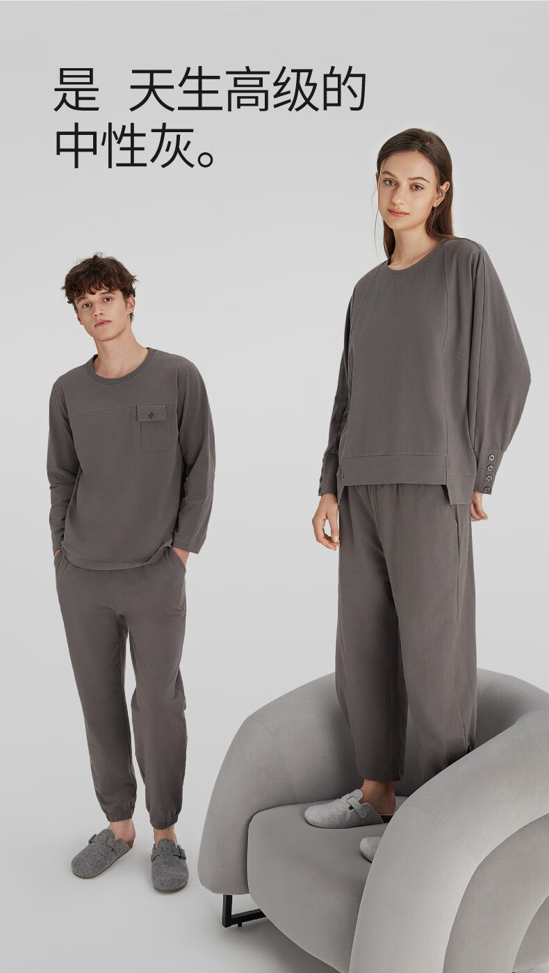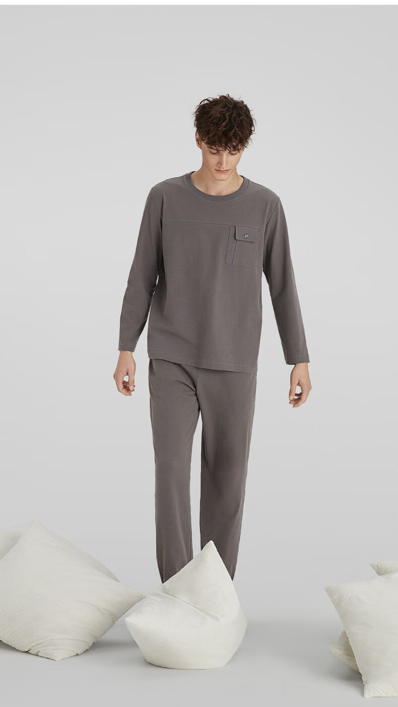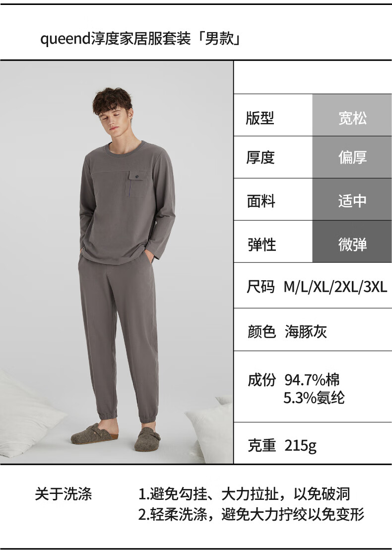 Chundu soft new couple pajamas autumn women's long-sleeved thickened brushed velvet men's home wear autumn and winter suit dolphin gray (men's style) 2XL