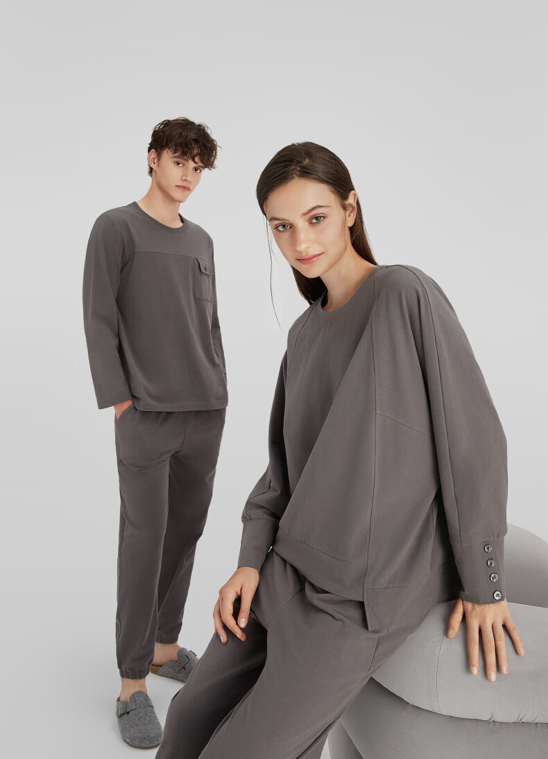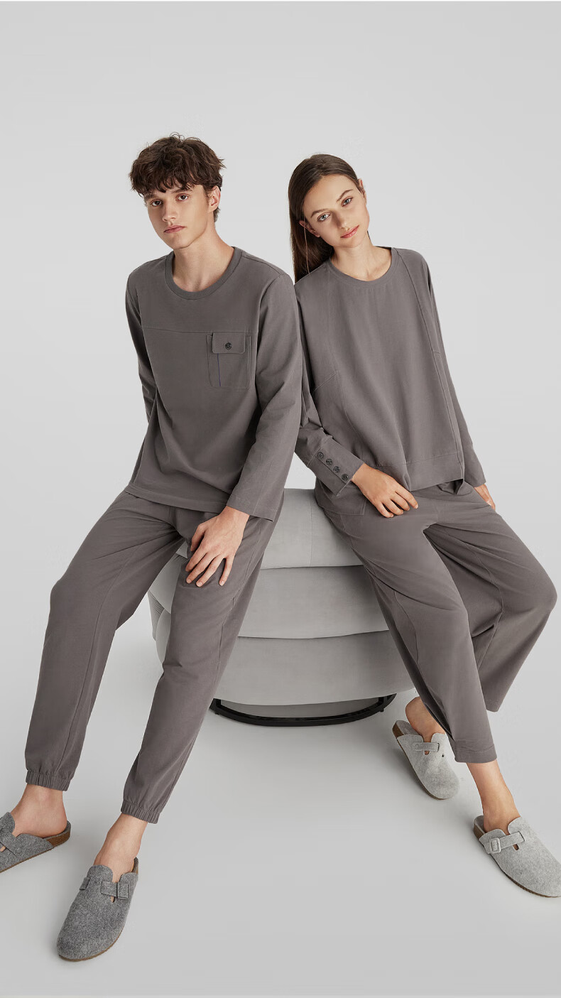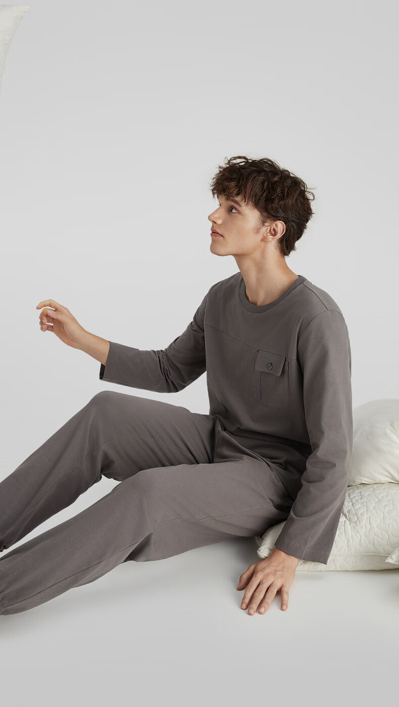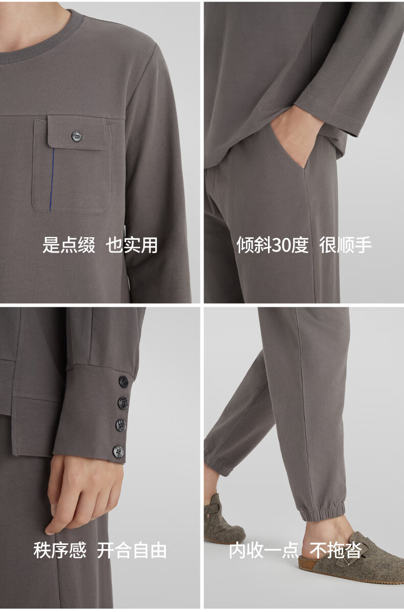 Chundu soft new couple pajamas autumn women's long-sleeved thickened brushed velvet men's home wear autumn and winter suit dolphin gray (men's style) 2XL