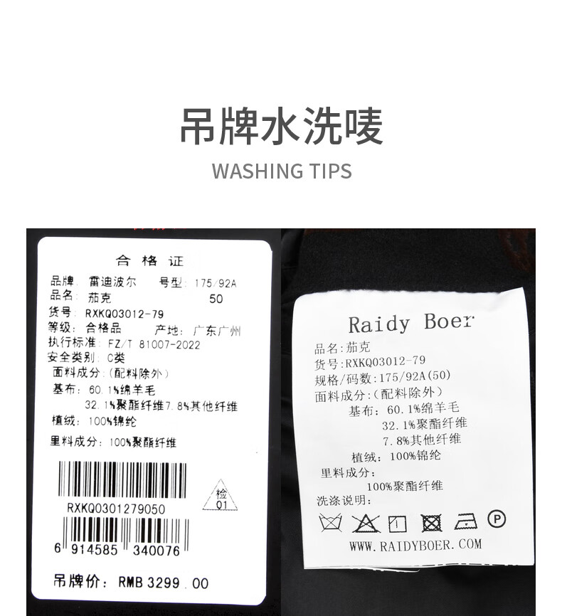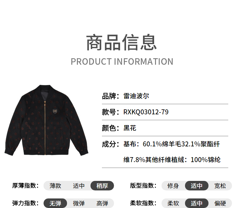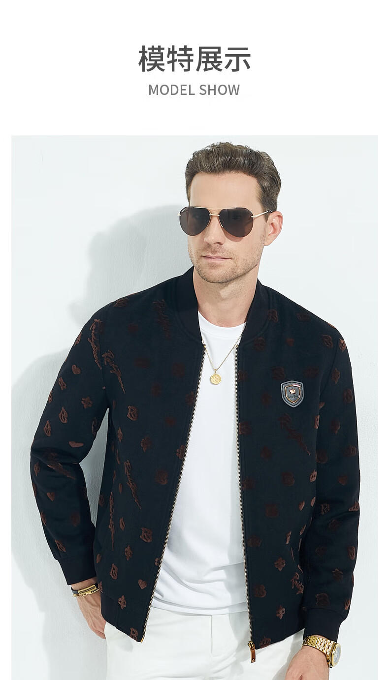 Raidy Boer/Raidi Boer woolen men's autumn and winter flocked presbyopic jacket 3012-79 black flower 175/50/L