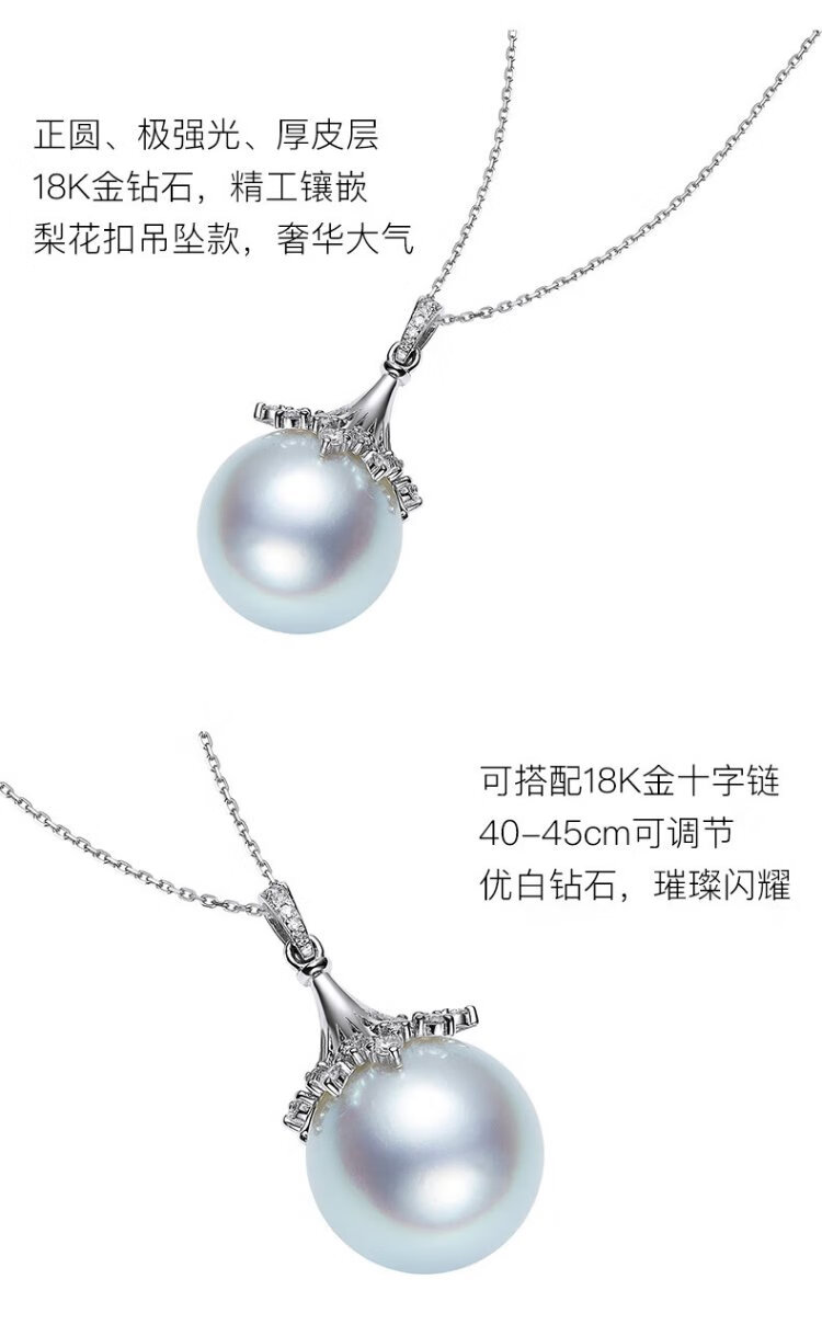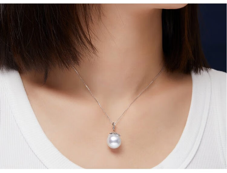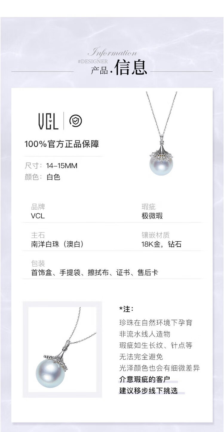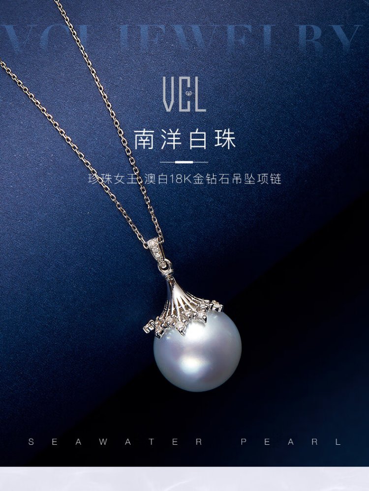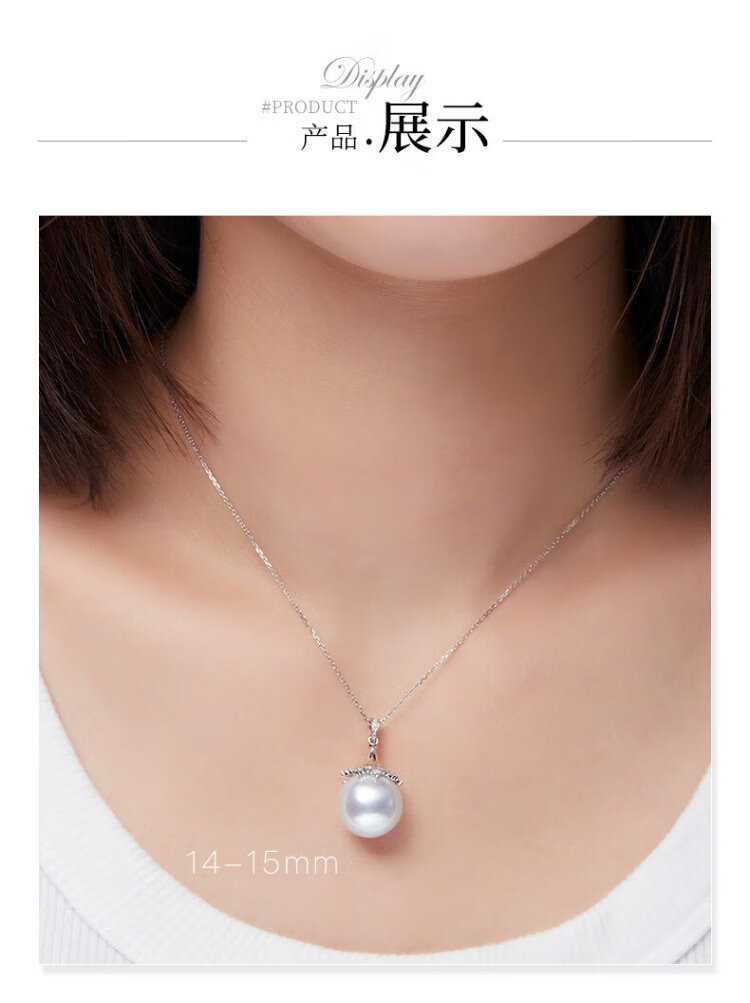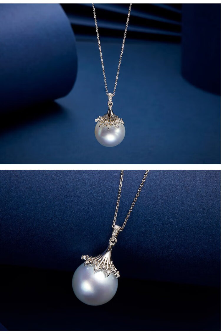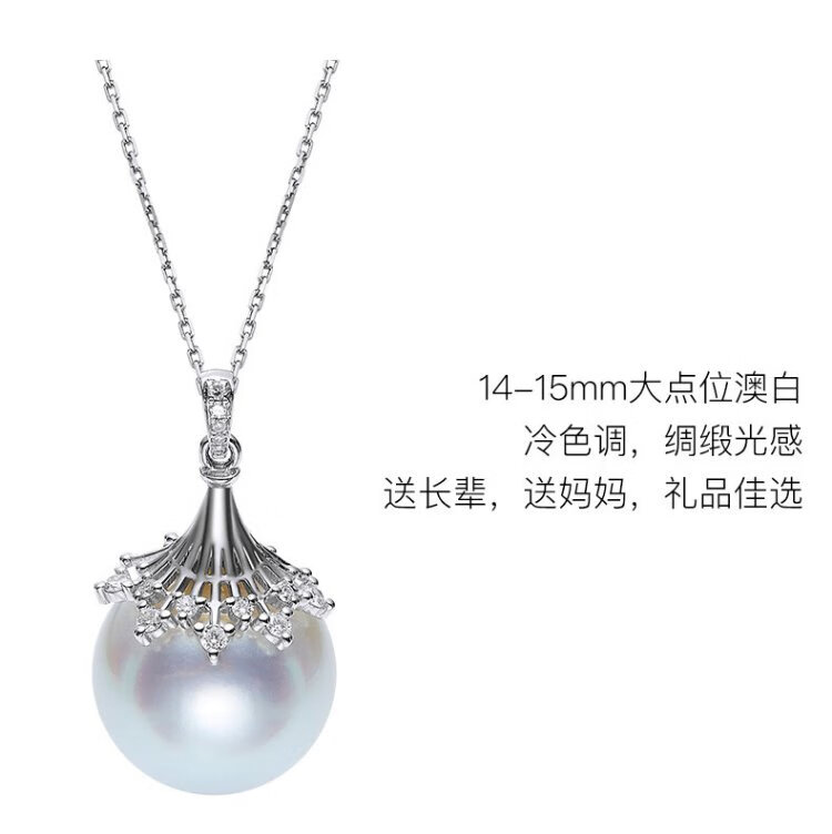 VCL Natural South Sea White Pearl Silver Cold Light Australian White Seawater Pearl 18K Gold Diamond Pendant for Women Gift for Mom and Elders 14-15mm Pendant Does Not Include Chain