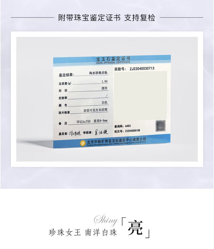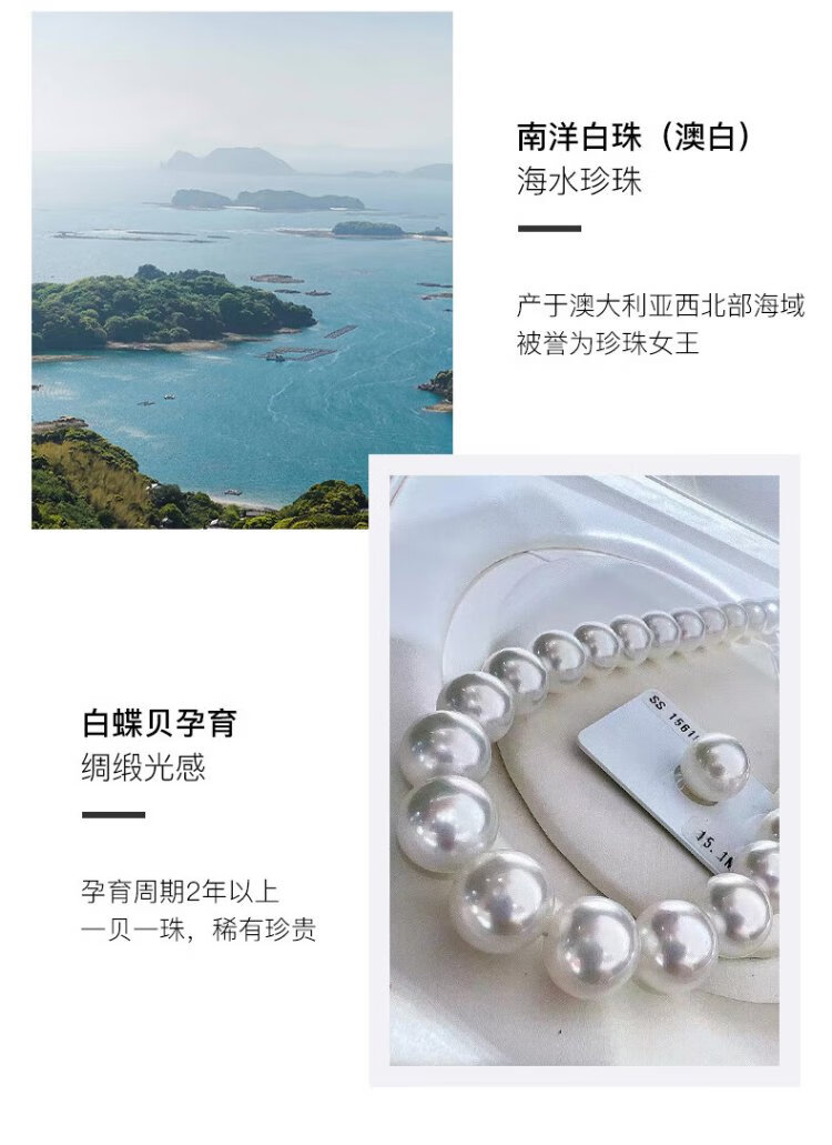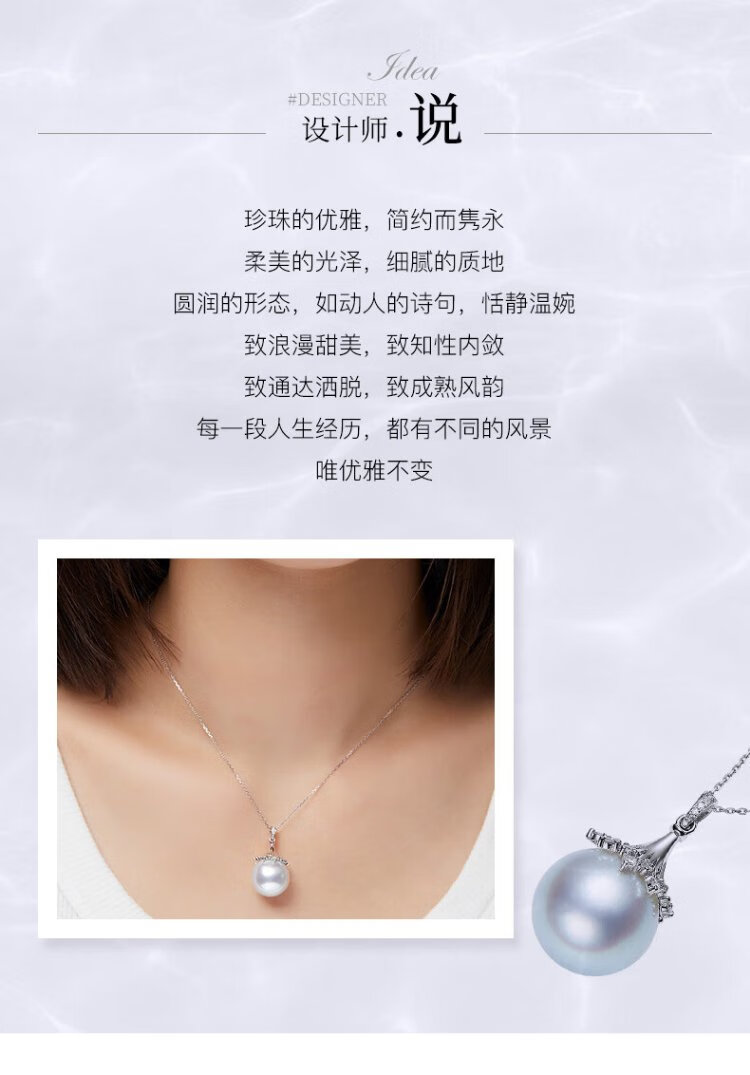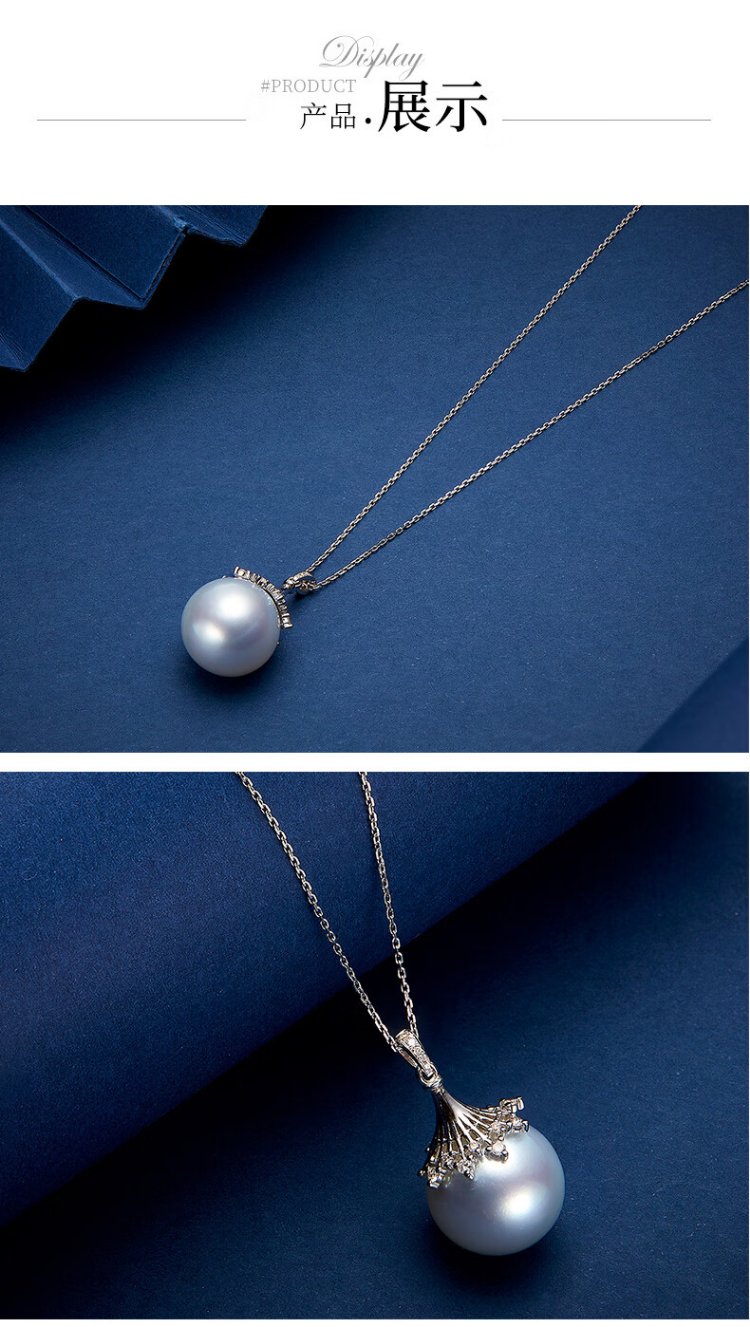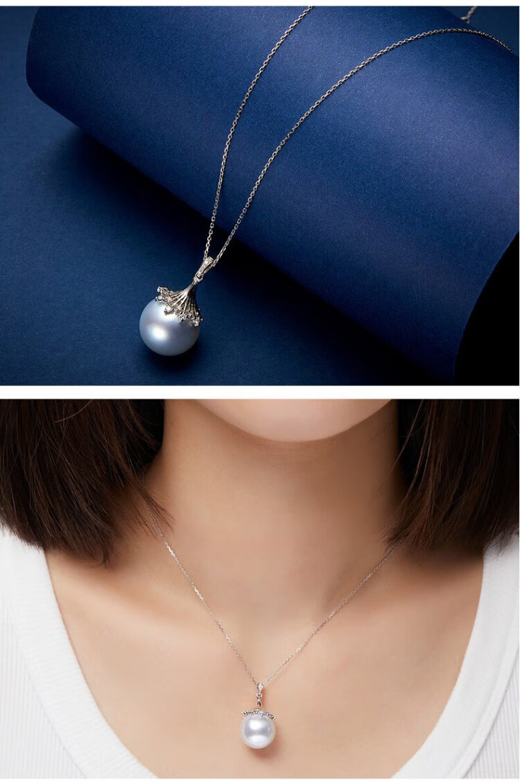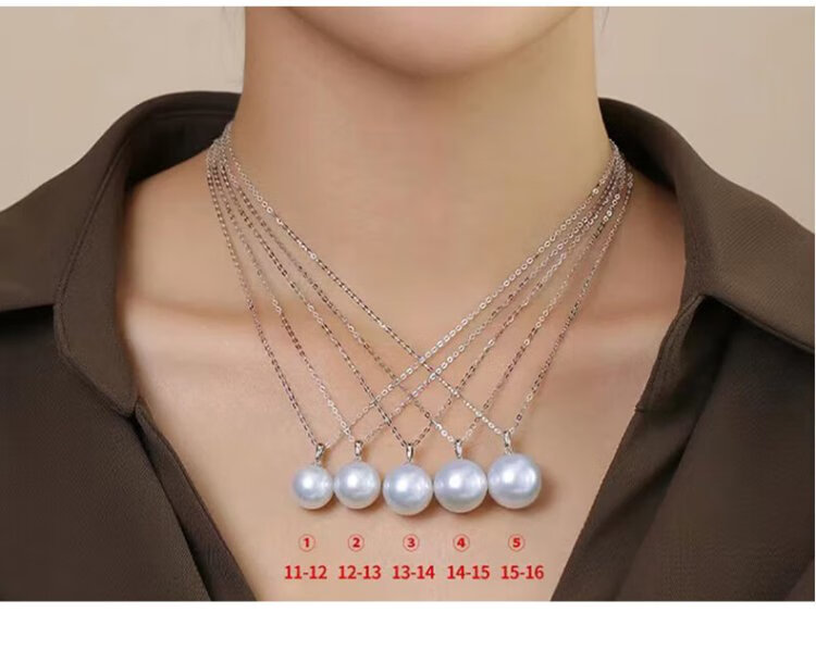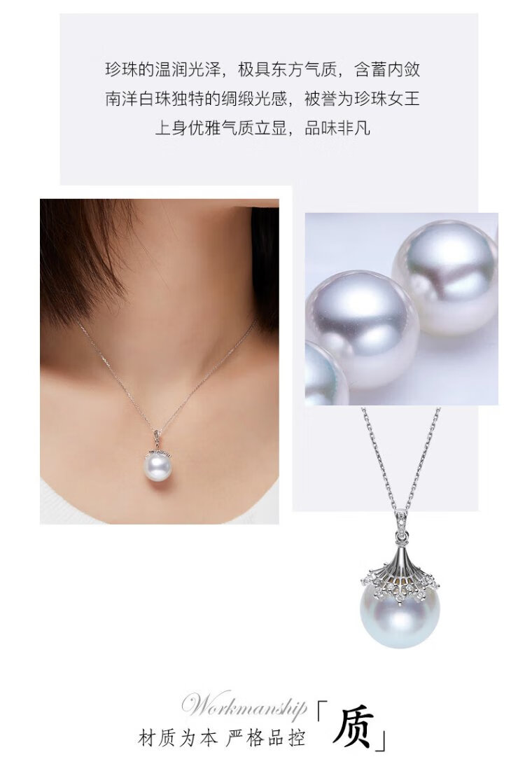 VCL Natural South Sea White Pearl Silver Cold Light Australian White Seawater Pearl 18K Gold Diamond Pendant for Women Gift for Mom and Elders 14-15mm Pendant Does Not Include Chain
