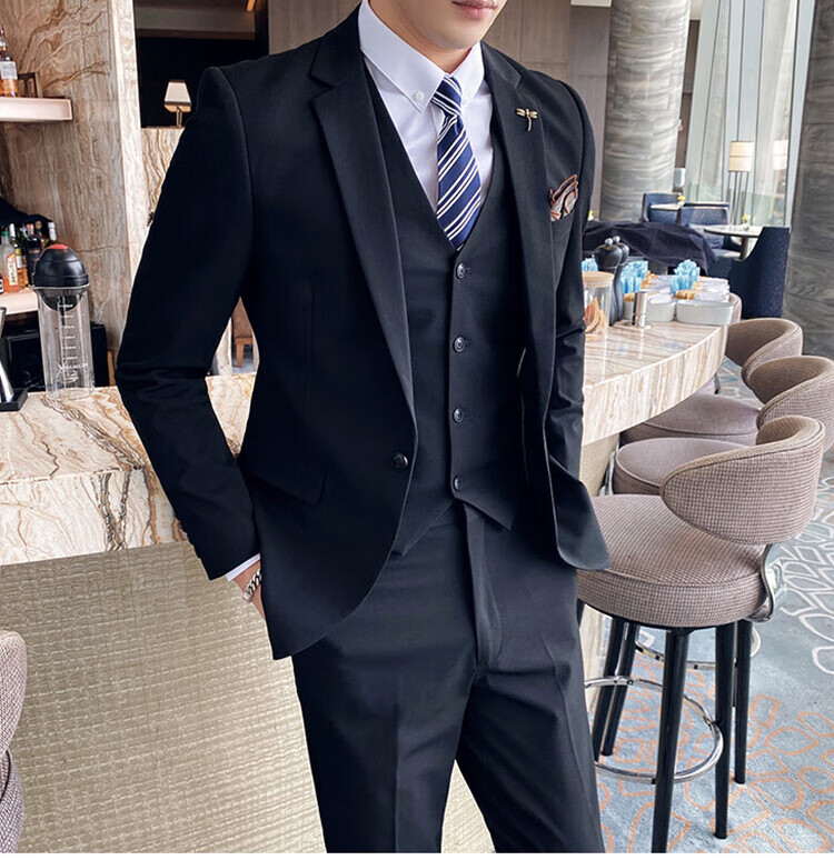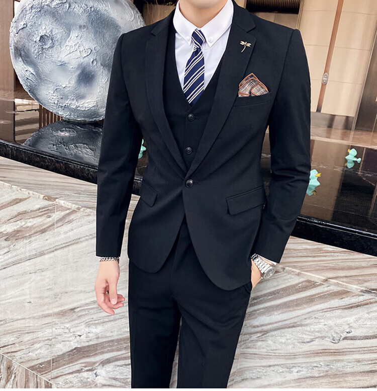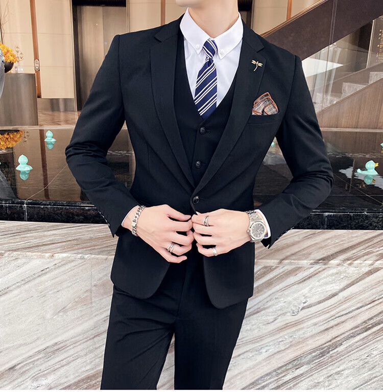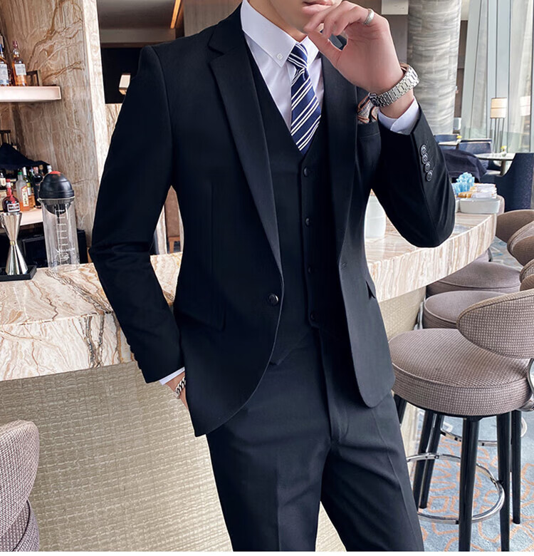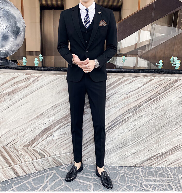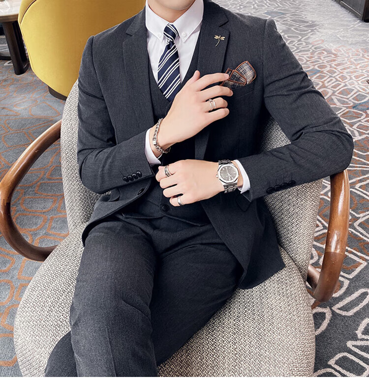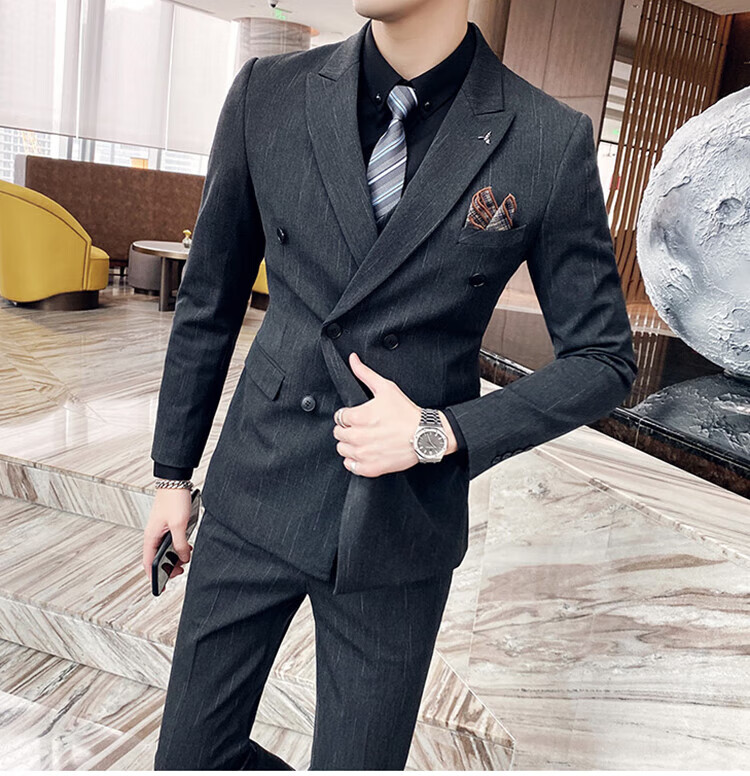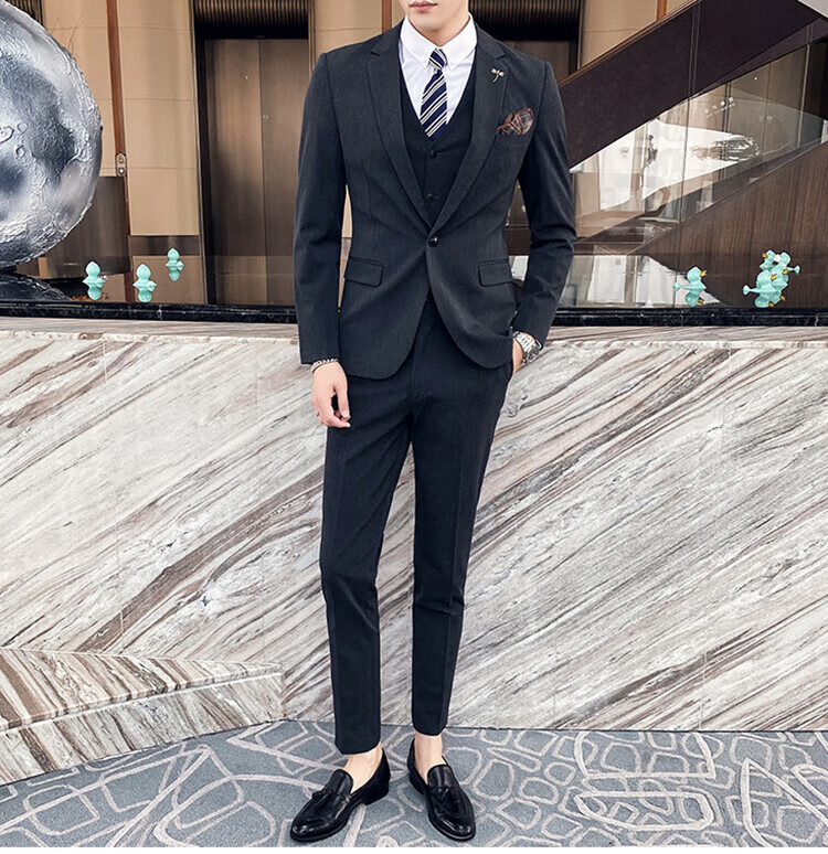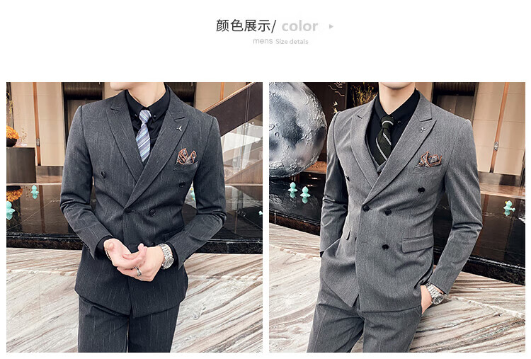 ROMON spring suit men's Korean style casual small suit men's double-breasted British style handsome trendy slim jacket medium gray double-breasted (suit + vest + pants XL (52)
