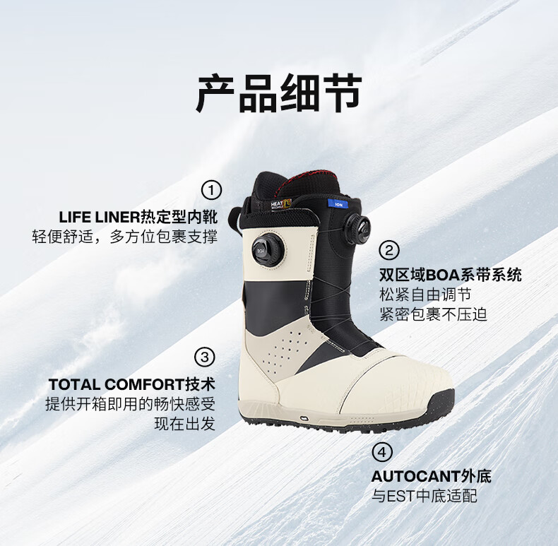 BURTON Burton official men's ION BOA ski boots cushioning comfortable ski snowboard equipment 185791 18579106102 42