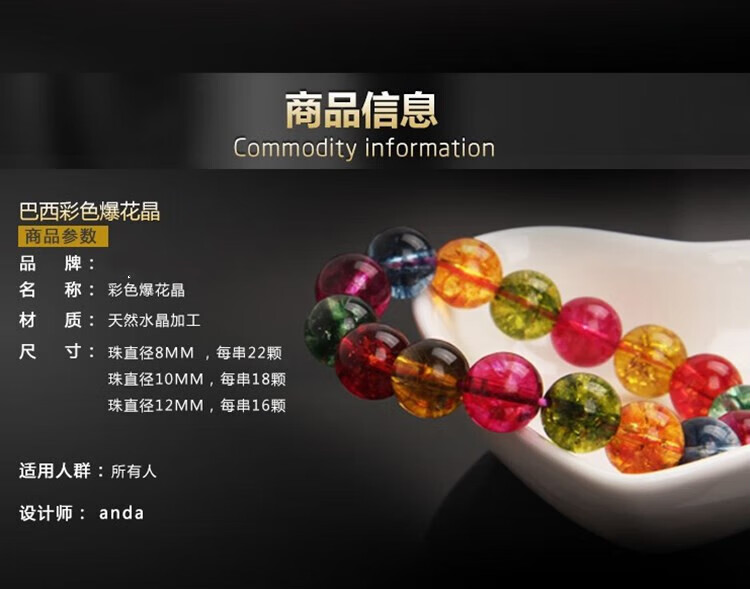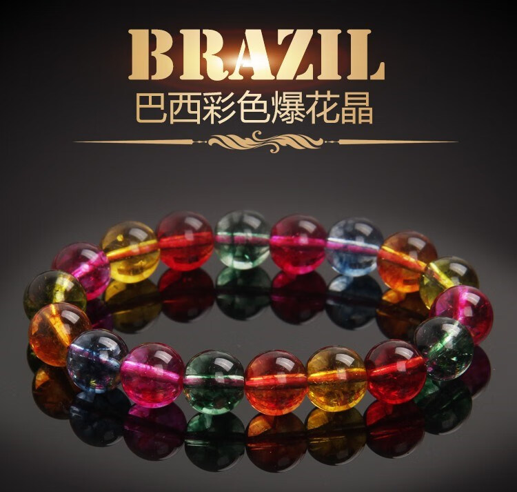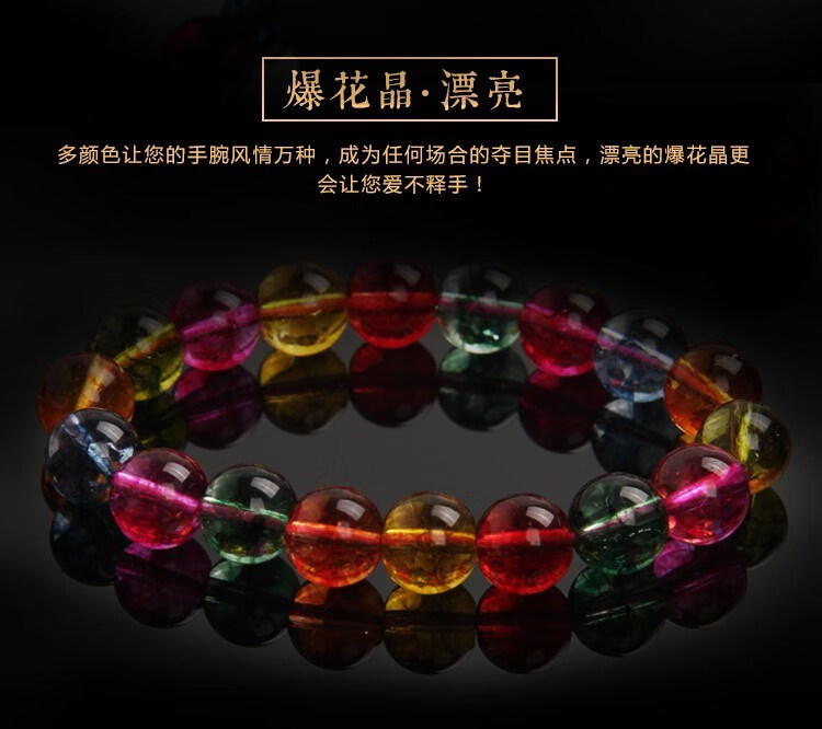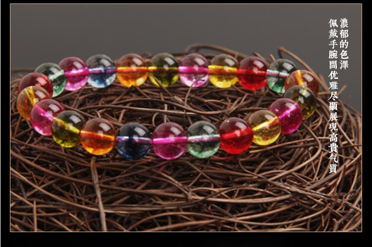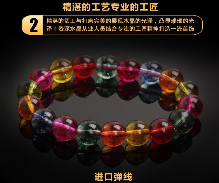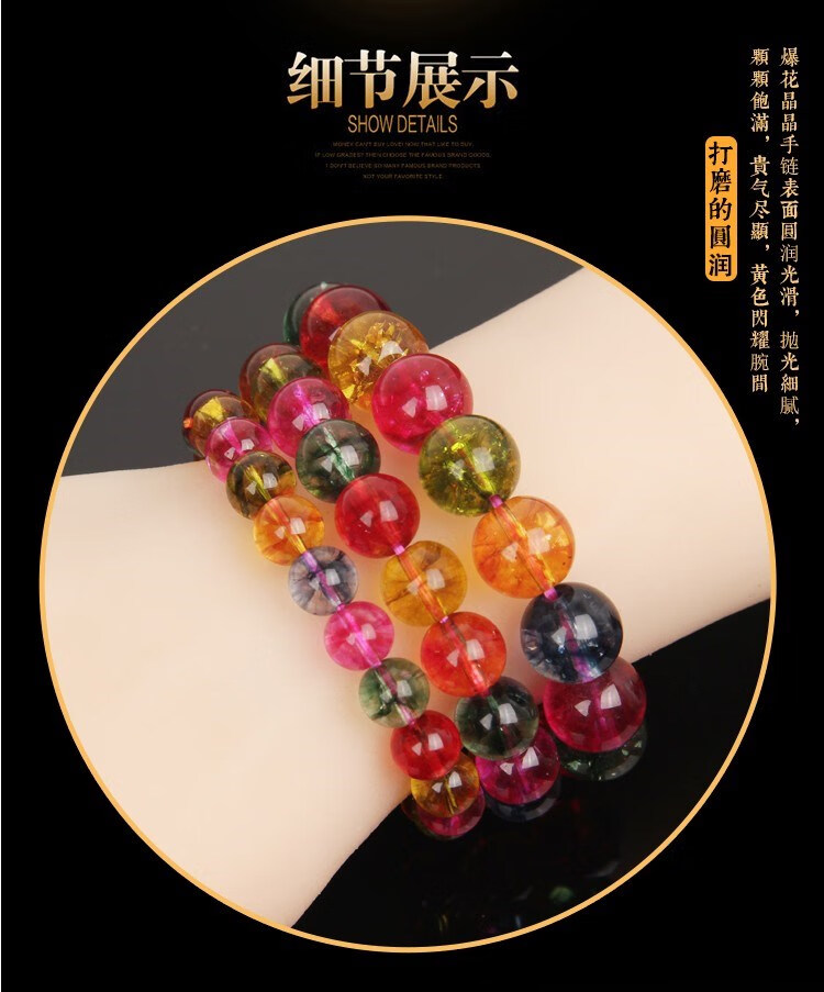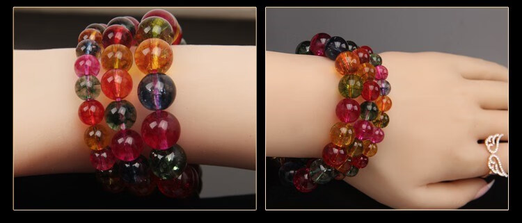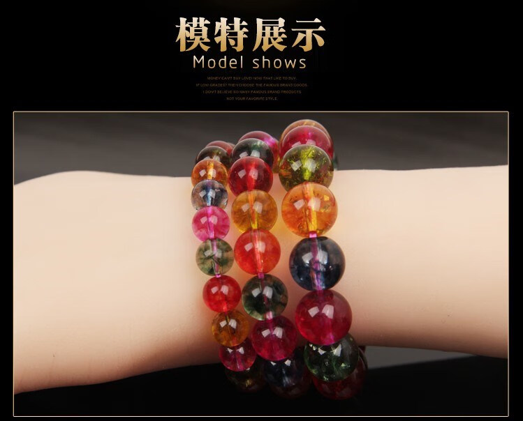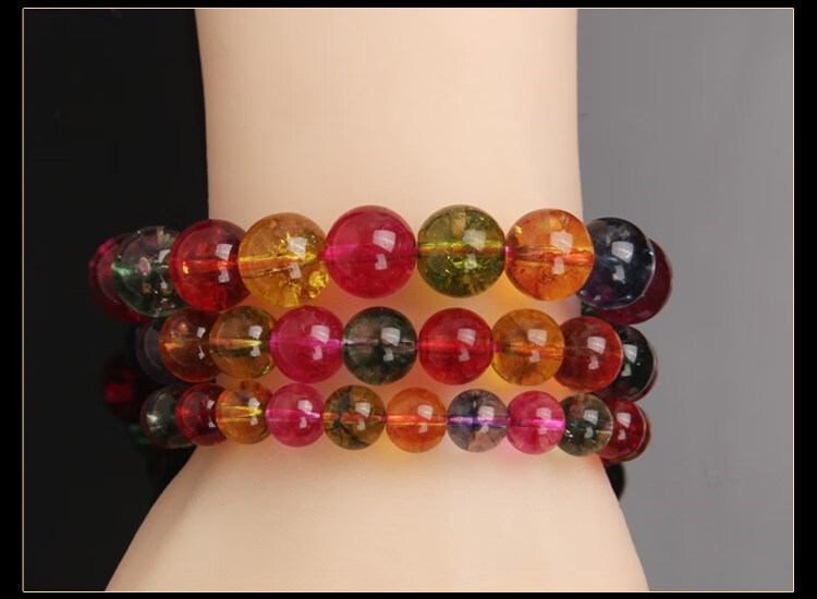 Xiyinfu Tourmaline Bracelet Watermelon Tourmaline Women's Crystal Bracelet Decorated with Explosive Crystal Candy Seven-Colored Peach Blossom 8mm Bead Diameter 16cm