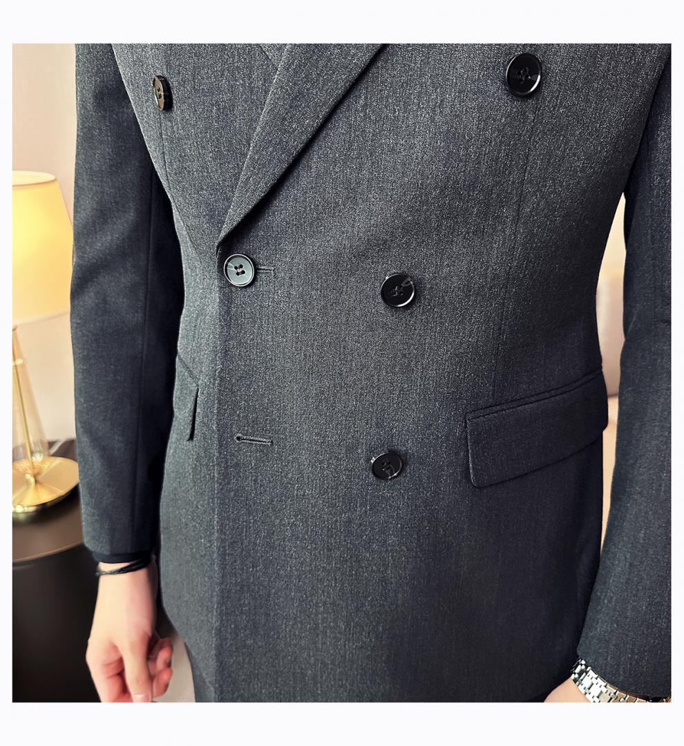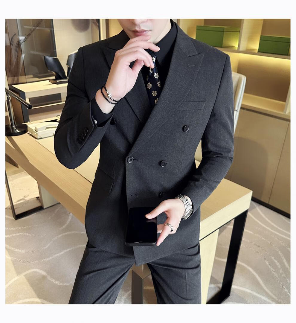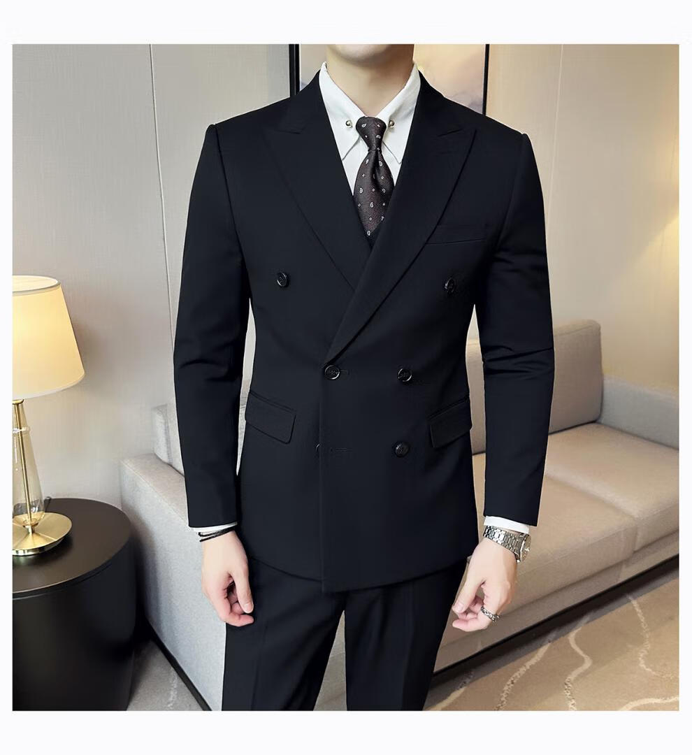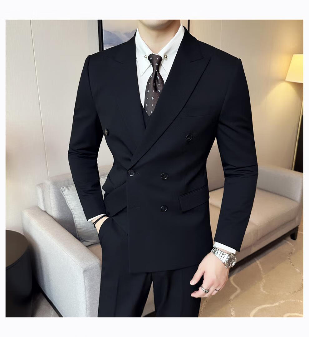 Jason's British business gun lapel double-breasted slim suit suit men's light luxury wedding dress groom's suit three-piece suit 338 black (suit + pants) XL