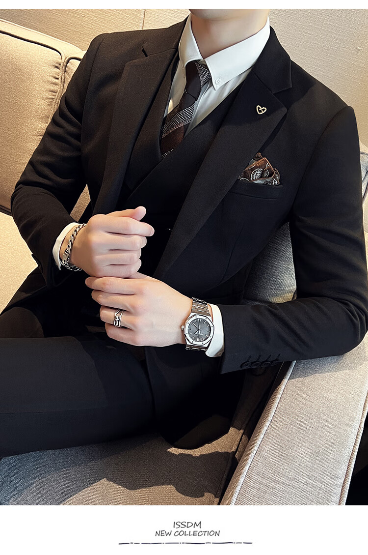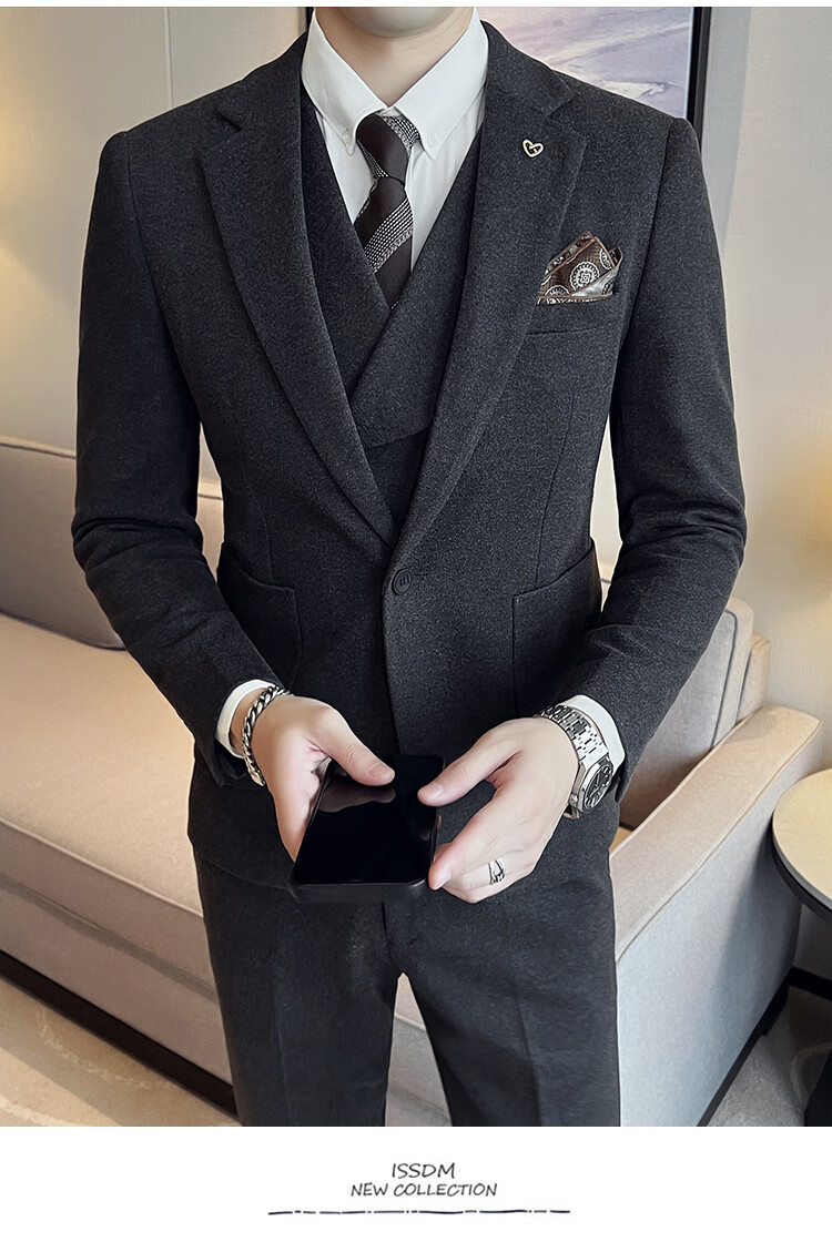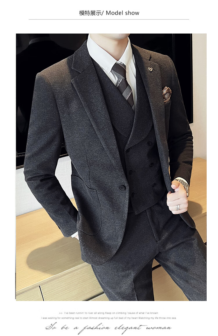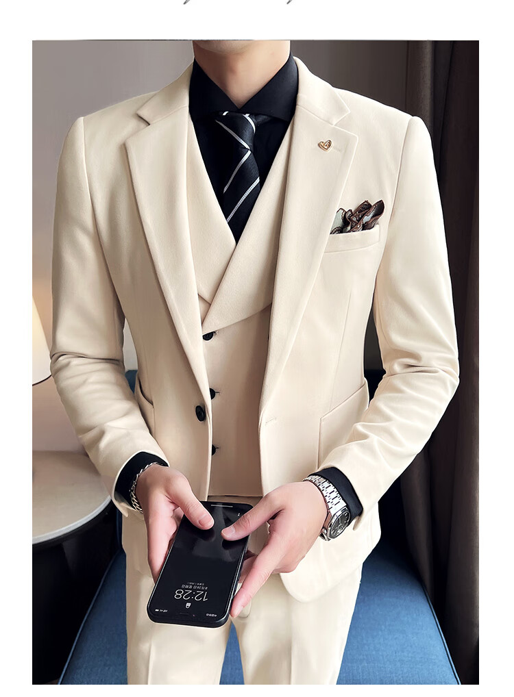 Pierre Cardin (pierre cardin) business slim suit men's spring and summer new woolen suit three-piece suit groom wedding formal dress SJT8339 khaki three-piece suit suit + trousers + vest XL