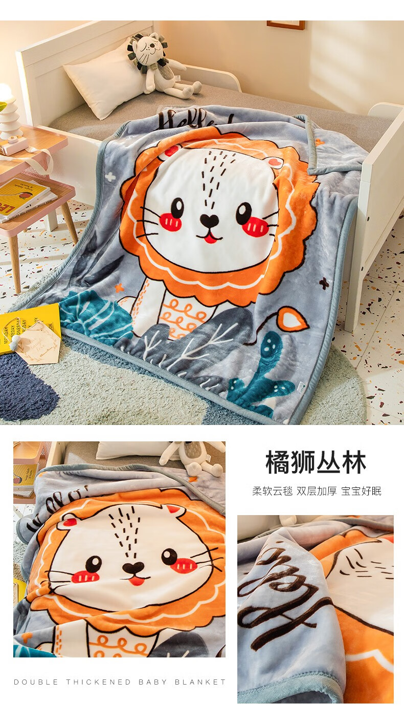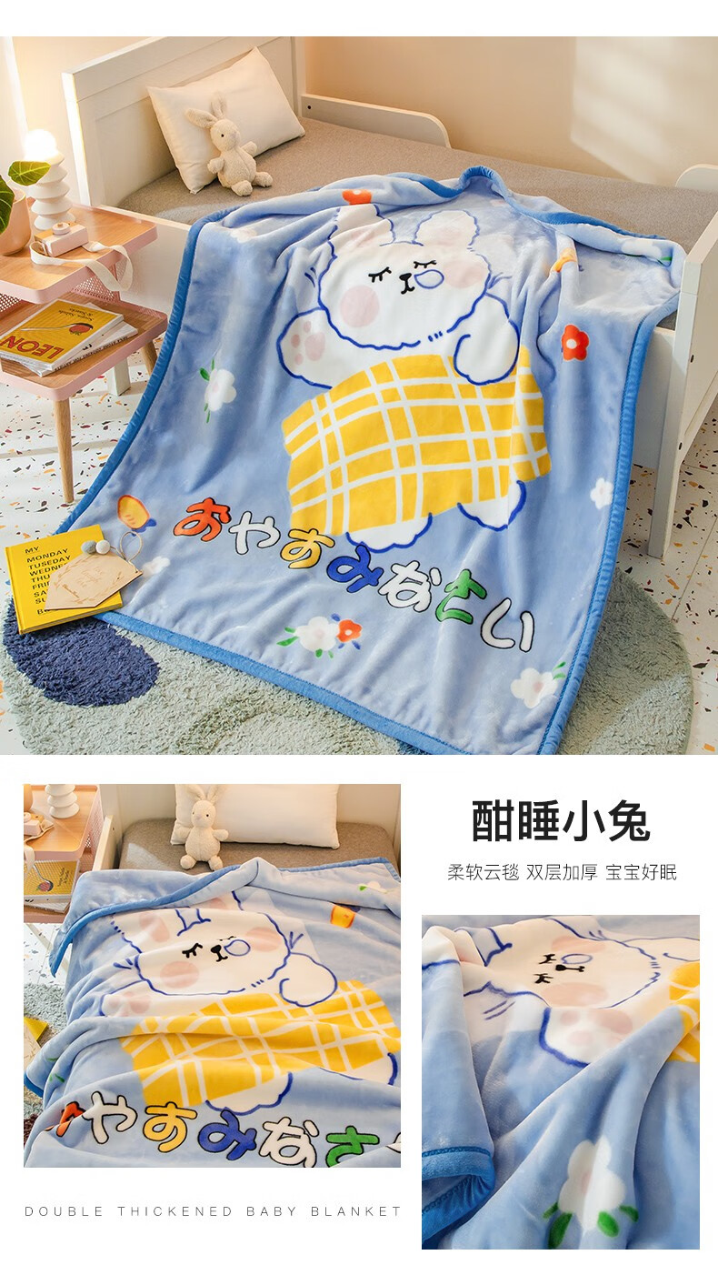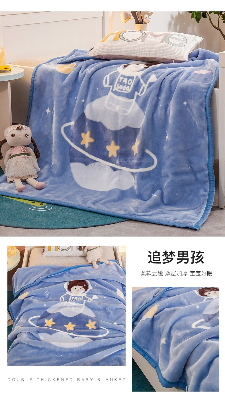 Nanjiren Milk Velvet Children's Blanket Kindergarten Nap Cover Blanket Winter Warm Blanket Thickened Double-layered Velvet Quilt Blanket Mengmenglu Double-layered Cloud Blanket Can Be Covered or Spread 110x140cm Children's Cloud Blanket Approximately 2.4Jin Jin is equal to 0.5kg