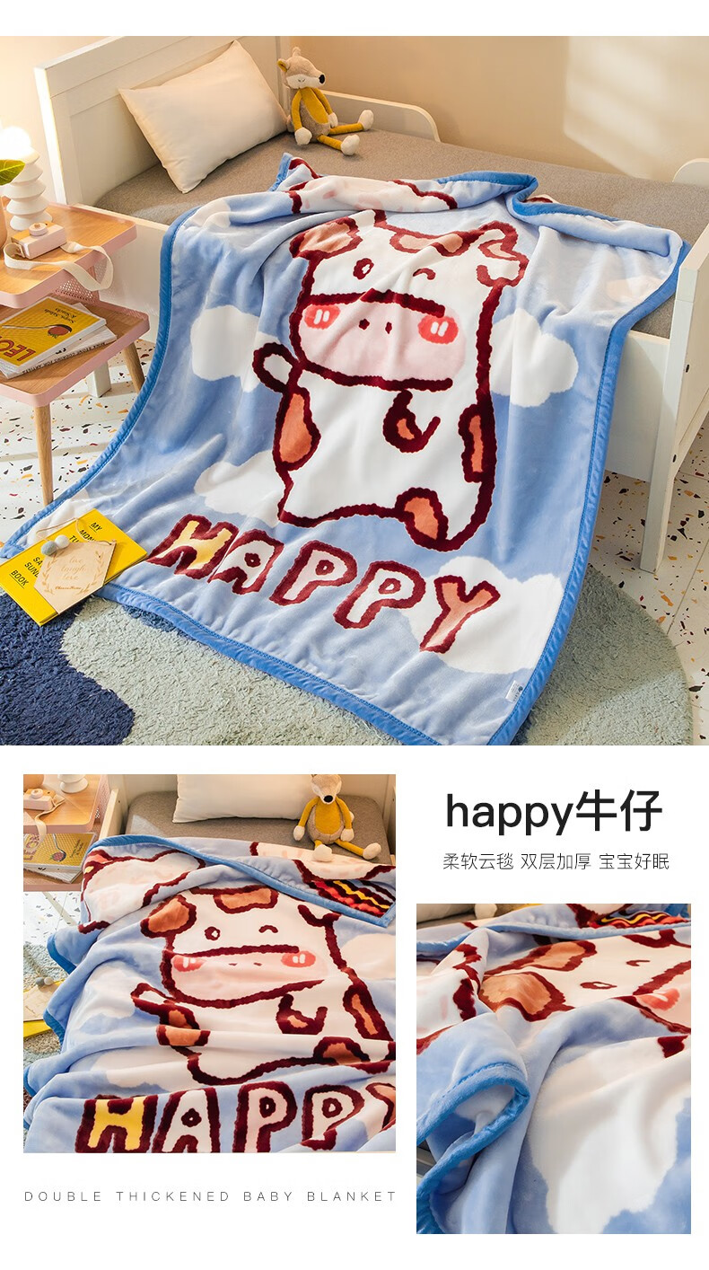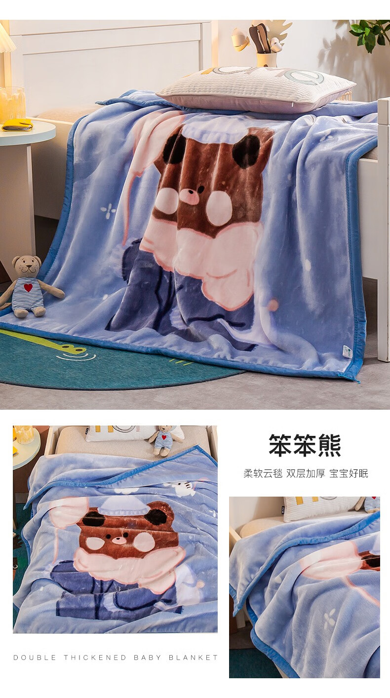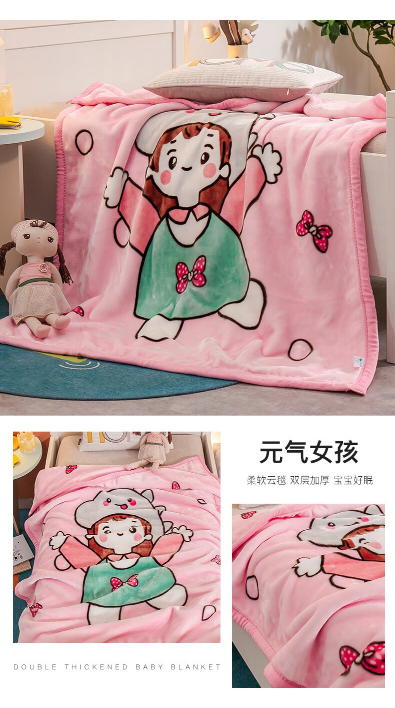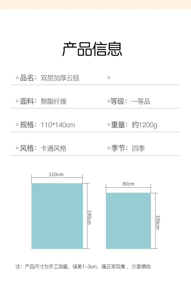 Nanjiren Milk Velvet Children's Blanket Kindergarten Nap Cover Blanket Winter Warm Blanket Thickened Double-layered Velvet Quilt Blanket Mengmenglu Double-layered Cloud Blanket Can Be Covered or Spread 110x140cm Children's Cloud Blanket Approximately 2.4Jin Jin is equal to 0.5kg
