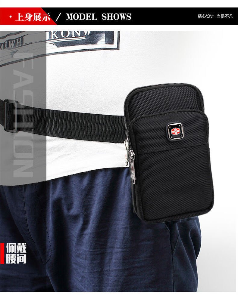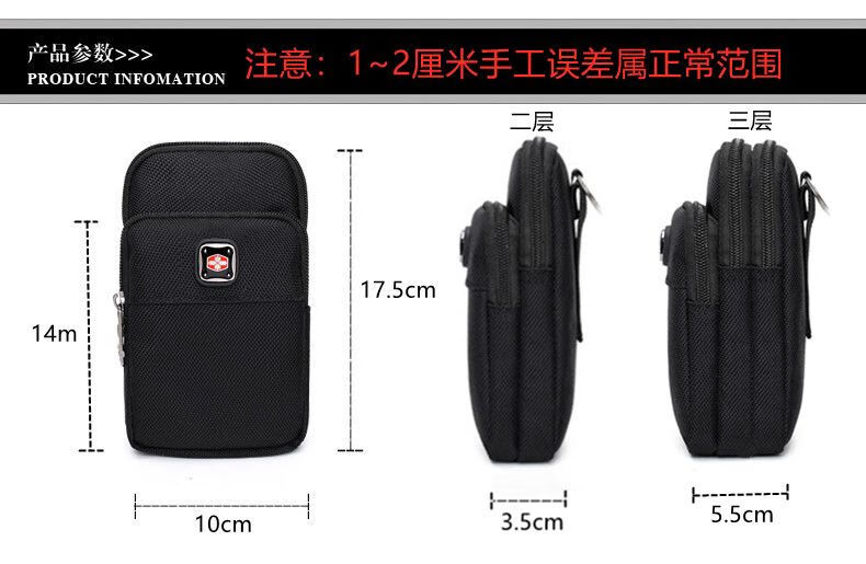 Swiss sergeant knife belt waist bag vertical mobile phone bag waist bag men's new multi-layer sports arm construction site work bag black two layers