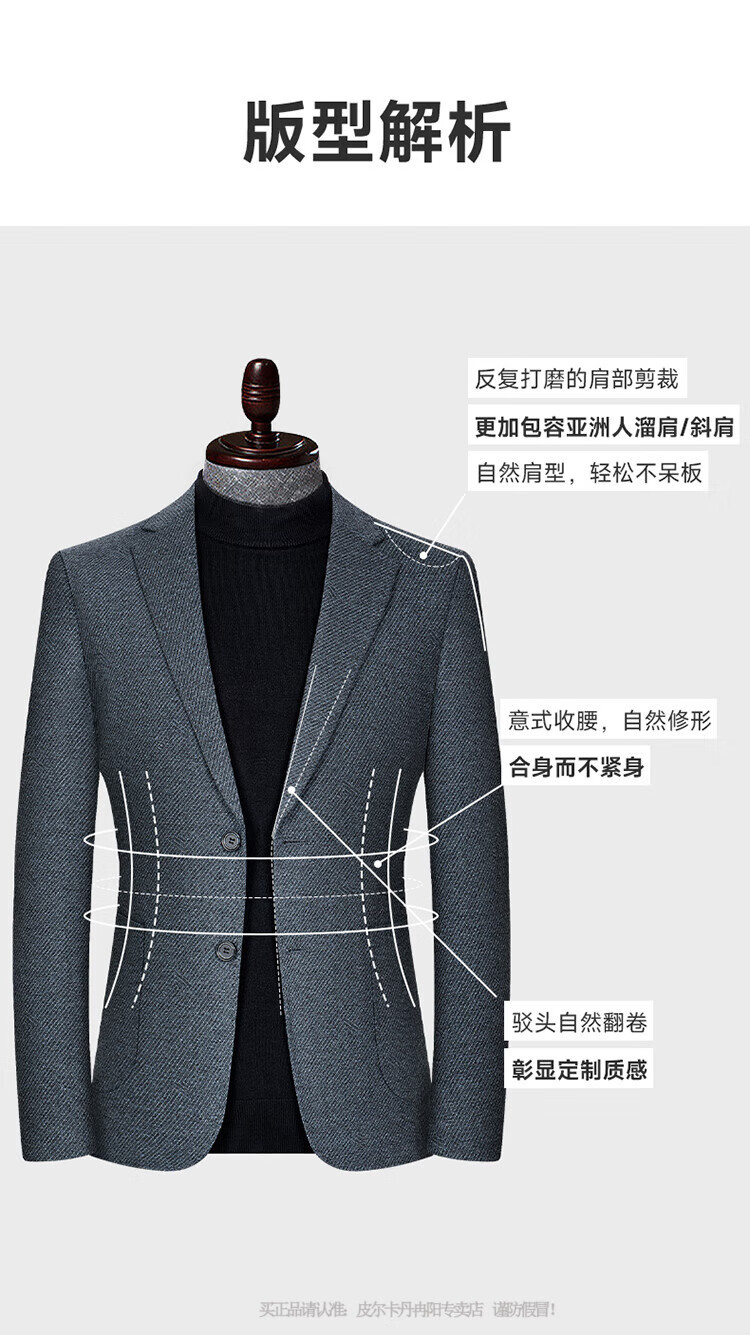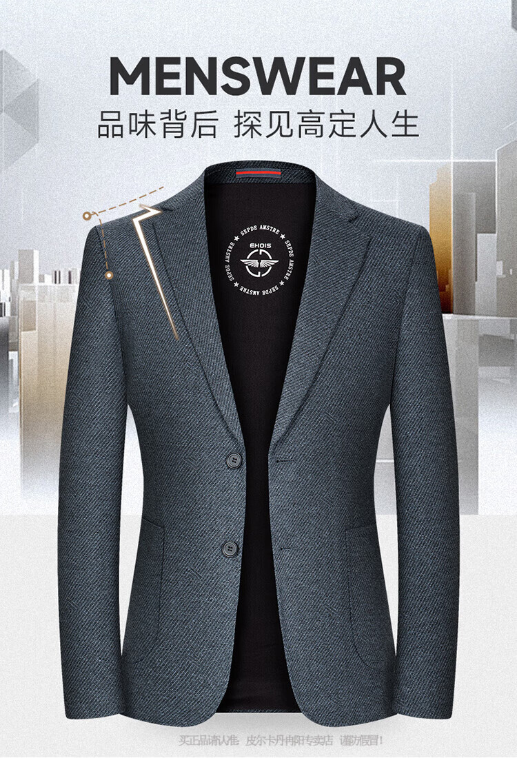 Pierre Cardin high-end wool suit men's jacket autumn and winter new men's business casual small suit men's non-iron single suit men's 2862 style - dark gray 50 175 yards - suitable for weight 125-140 Jin Jin equals 0.5 kg