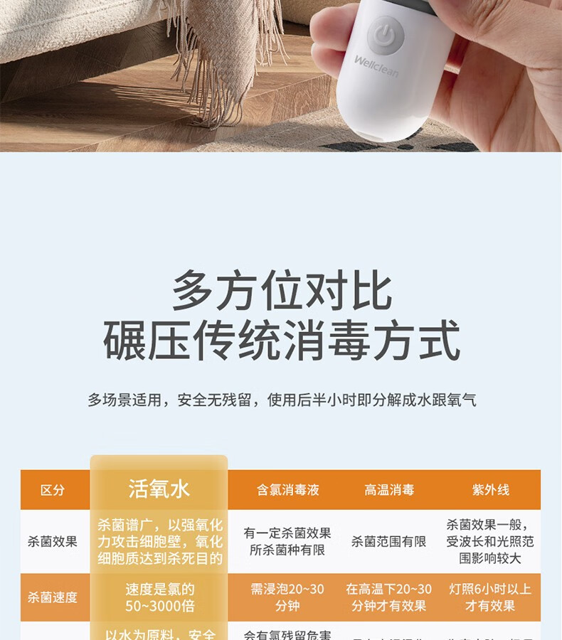 Vicoli activated oxygen water sterilizer, sterilization and odor removal, household convenient disinfection spray, add water, ready-to-use oxygen sterilizer, activated oxygen water sterilizer PU-18 99.9% sterilization rate